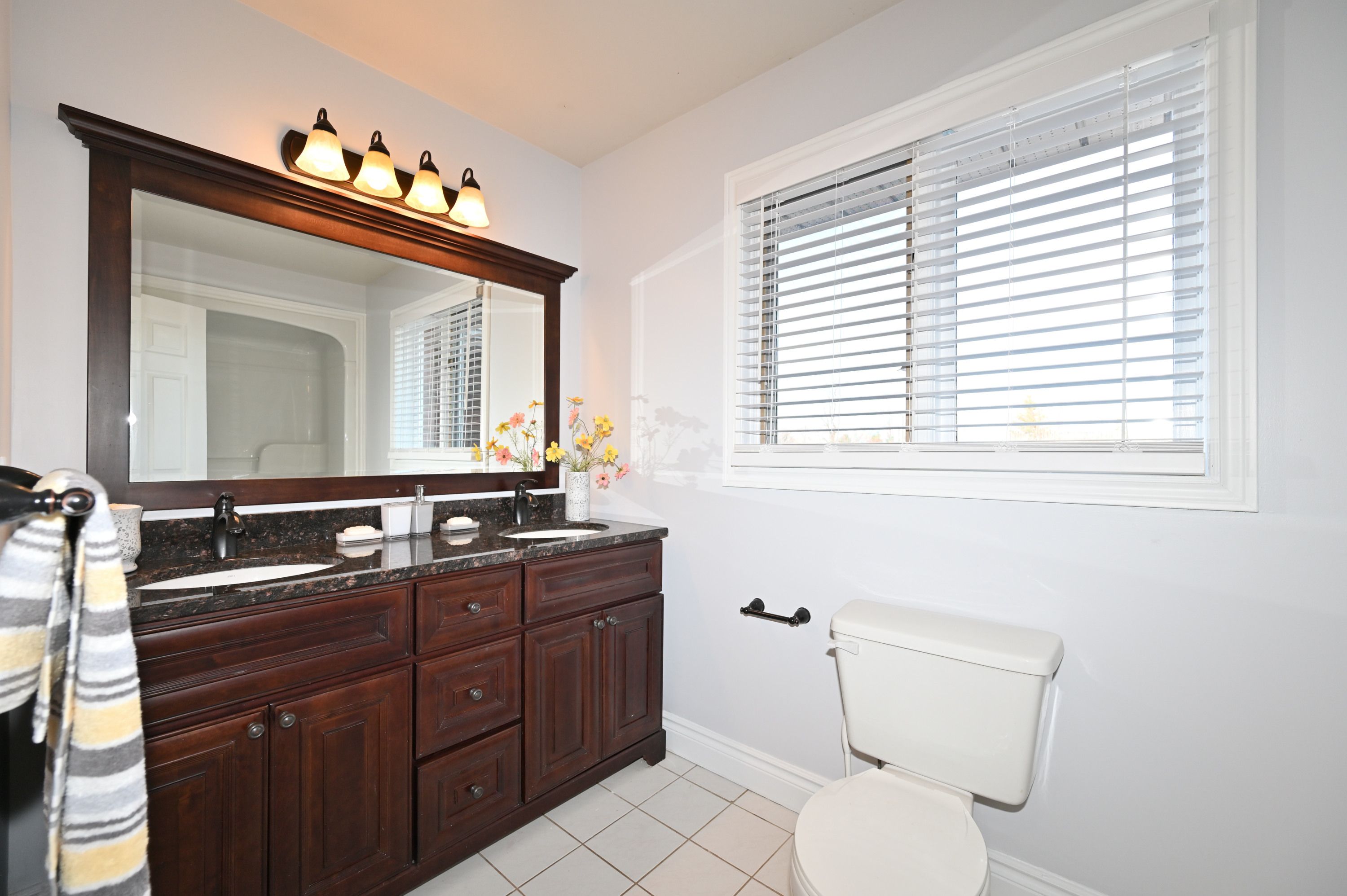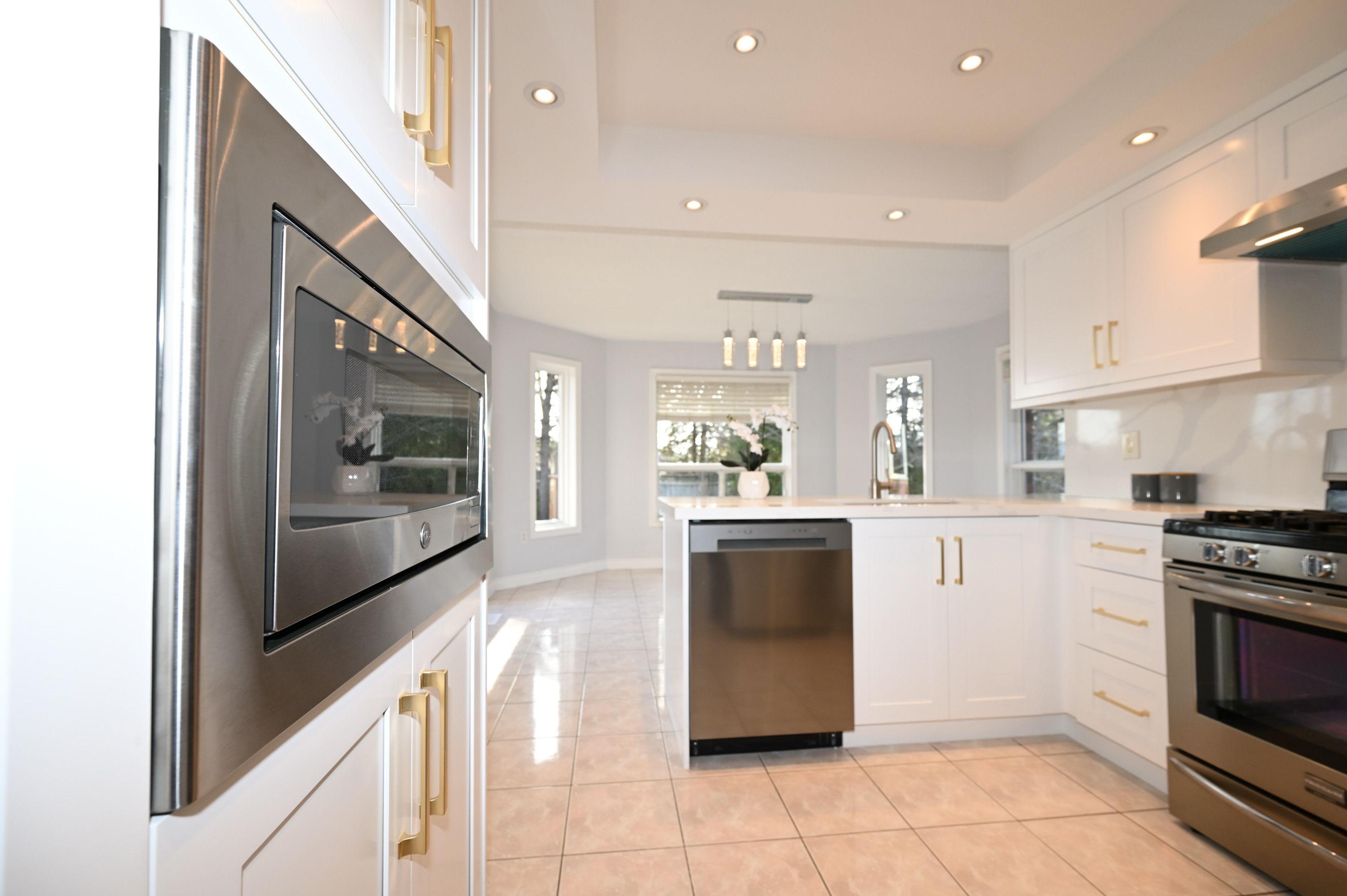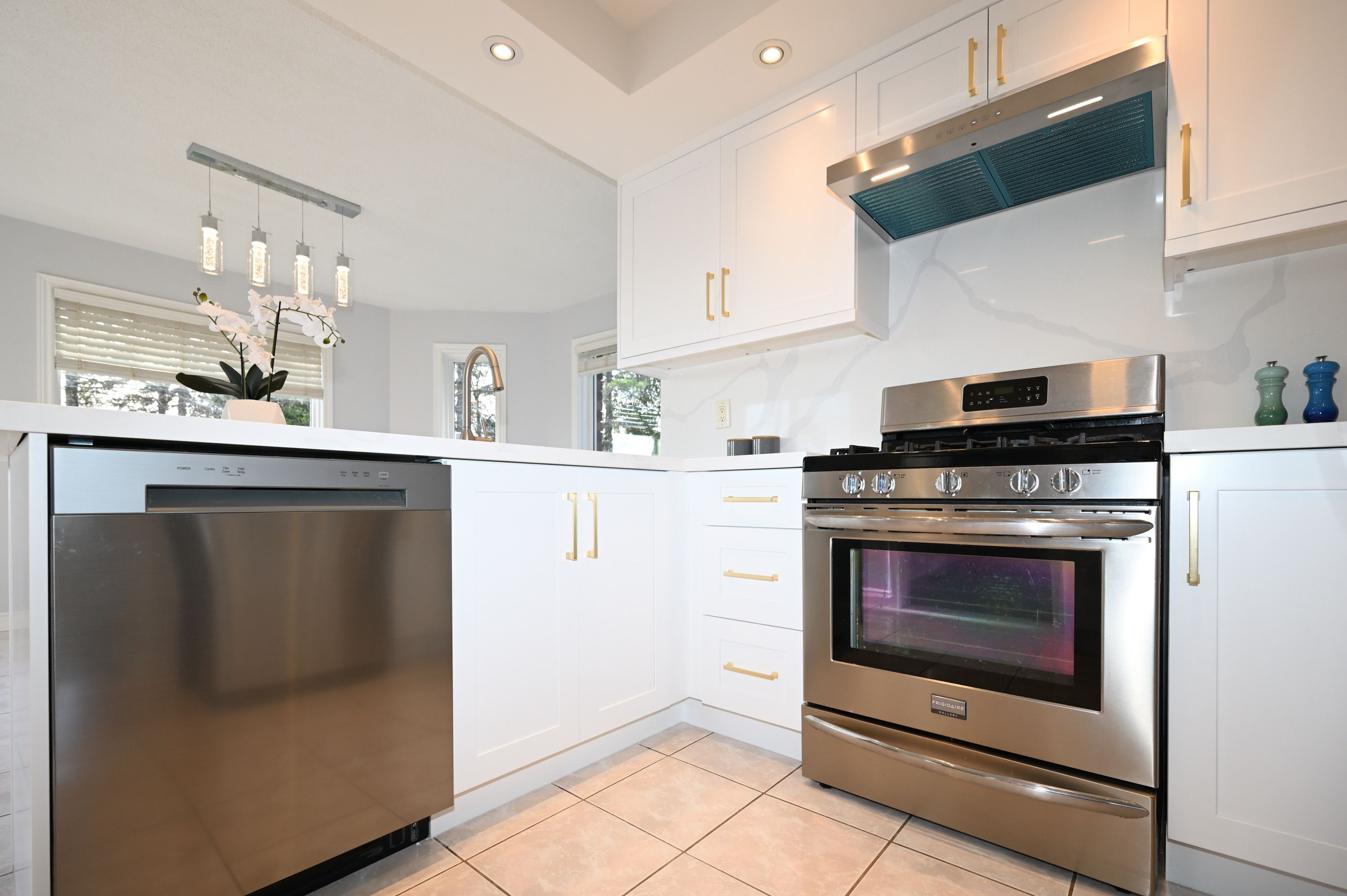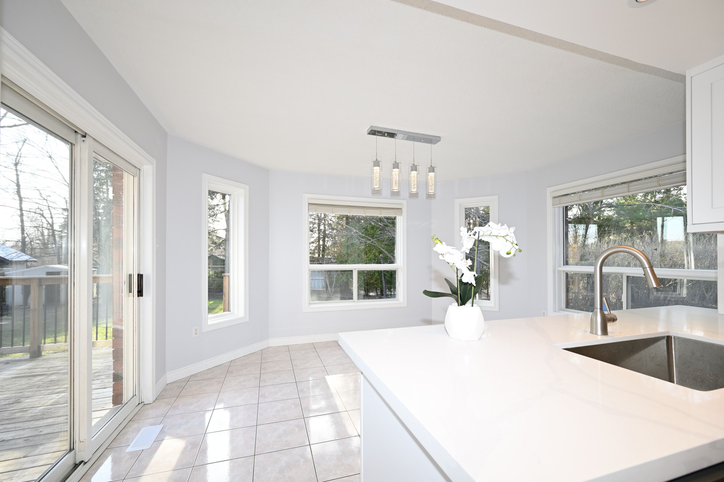 Nestled on a quiet cul-de-sac, this stunning brick family home sits on a spacious pie-shaped lot in the desirable holly area. It's perfect for commuters and close to all amenities. Freshly painted, clean, and filled with natural light, the main level features a separate family room with a gas fireplace, a separate living room with an additional gas fireplace, and a formal dining room. The newly renovated, stylish kitchen is equipped with stainless steel appliances and modern finishes. Open concept kitchen overlooks a sun filled breakfast area, where a sliding door opens onto a generous deck-ideal for relaxing or entertaining. Enjoy peaceful views of the backyard, featuring mature trees that create a breathtaking display of color in the fall. Offering 4 bedrooms and 3 bathrooms, the home includes a primary suite with a double closet and private ensuite. The partially finished lower level boasts a recreation room and a gym space. Additional highlights include central air conditioning, a large deck for outdoor entertaining, garden shed, and a double garage with inside entry and automatic openers. No sidewalk at the front adds extra parking convenience. Recent updates include: kitchen cabinets (2026), dishwasher, microwave, and range hood (2026), select window blinds (2026), main bathroom cabinet (2026), washer (2025), basement carpets (2025), sump pump (2025), heat pump (2023), furnace and insulation (2019). Move-in ready with a flexible closing available! Don't miss this exceptional opportunity!