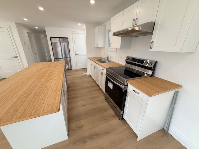 • Completely renovated main level with open concept design and modern kitchen.