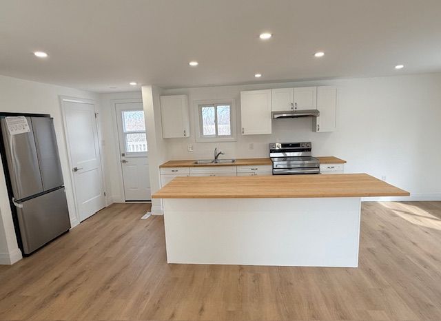 Stunning renovation! This beautiful raised ranch home is set on a large private lot backing onto natural environment in huron haven village, just minutes north of goderich. The main level has been completely renovated and now features an open concept with new kitchen, huge center island, 3 bedrooms and updated bathroom. Quality laminate flooring, new doors, trim and pot lights have been installed throughout the main level as well. Summertime entertaining will be a pleasure on the large raised back deck, overlooking the creek and trees at the back of the property! The full lower level features a laundry room and potential for more living space as there are patio doors leading to the backyard and "rough-in" for a second bathroom. This is a great opportunity to purchase a spacious affordable home located in a year-round land lease community close to shopping, golf courses and the shores of lake huron! There's also a rec center and outdoor swimming pool located in the village! Bonus - fridge, stove, dishwasher, washer & dryer included!