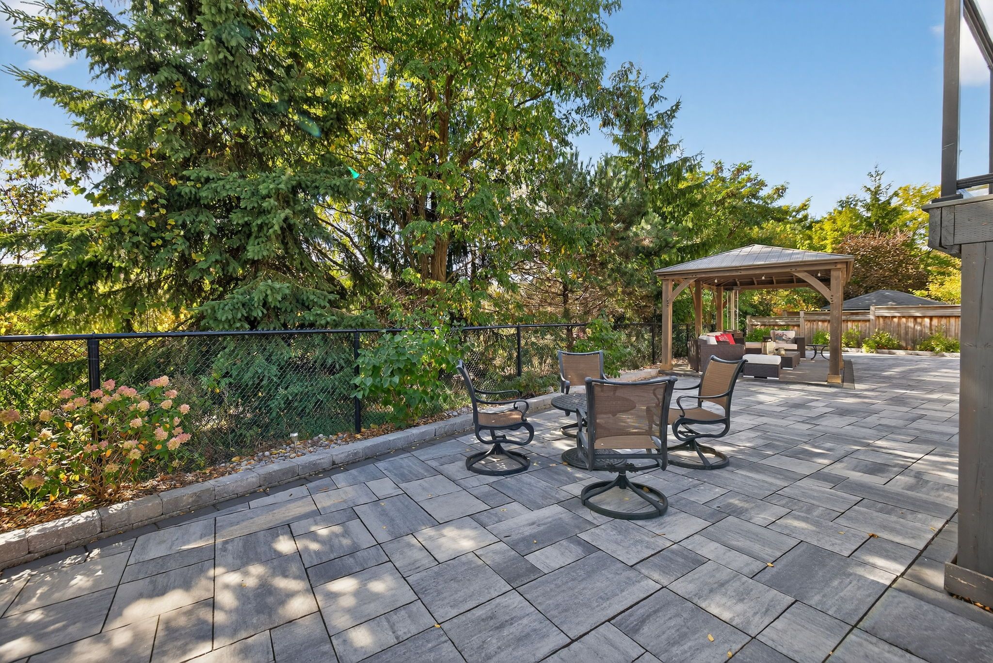• Backyard features interlocked patio, hot tub, and relaxing outdoor spaces.