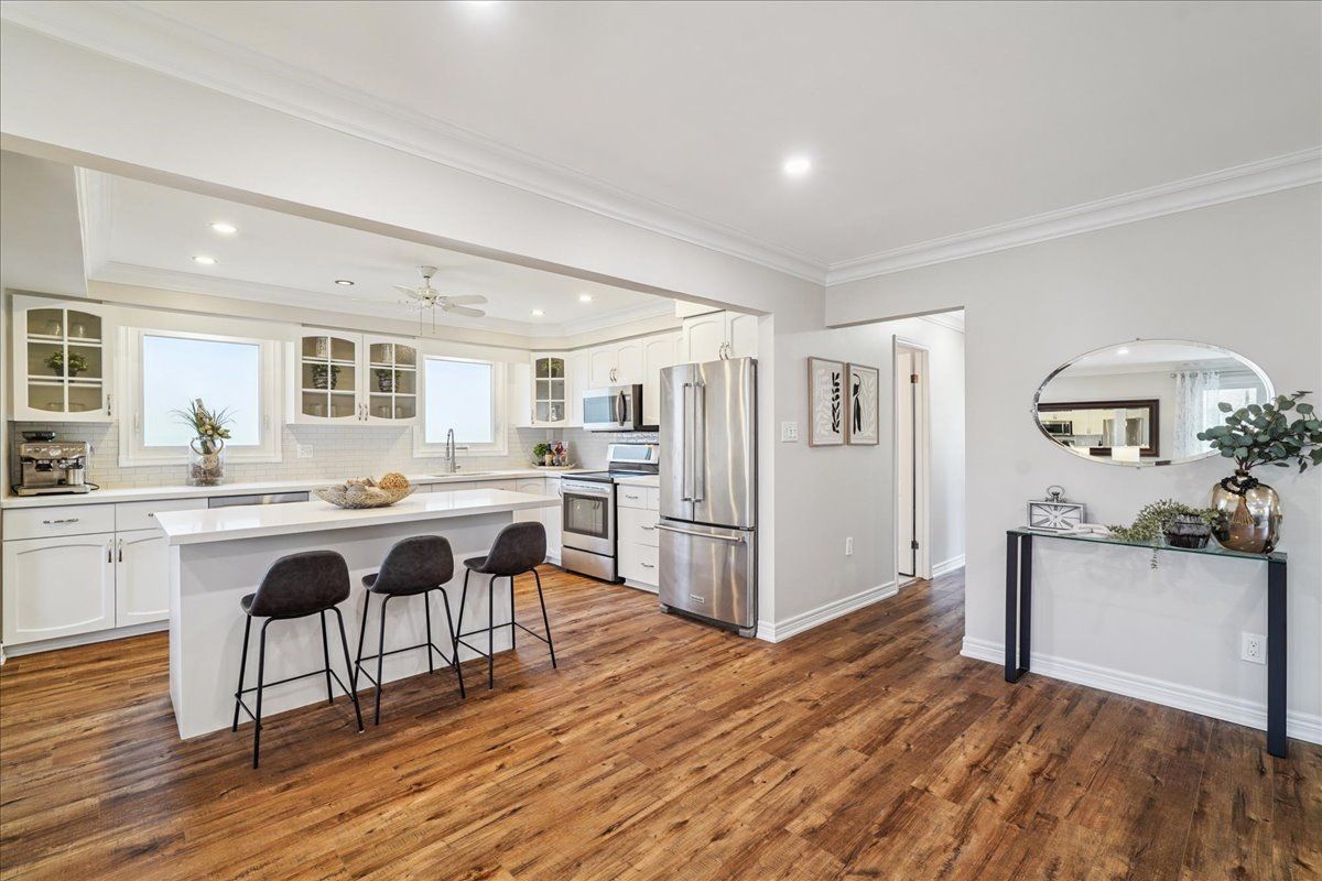 • Modern open concept kitchen with quartz countertops and stylish finishes.