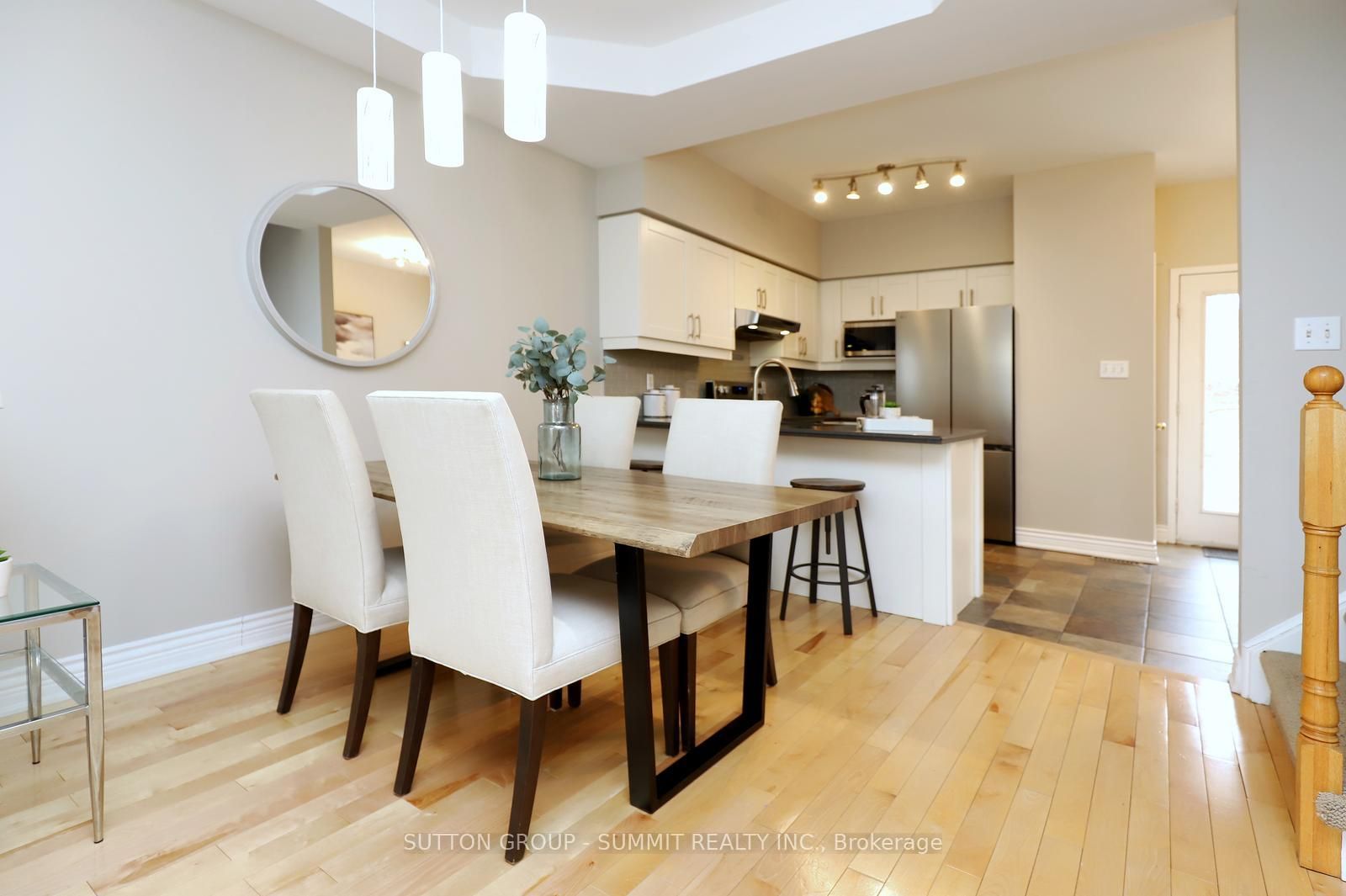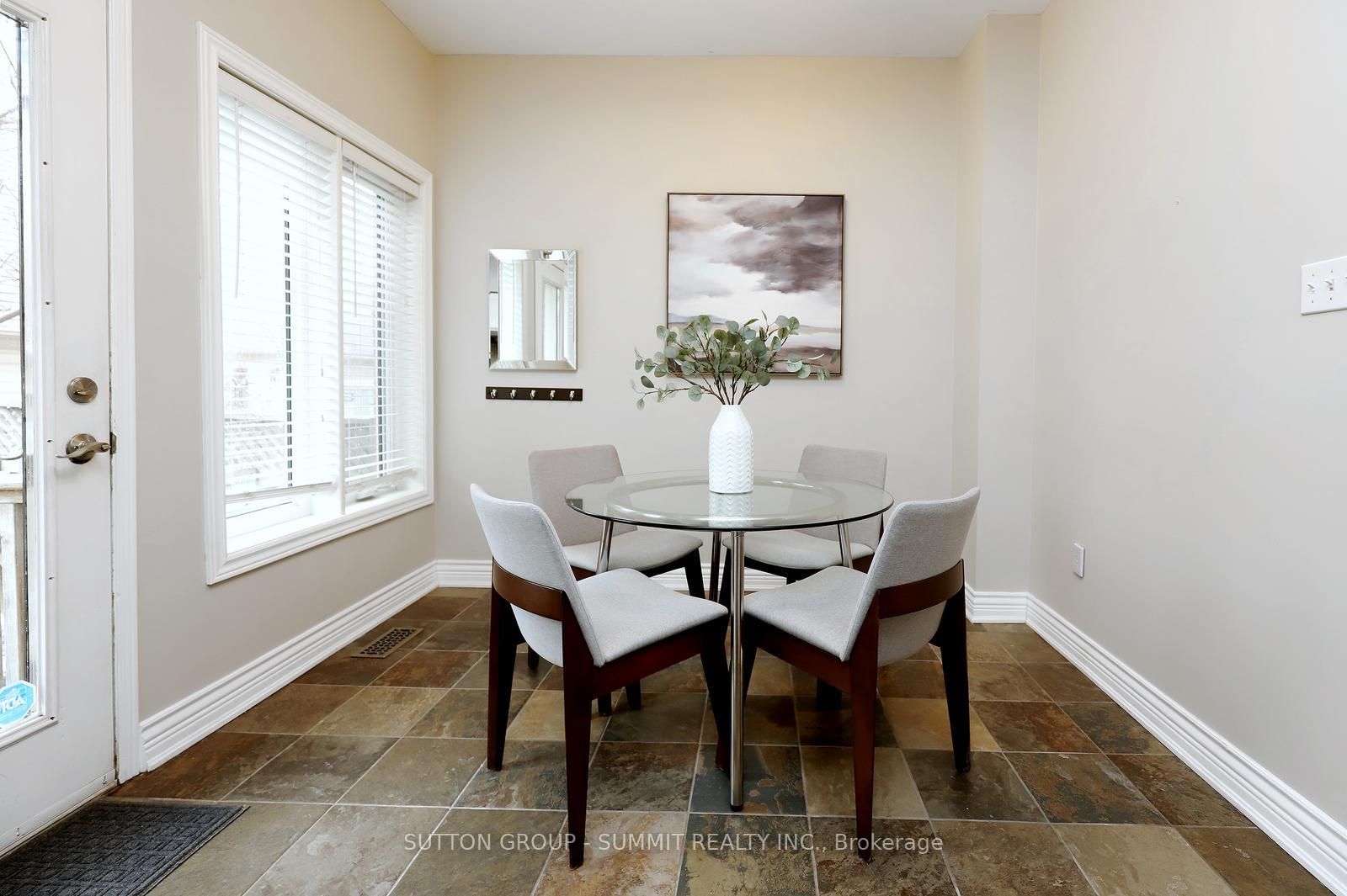 Gorgeous freehold townhome shows amazing! Very bright with high ceilings and large windows. Modern eat-in renovated kitchen with upgraded white cabinets, backsplash, quartz counters & stainless-steel appliances. Upgraded baseboards. Spacious master features 4pc ensuite. Upper level retreat (29 ft x 12 ft) perfect for 4th bedroom, home office or family room. Quality finished basement with rec room, extra bedroom, hardwood stairs, pot lights and 3pc bath. Cold cellar. Private backyard with interlocking patio and mature landscaping. Enjoy the quiet front porch facing a park and greenspace! New furnace and air conditioner (2023), new roof (2013), new kitchen (2016), many new windows (2016).