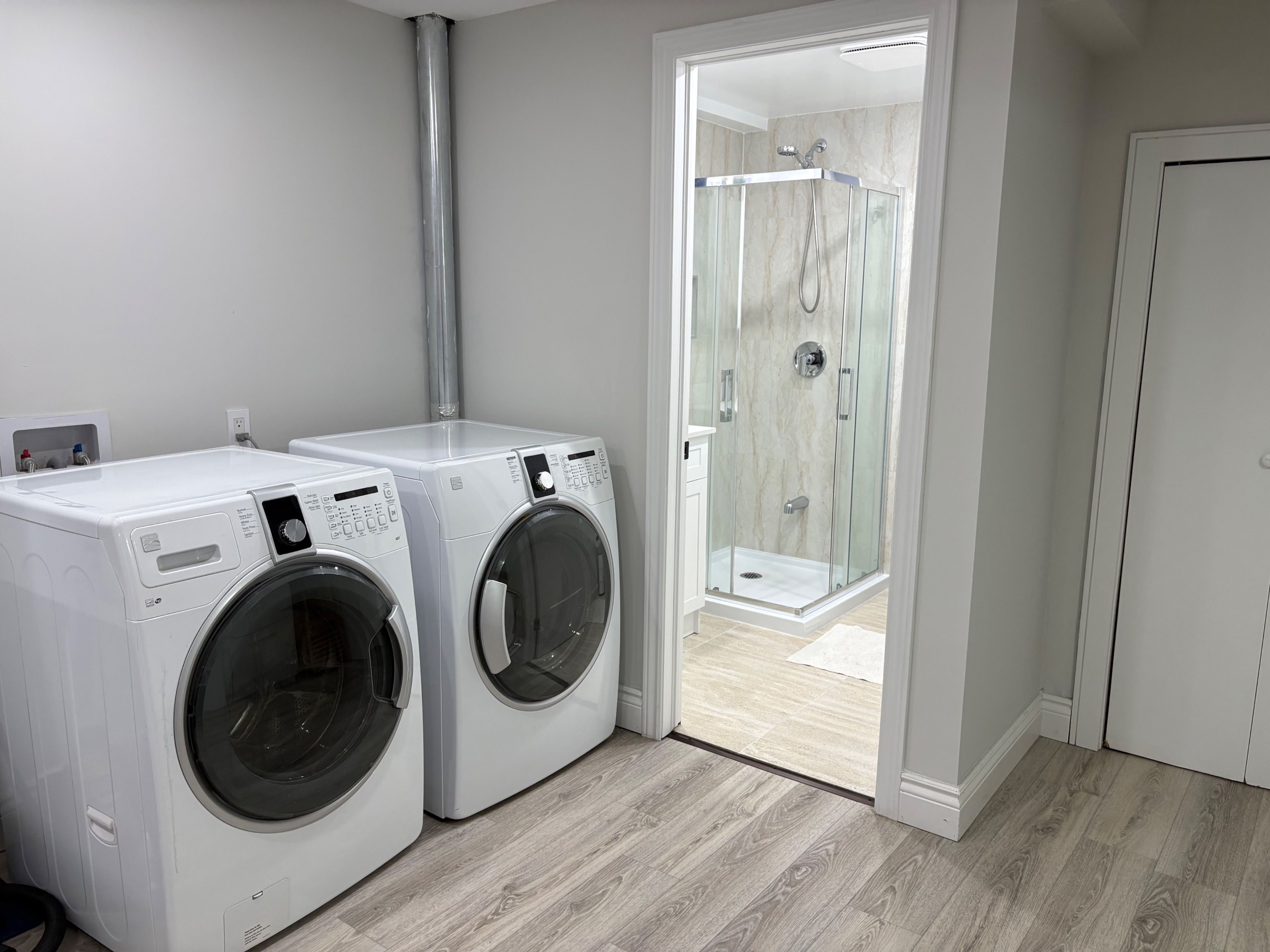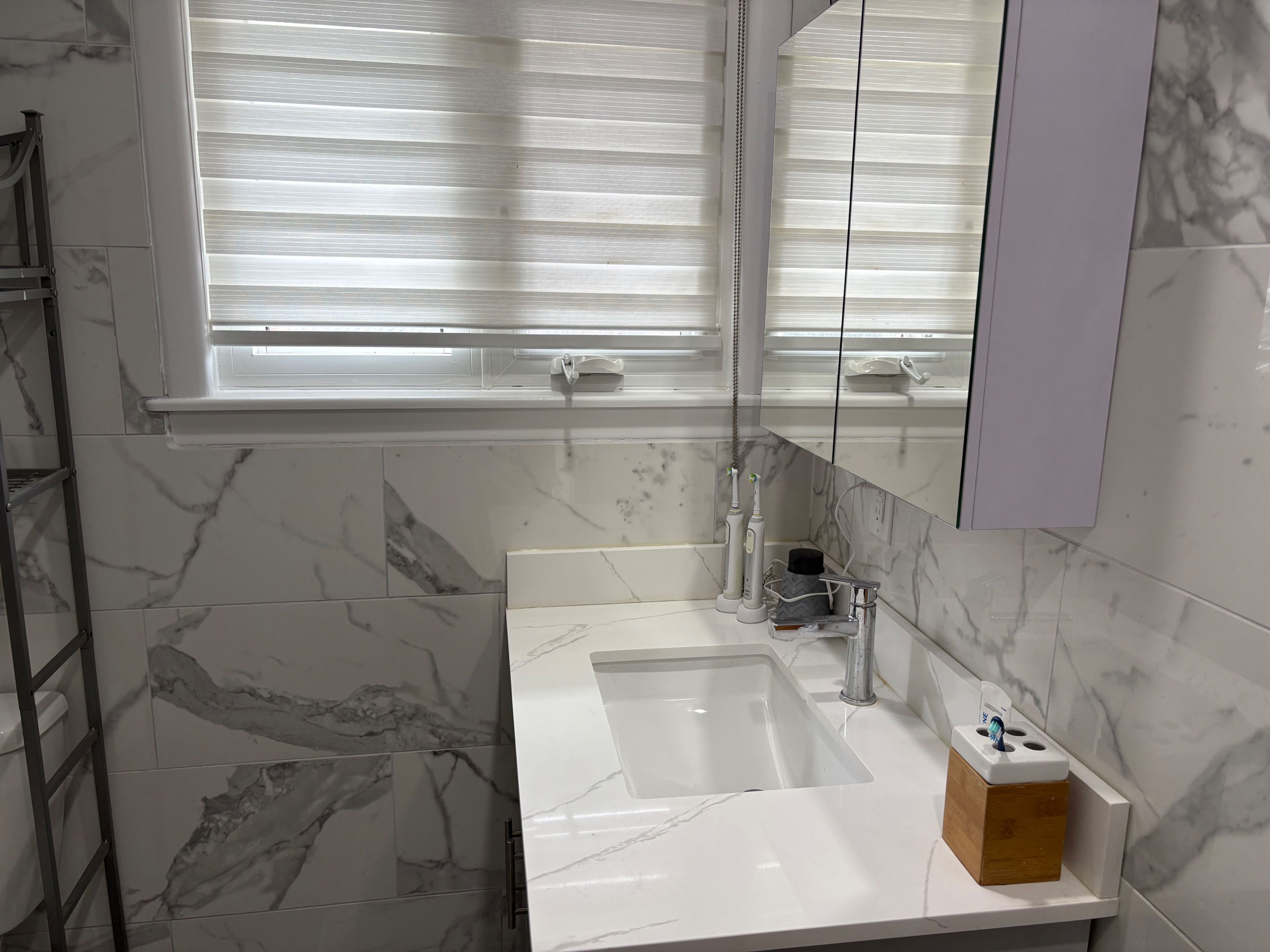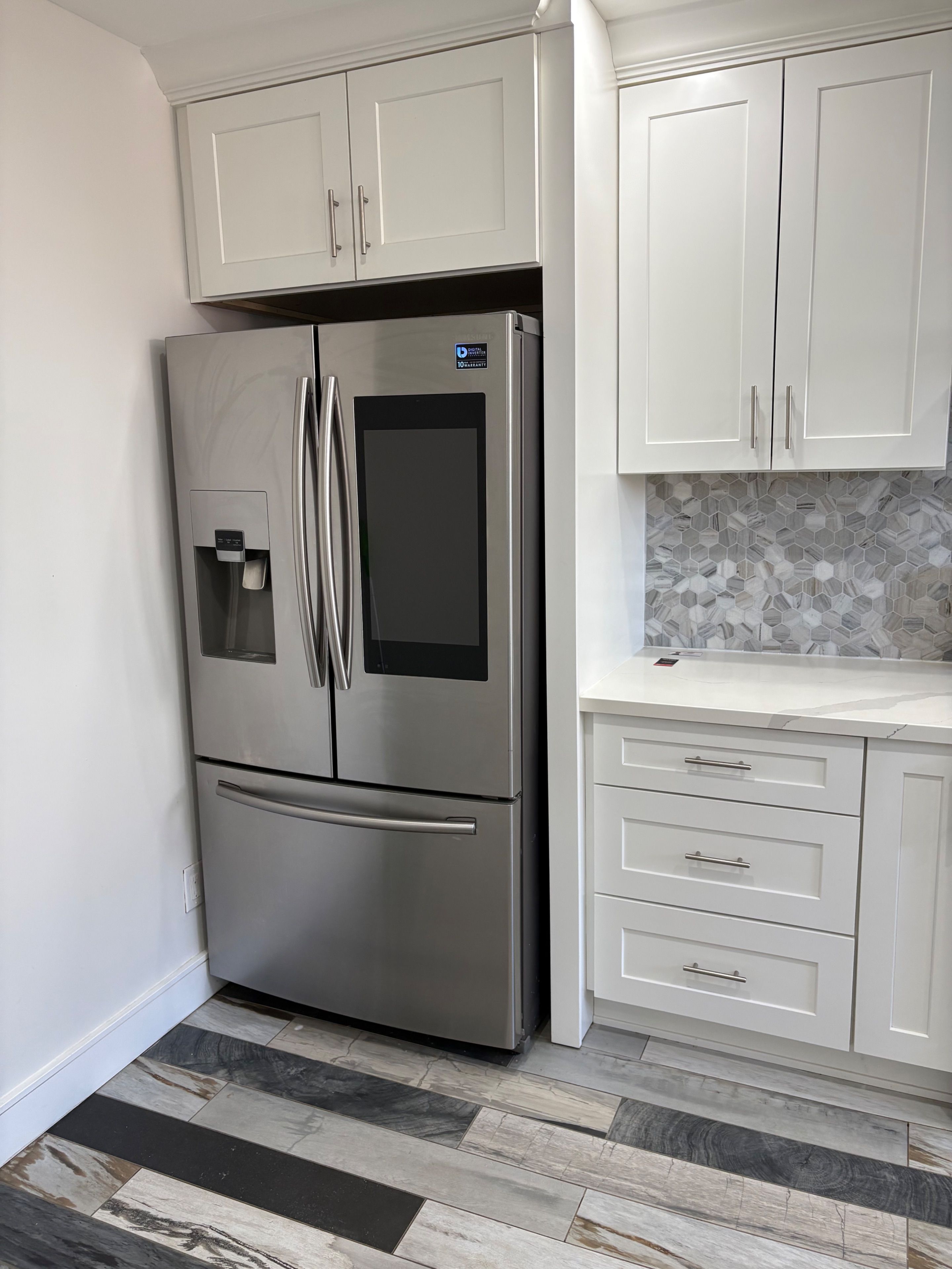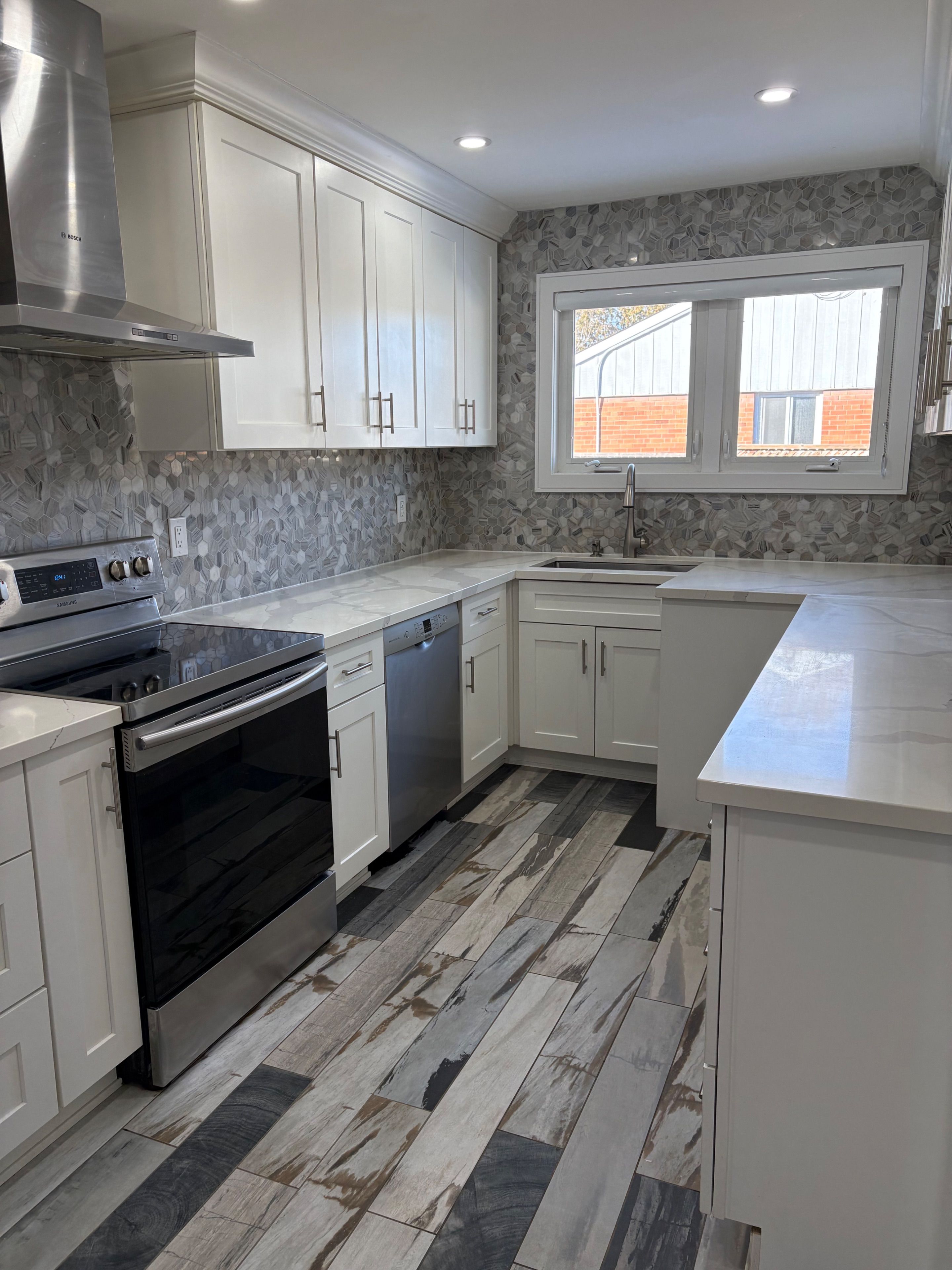 • Modern kitchen featuring quartz countertops and stainless steel appliances.