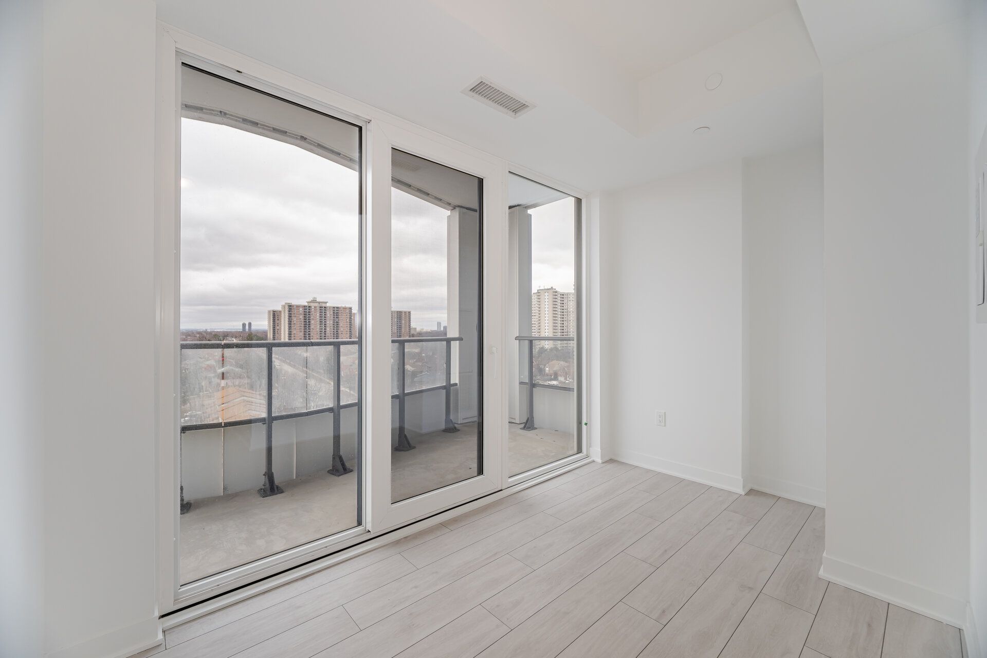 • Spacious oversized balcony with walkouts from living area and den.