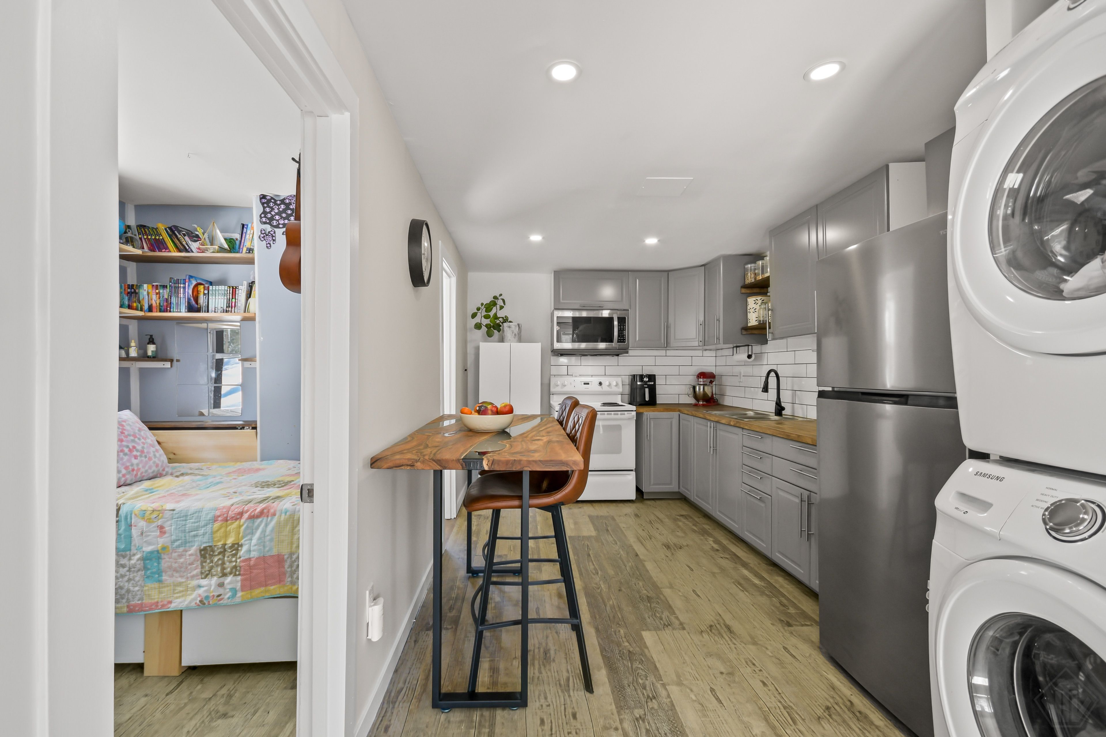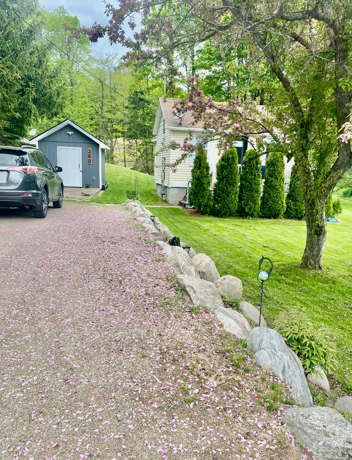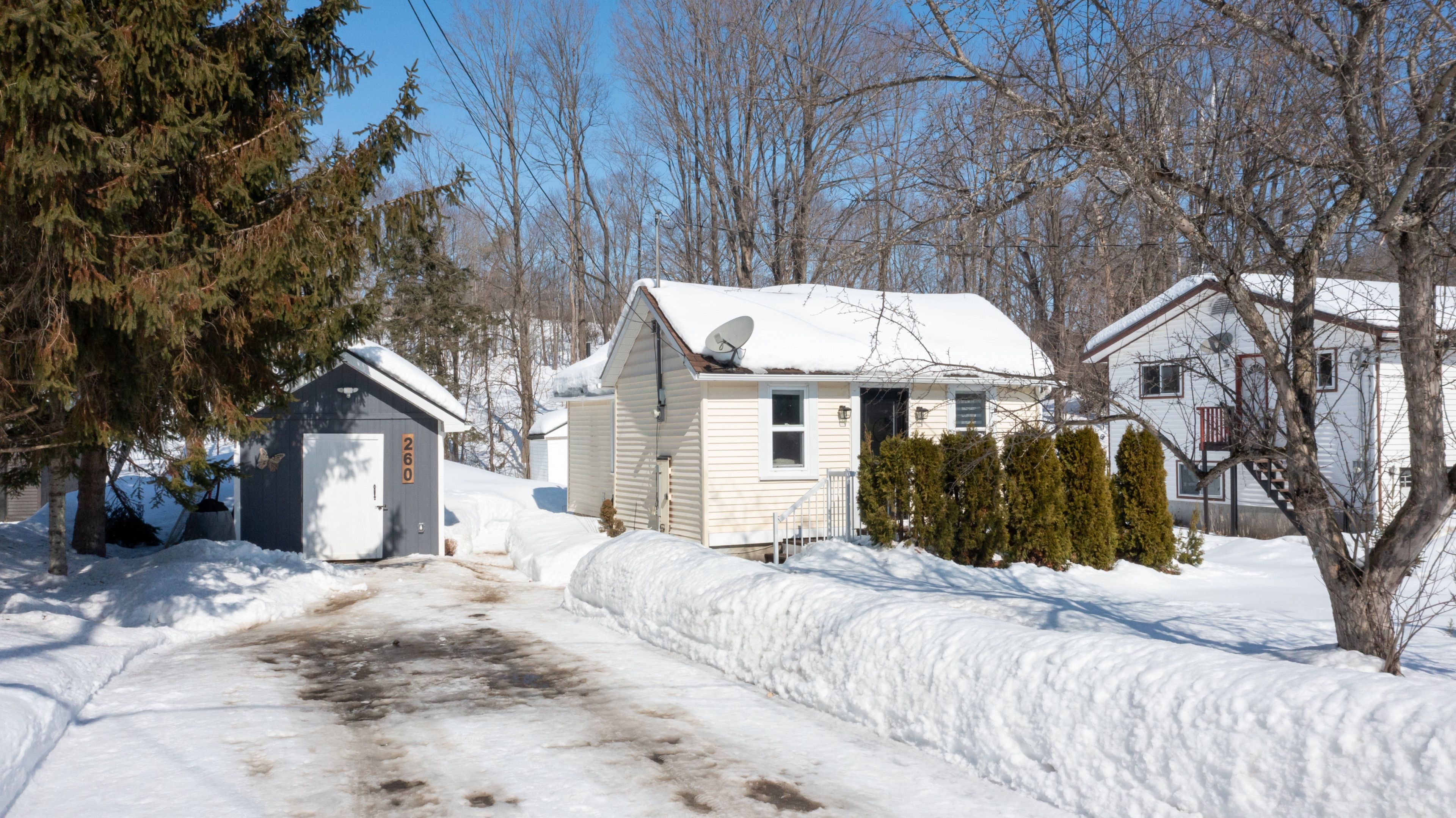Charming home located in desirable west gravenhurst, just minutes from the beautiful muskoka bay park and beach. Enjoy nearby amenities including sandy beach, tennis courts, a playground and baseball diamond; perfect for outdoor recreation. This cozy home offers 2 bedrooms and 1 bathroom with a thoughtfully designed layout that highlights comfort and simple living. The open concept living room and eat-in kitchen create a welcoming space, featuring a updated kitchen and convenient in-kitchen laundry. The bright primary bedroom provides a peaceful retreat, while the second bedroom includes built-in storage for added functionality. A 3-piece bathroom with custom storage completes the interior. Step outside to a spacious front and back yard with treed backdrop, offering plenty of room for gardening, activities and outdoor relaxation. The 4 car driveway offers plenty of storage for your all your vehicles whether it be cars, boats, trailers etc. For added storage there are two sheds on the property, one is a newly built (2024) shed 10'x 10' with concrete pad and has hydro, as well as a backyard shed. All windows and doors were professionally replaced in 2023 by gravenhurst home building center creating a warm and efficient living space. Located just 5 minutes from downtown gravenhurst and only 2 minutes from the vibrant muskoka wharf, where you'll find shopping, restaurants, and popular local events such as the gravenhurst ribfest and dockside festival. With attractive flooring throughout and an easy-to-maintain layout, this delightful home is perfect for first-time buyers, downsizers, or anyone seeking low-maintenance living in the heart of muskoka!