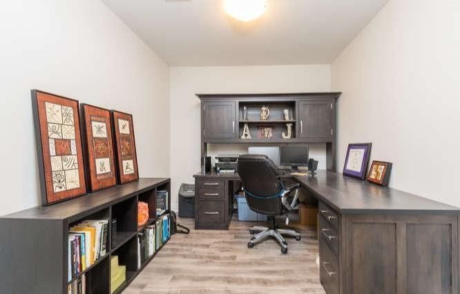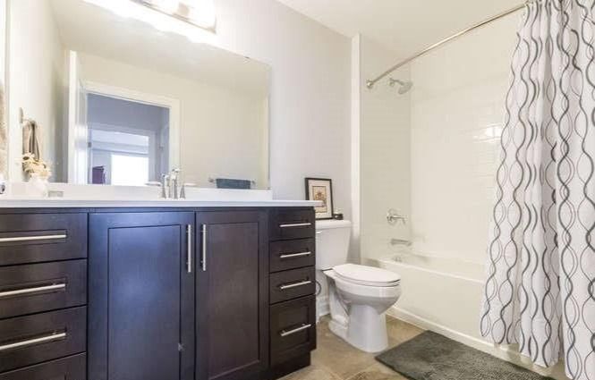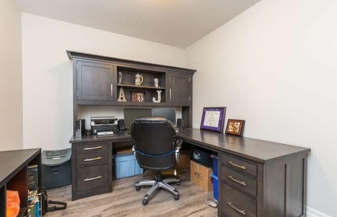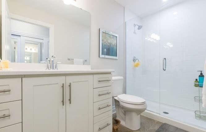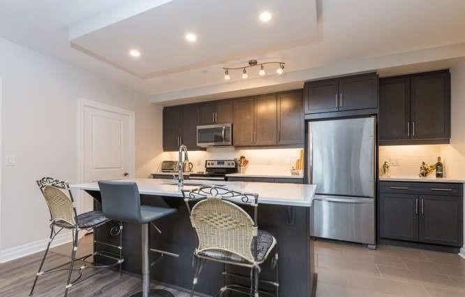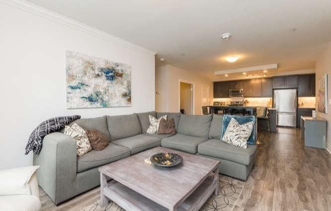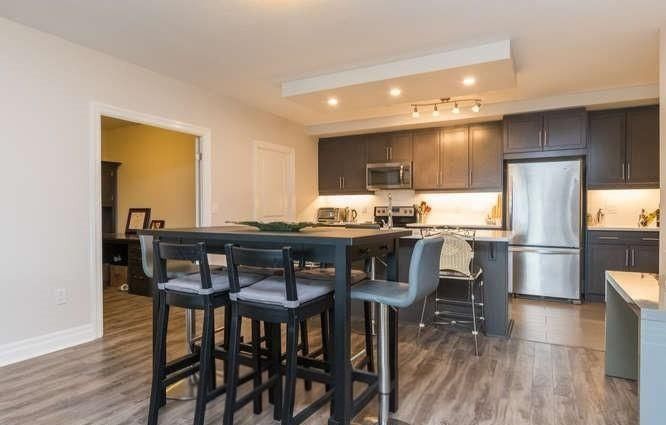 • Modern open-concept layout with stylish laminate and tile flooring throughout.