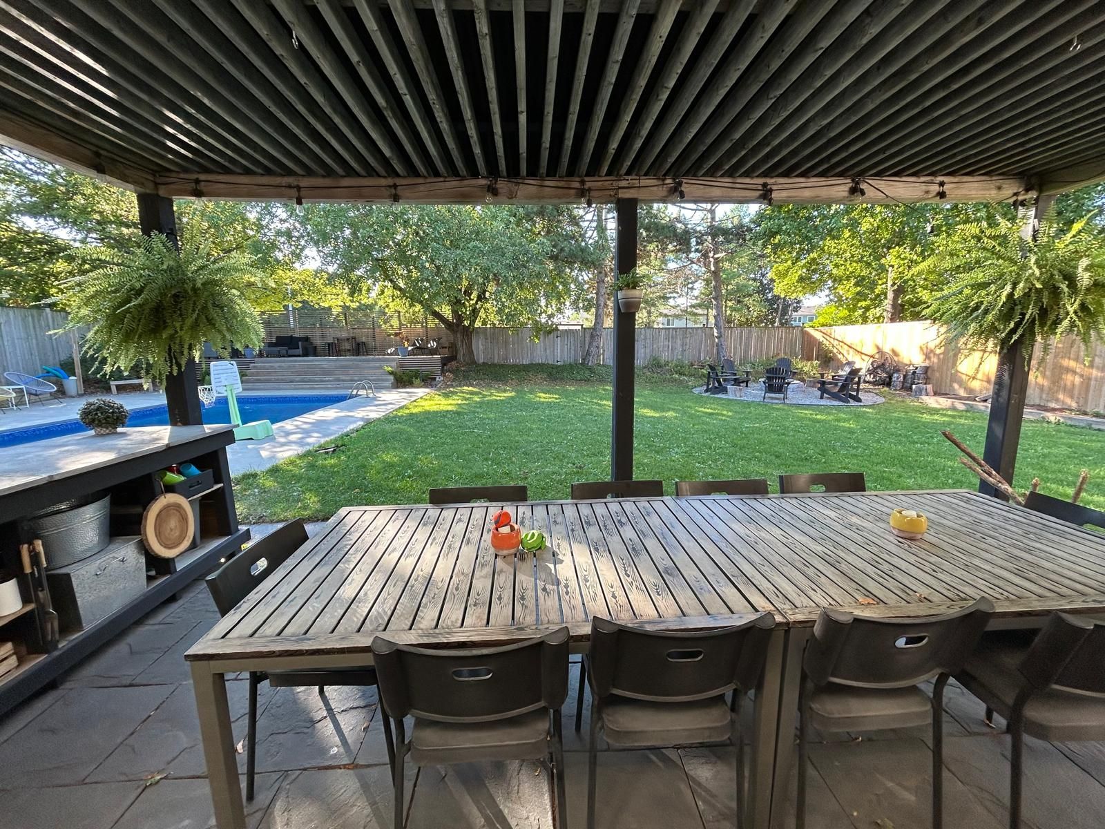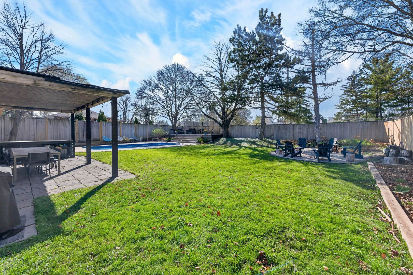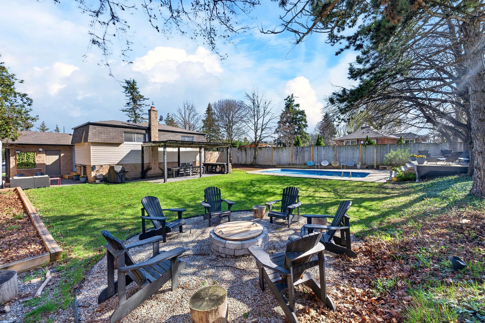 Beautifully updated and deceptively spacious, this raised bungalow sits on an oversized pie lot in a sought-after neighbourhood, close to parks and walking trails. Over 2500sqft total. Attractive and unassuming living; the home opens into a bright split-entry with modern glass doors that set the tone. The main level is thoughtfully renovated to create an open-concept space anchored by a fireplace and designed for connection. The kitchen features solid wood cabinetry, a warm palette, and a generous island that truly becomes the heart of the home. Three bedrooms on this level, including a primary w/ensuite, and a beautifully renovated bathroom that feels timeless and elevated. The lower level offers incredible flexibility; large above-grade windows fill the space with natural light. Here you'll find a spacious rec room with gas fireplace, two large bedrooms, a stylish bathroom with shower, and two additional rooms-one currently used as a home office (or potential sixth bedroom), and another roughed-in for a wet bar (potential future kitchen). With its layout and separate entrance, the home can easily be configured for multi-generational living, or converted into two self-contained units-appealing to both investors and families looking for room to grow. Outside, find your own private backyard retreat, where a heated saltwater inground pool (2019), expansive sundeck, and beautifully defined entertaining spaces come together seamlessly. Enjoy al fresco dining under the gazebo, gather around the bonfire on cooler evenings, or relax in the dedicated conversation area-designed for effortless summer living. Extensive updates provide peace of mind, including a new furnace & a/c (2020), kitchen and main bath (2017), lower bath with shower (2020), new front windows (2023), new front and garage door with opener (2023), rear door (2021), widened double driveway, added gas line for bbq, and updated exterior finishes. A turnkey home offering both lifestyle and long-term flexibility