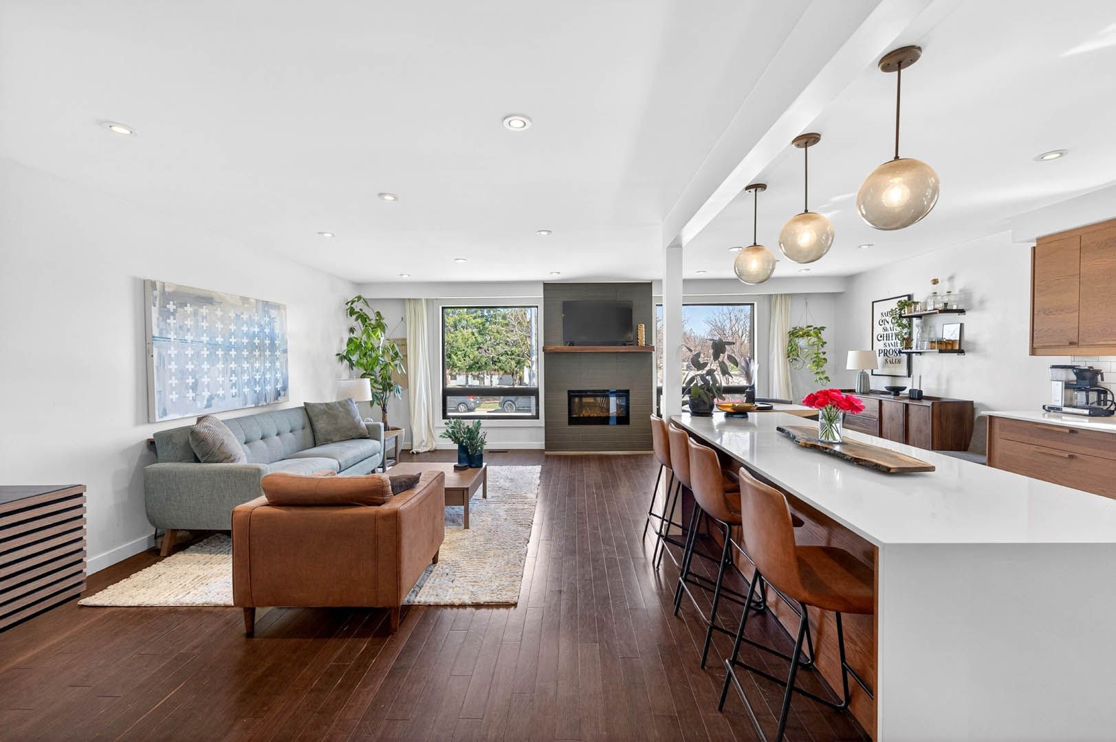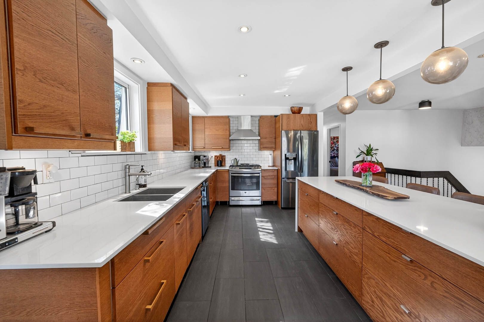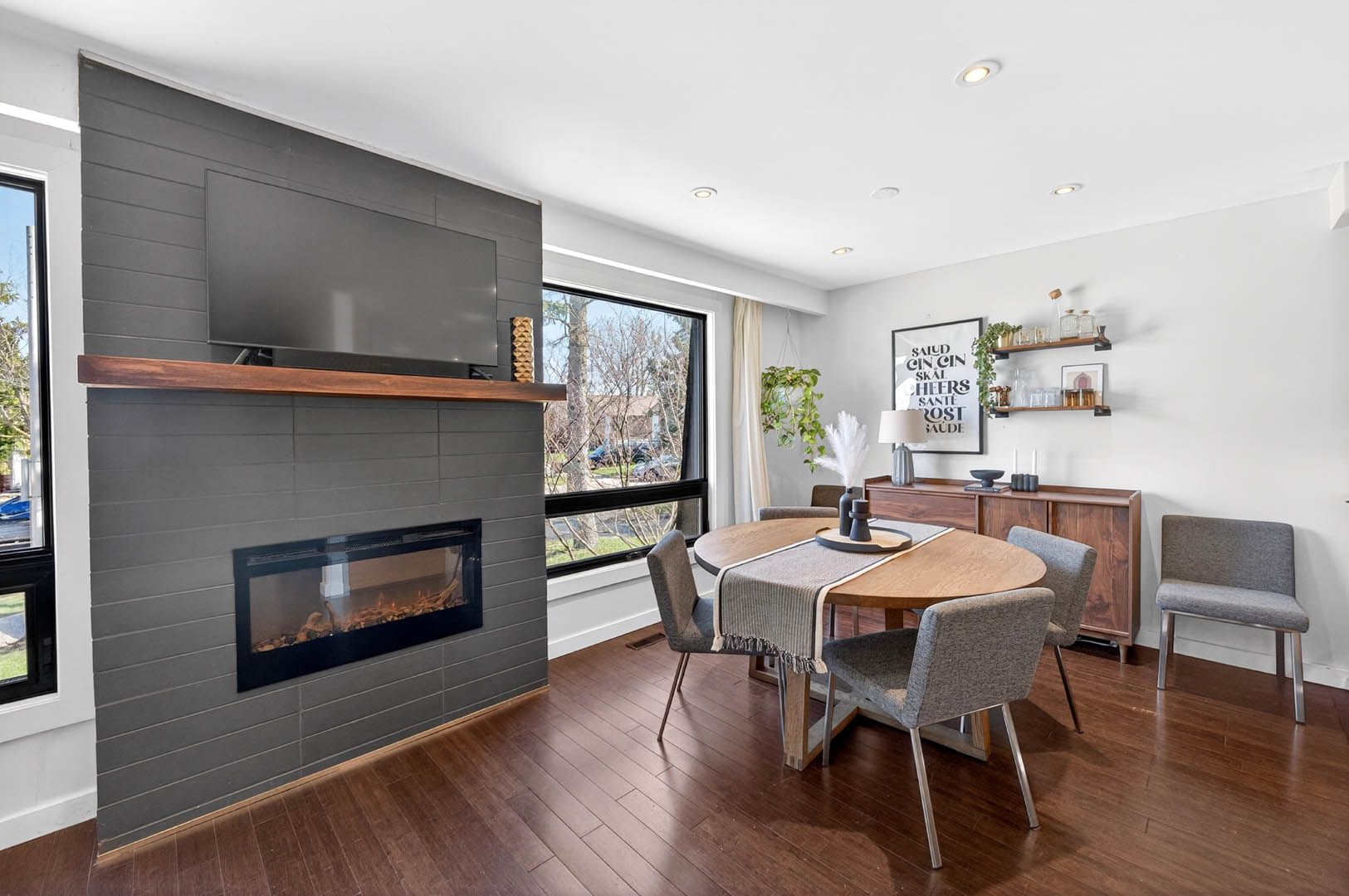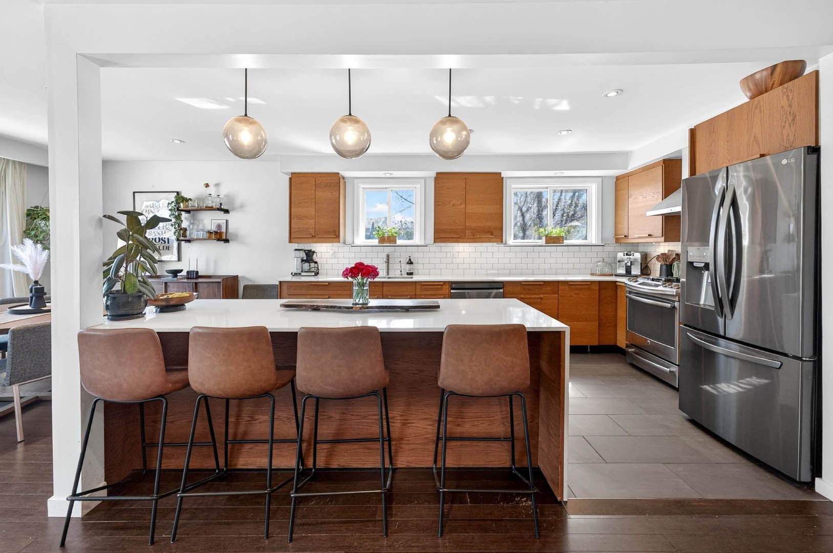 Beautifully updated and deceptively spacious, this raised bungalow sits on an oversized pie lot in a sought-after neighbourhood, close to parks and walking trails. Over 2500sqft total. Attractive and unassuming living; the home opens into a bright split-entry with modern glass doors that set the tone. The main level is thoughtfully renovated to create an open-concept space anchored by a fireplace and designed for connection. The kitchen features solid wood cabinetry, a warm palette, and a generous island that truly becomes the heart of the home. Three bedrooms on this level, including a primary w/ensuite, and a beautifully renovated bathroom that feels timeless and elevated. The lower level offers incredible flexibility; large above-grade windows fill the space with natural light. Here you'll find a spacious rec room with gas fireplace, two large bedrooms, a stylish bathroom with shower, and two additional rooms-one currently used as a home office (or potential sixth bedroom), and another roughed-in for a wet bar (potential future kitchen). With its layout and separate entrance, the home can easily be configured for multi-generational living, or converted into two self-contained units-appealing to both investors and families looking for room to grow. Outside, find your own private backyard retreat, where a heated saltwater inground pool (2019), expansive sundeck, and beautifully defined entertaining spaces come together seamlessly. Enjoy al fresco dining under the gazebo, gather around the bonfire on cooler evenings, or relax in the dedicated conversation area-designed for effortless summer living. Extensive updates provide peace of mind, including a new furnace & a/c (2020), kitchen and main bath (2017), lower bath with shower (2020), new front windows (2023), new front and garage door with opener (2023), rear door (2021), widened double driveway, added gas line for bbq, and updated exterior finishes. A turnkey home offering both lifestyle and long-term flexibility
