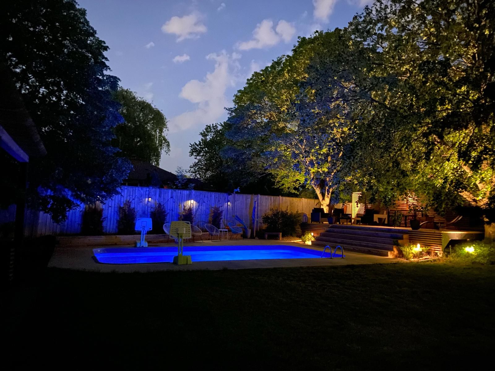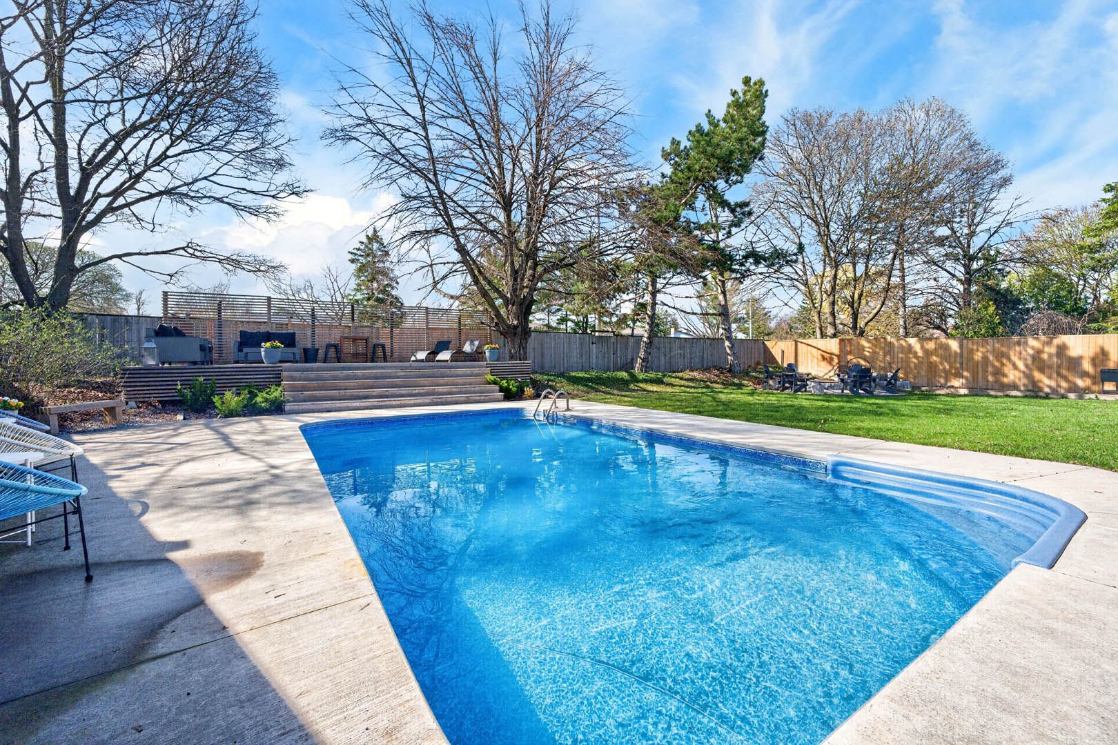 • Private backyard with heated saltwater pool, sundeck, and entertaining areas.