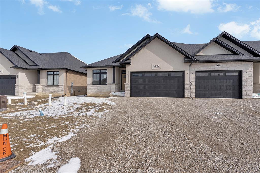 Welcome to 2602 barkley! Located in prime riverside location within walkin distance to trails, lakes and all ammenities. Built by mastercraft homes. (freehold) luxury ranch end unit, full brick and stone, approx 1400 sq/ft. Finished to drywall stage and ready for your pesonnal selections and final touches. Great cabinet choices with stand alone island, quartz counters, walk-in pantry. Separate dining area w/9ft patio doors, covered back area, oversized master bedroom with lavish double vanity ensuite, glass enclosure and full tile, coffered ceilings,walk-in closet. Main floor laundry with extra cabinetry, 9ft ceilings, engineered hrwd flrs, garage opener & gas lines (bbq & kit). Beautifully appointed trim & ceiling details. Very reputable builder with a great history. Concrete driveway, sod & sprinkler system! $95. 00 per mth for lawn maintenance & snow removal. Call today for this great limited pricing.
