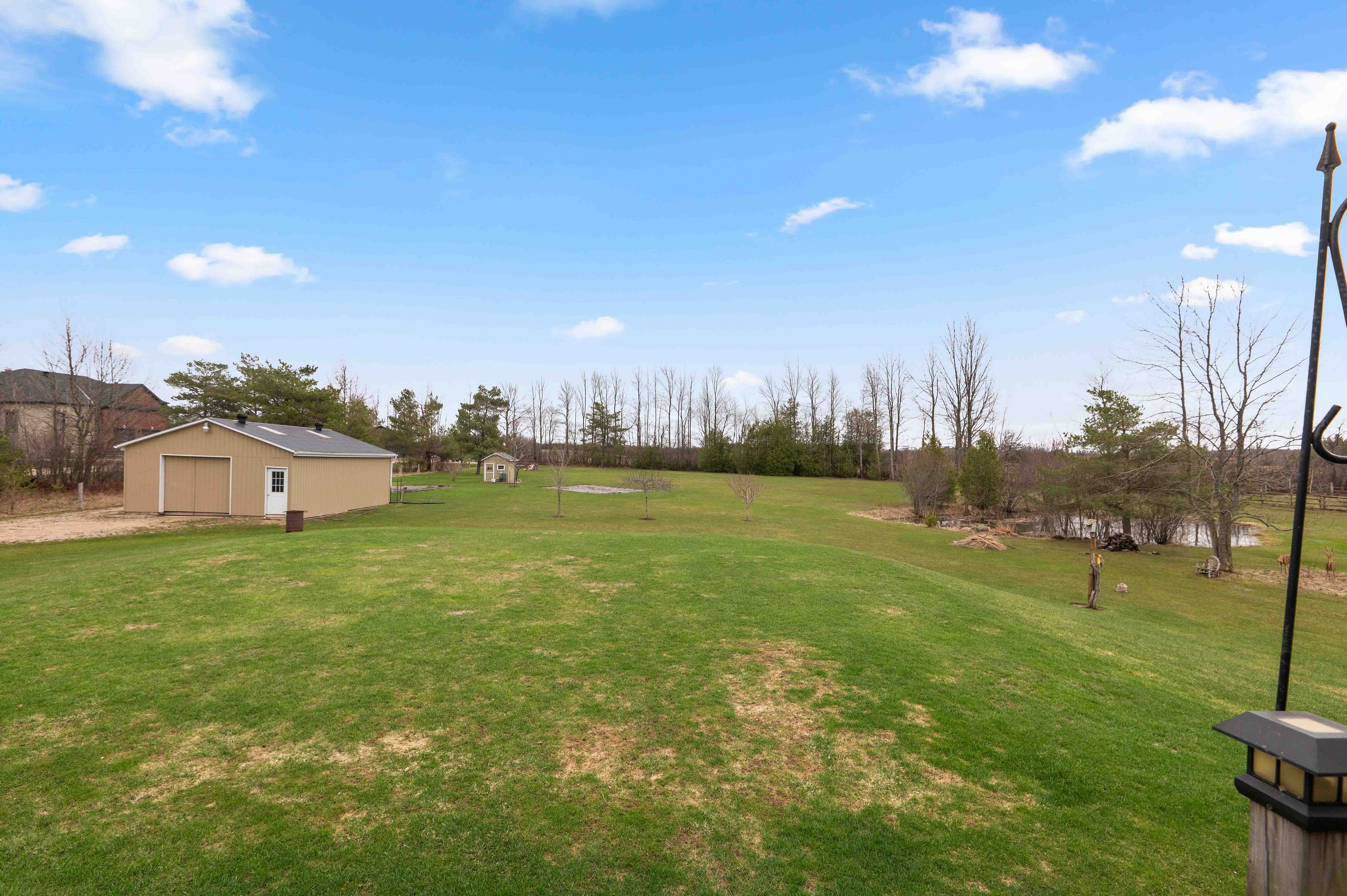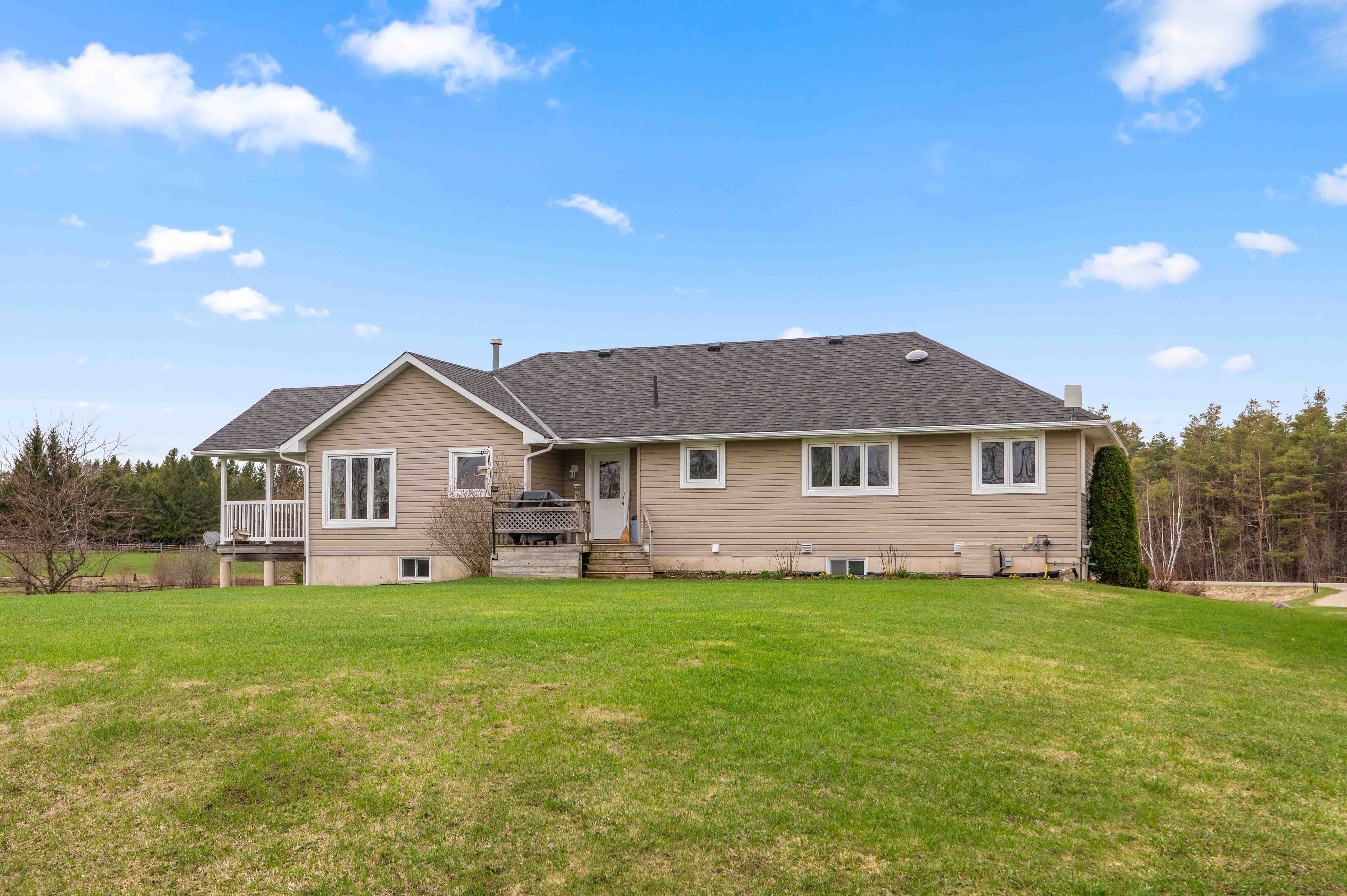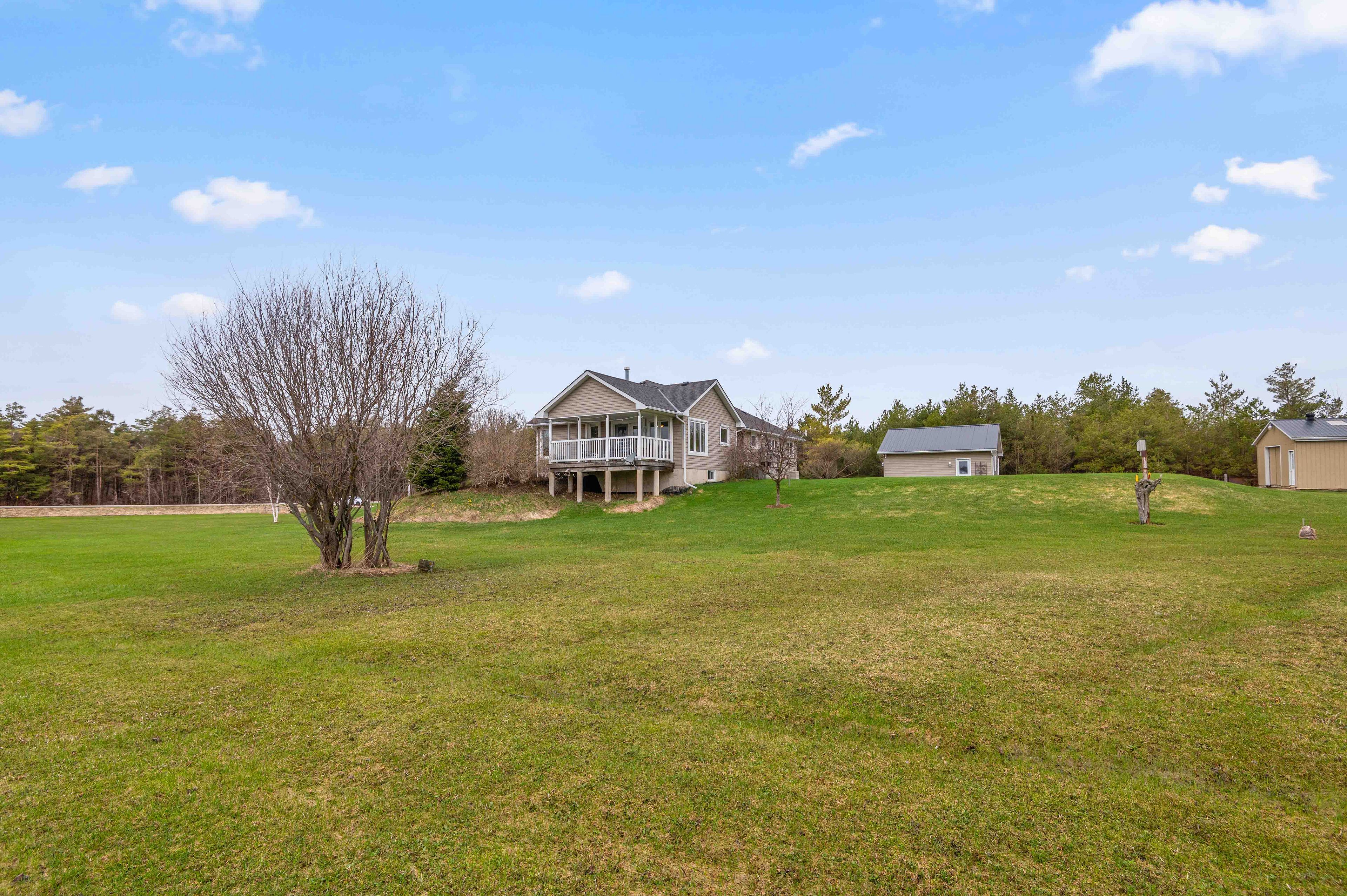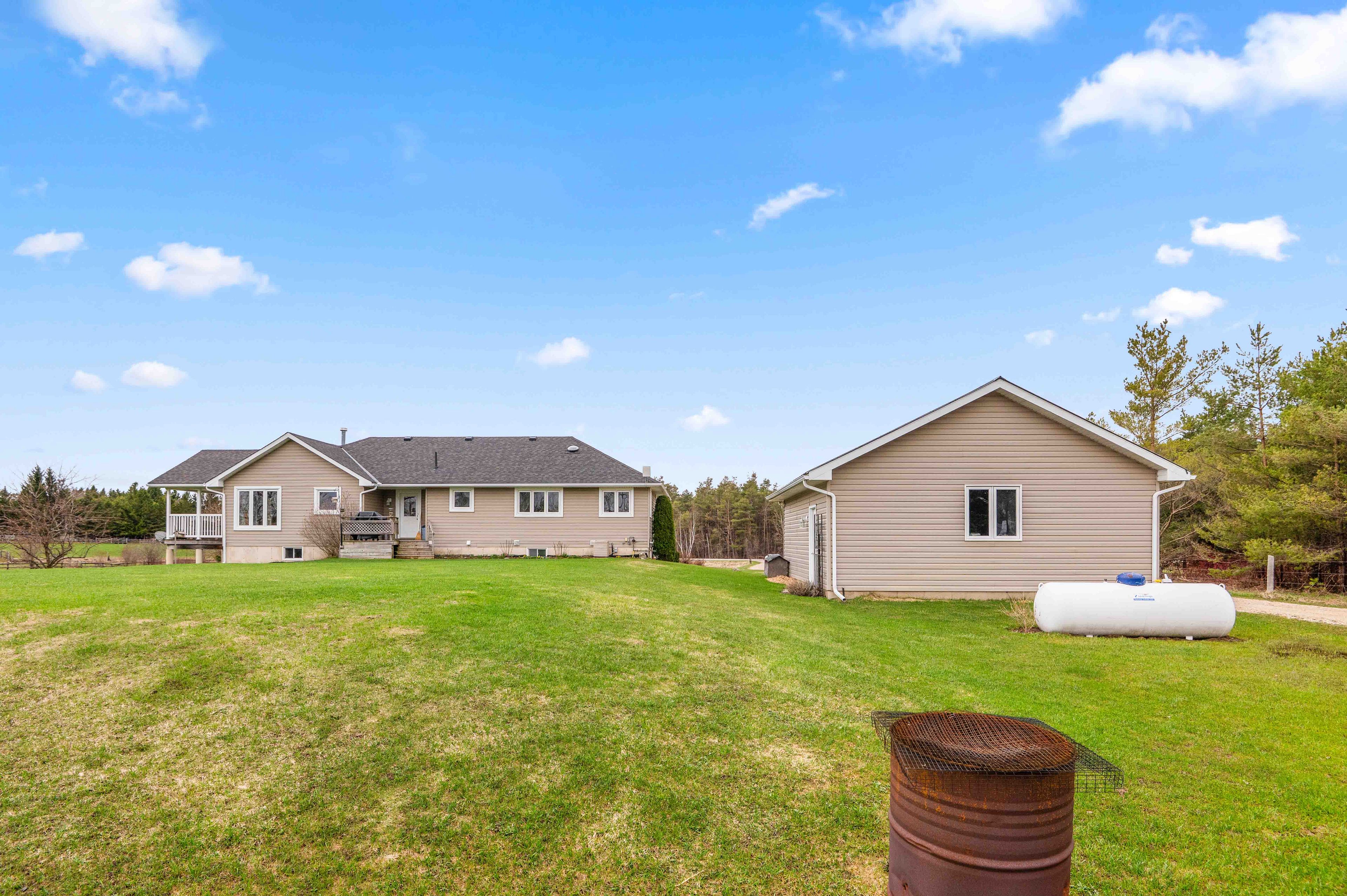 Where comfort meets countryside - welcome to your private 4-acre retreat-where peaceful country living meets modern comfort. This beautifully maintained bungalow offers 3 bedrooms, 2 bathrooms, and a bright, open-concept layout designed for effortless main floor living, featuring 8-foot ceilings and 38inch wide hallways for an enhanced sense of space. The sun-filled kitchen showcases stainless steel appliances and large windows, flowing seamlessly into the dining area-perfect for entertaining. A walkout leads to a charming porch overlooking your own pond, creating an ideal setting for indoor/outdoor living, morning coffee, and sunset views. The spacious primary suite offers a relaxing escape with a 5-piece ensuite and generous his-and-hers closets. Two additional bedrooms provide flexibility for family, guests, or a dedicated home office. A full unfinished basement offers excellent potential, ready for your personal vision. Outdoors, the property is perfectly equipped for hobbyists and those seeking a more self-sufficient lifestyle, featuring a 24' x 30' workshop, detached 24ft x 24ft 2-car garage, pond, garden shed, and expansive garden beds. With major updates already completed and convenient access to highway 10, this home delivers the perfect balance of privacy, functionality, and commuter-friendly location. A rare opportunity to own a turnkey country property with space, versatility, and lasting appeal.