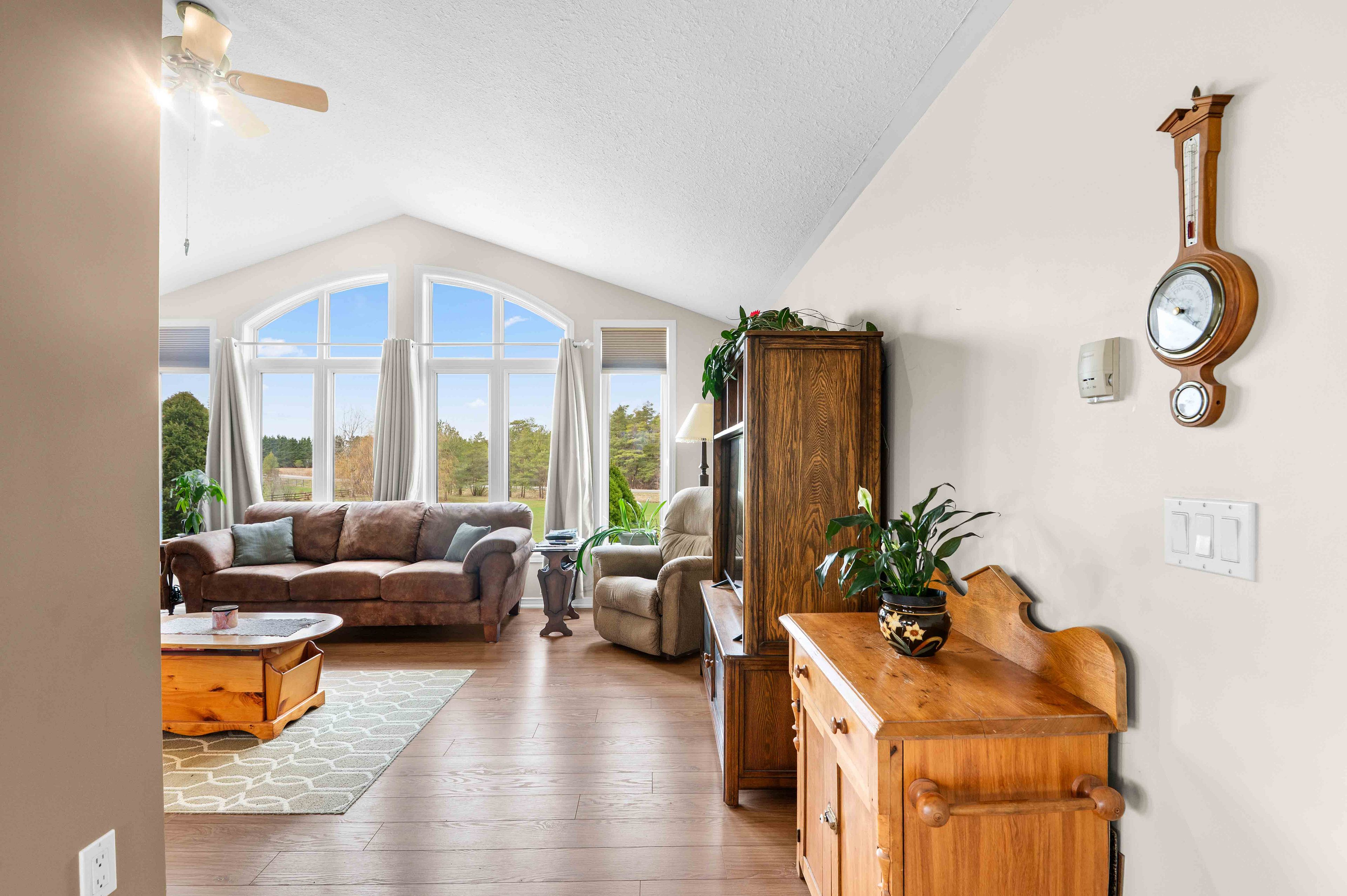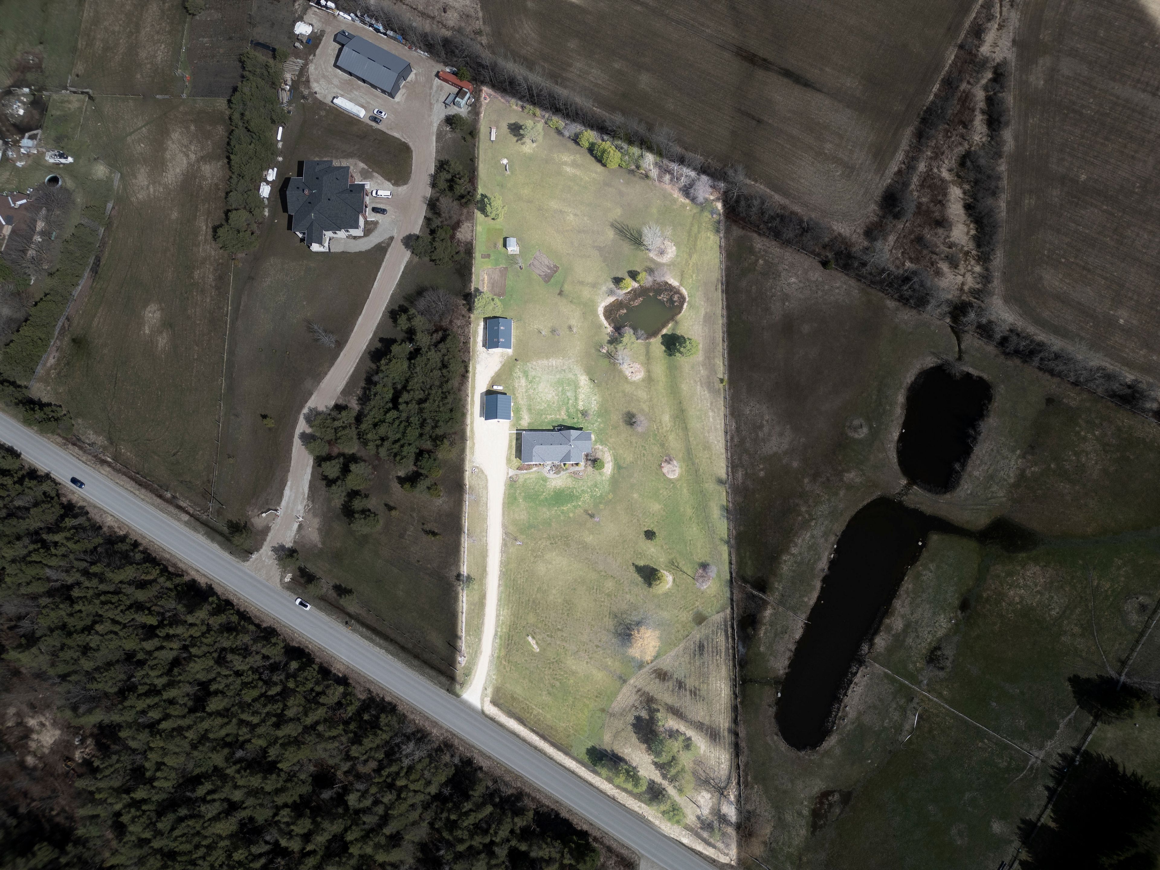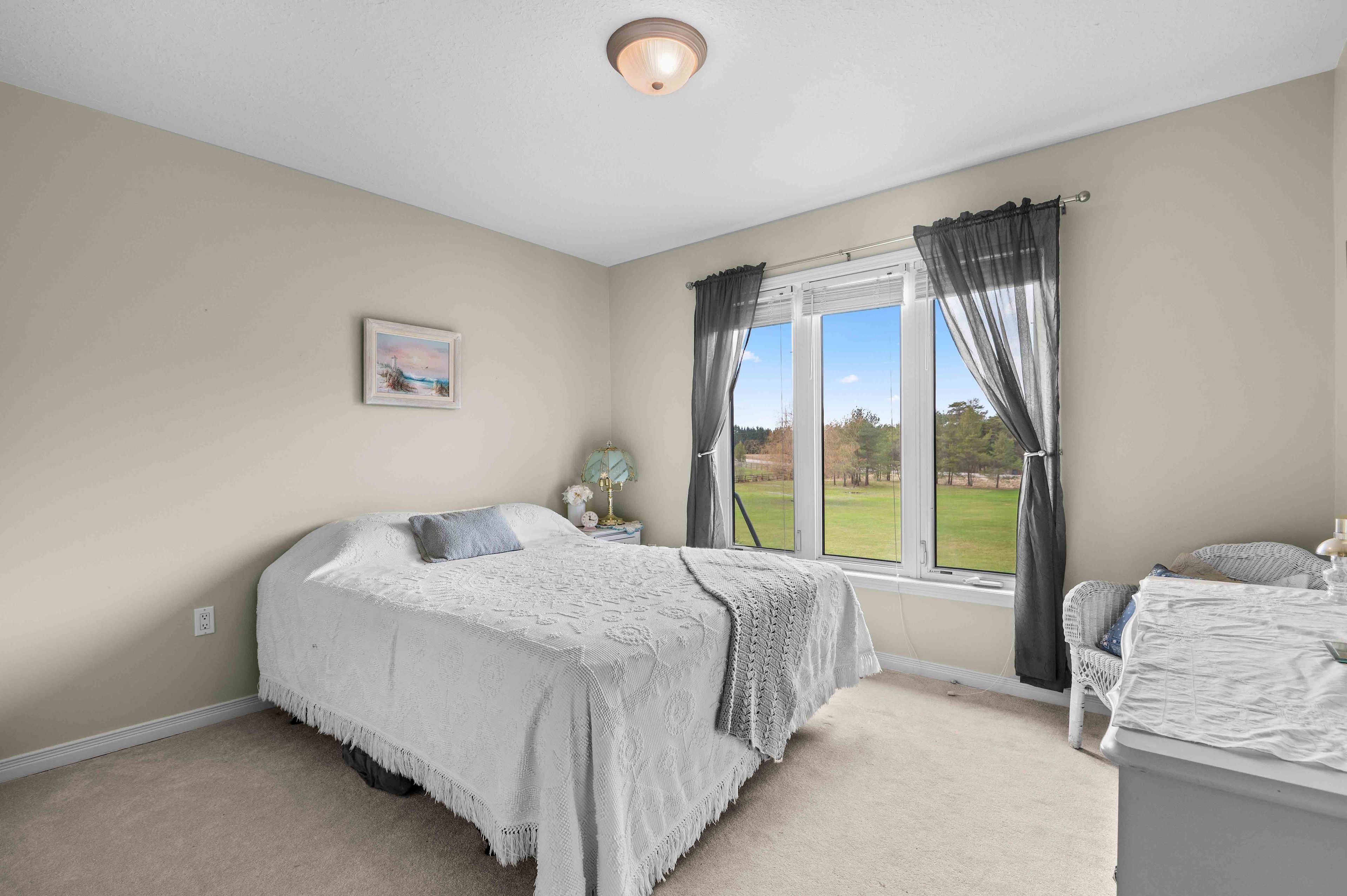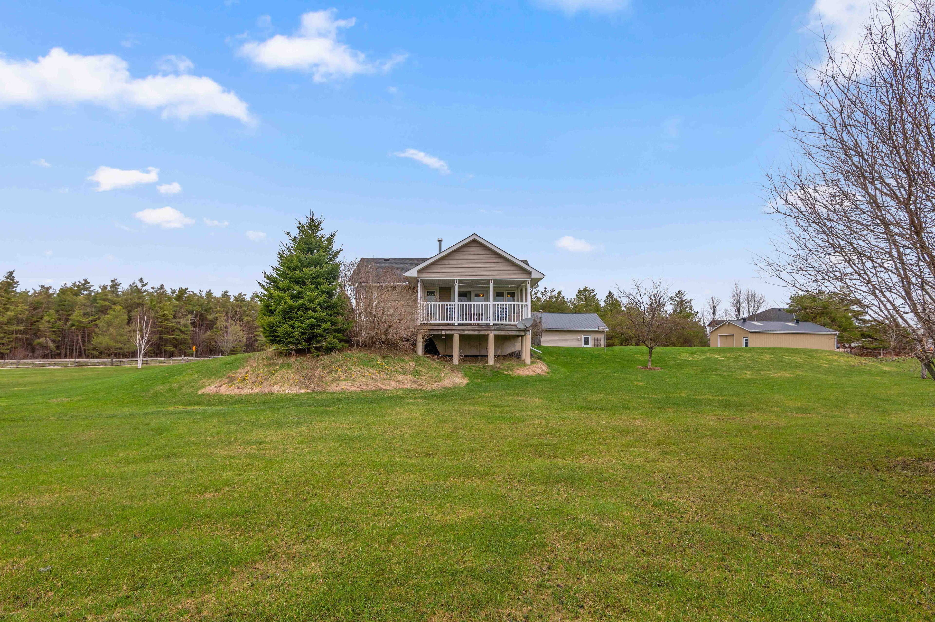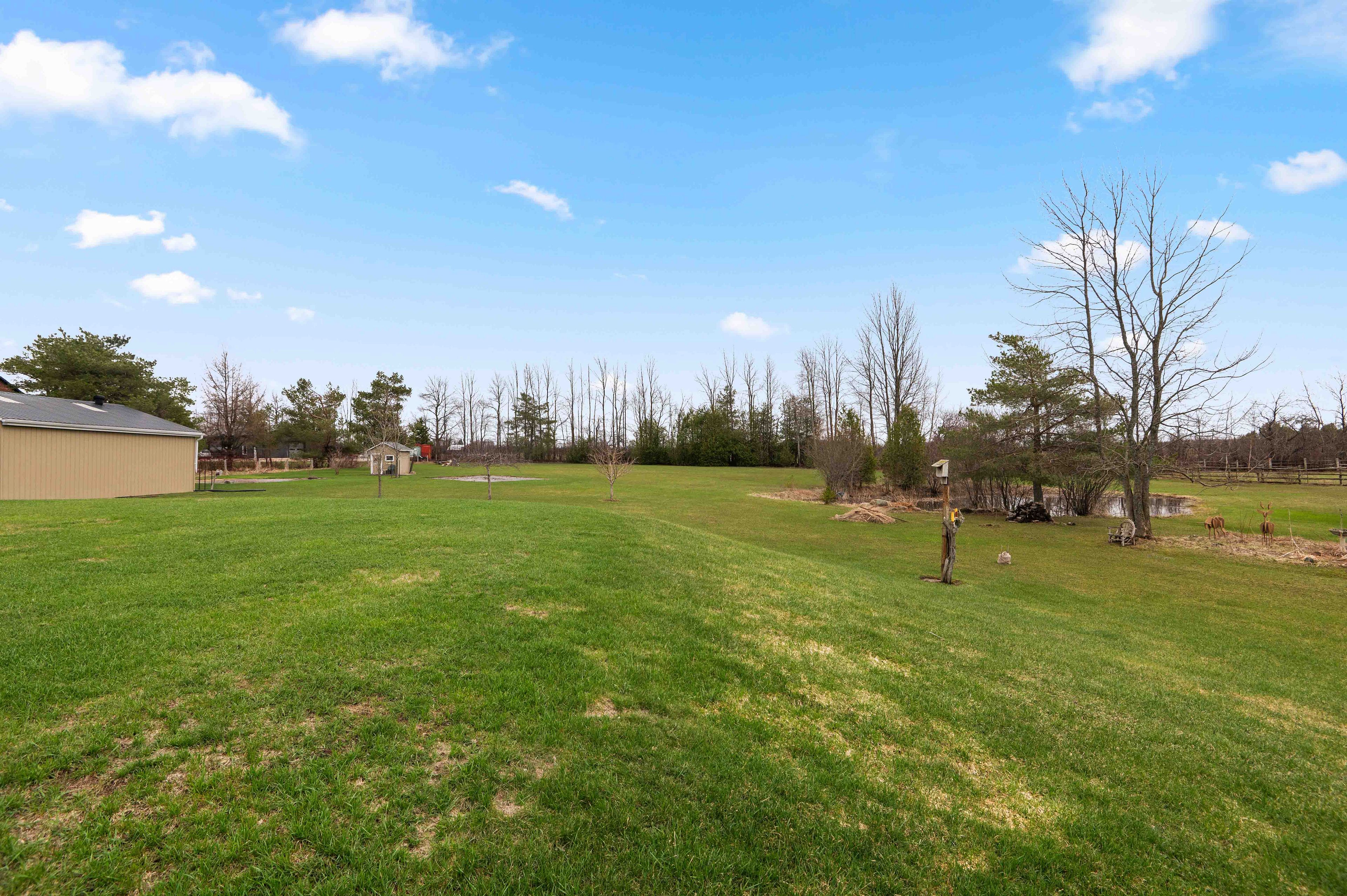 Where comfort meets countryside - welcome to your private 4-acre retreat-where peaceful country living meets modern comfort. This beautifully maintained bungalow offers 3 bedrooms, 2 bathrooms, and a bright, open-concept layout designed for effortless main floor living, featuring 8-foot ceilings and 38inch wide hallways for an enhanced sense of space. The sun-filled kitchen showcases stainless steel appliances and large windows, flowing seamlessly into the dining area-perfect for entertaining. A walkout leads to a charming porch overlooking your own pond, creating an ideal setting for indoor/outdoor living, morning coffee, and sunset views. The spacious primary suite offers a relaxing escape with a 5-piece ensuite and generous his-and-hers closets. Two additional bedrooms provide flexibility for family, guests, or a dedicated home office. A full unfinished basement offers excellent potential, ready for your personal vision. Outdoors, the property is perfectly equipped for hobbyists and those seeking a more self-sufficient lifestyle, featuring a 24' x 30' workshop, detached 24ft x 24ft 2-car garage, pond, garden shed, and expansive garden beds. With major updates already completed and convenient access to highway 10, this home delivers the perfect balance of privacy, functionality, and commuter-friendly location. A rare opportunity to own a turnkey country property with space, versatility, and lasting appeal.