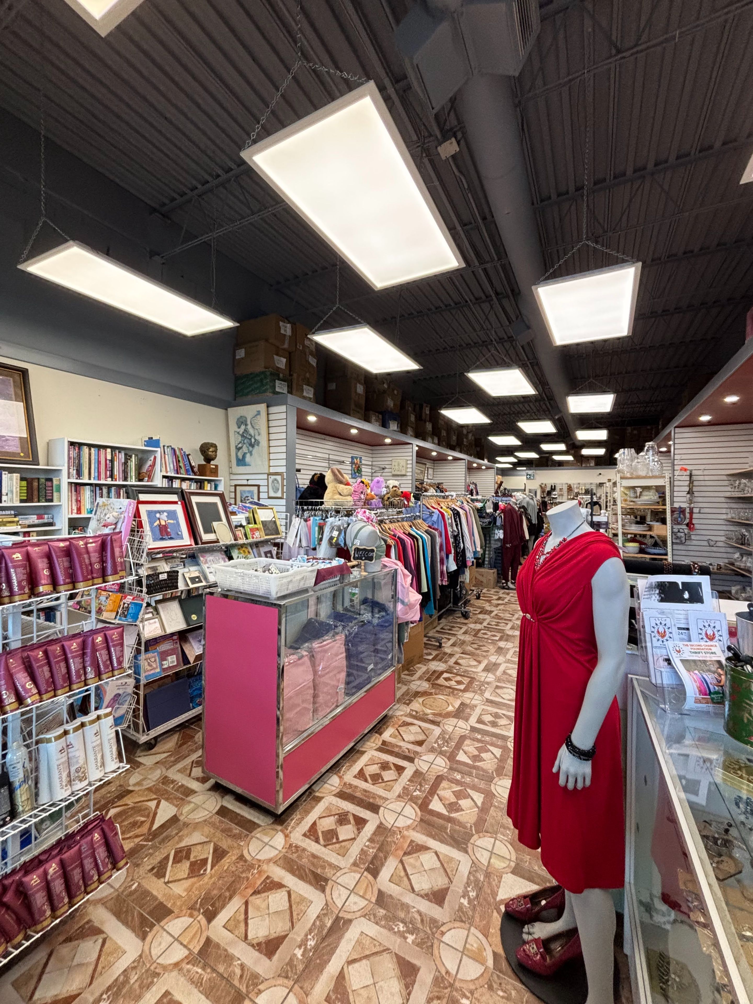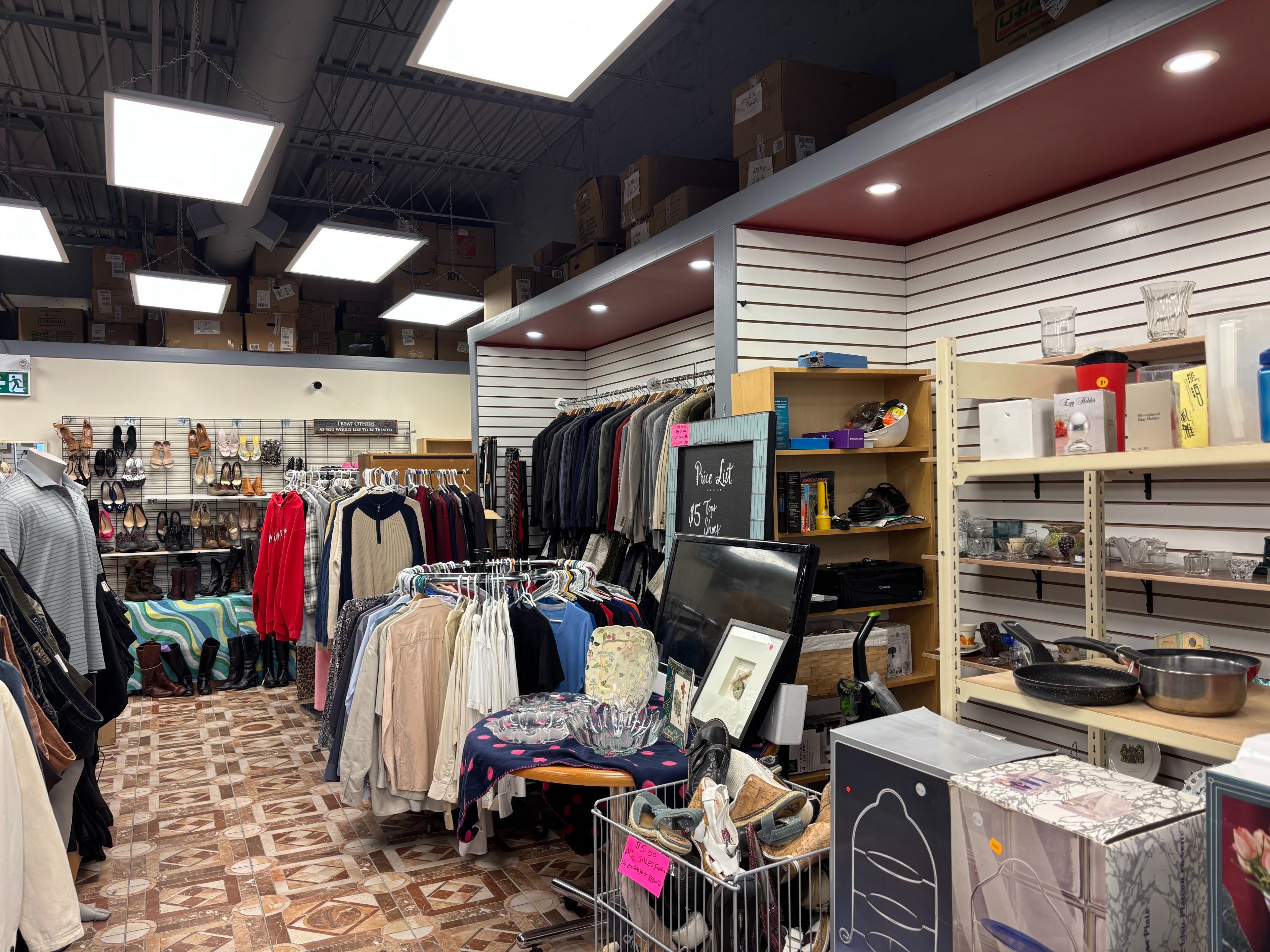 Turnkey clothing business. Includes display/clothing racks, furniture, light fixtures, pos software equipment. Items on display and stored on premises. Lease renewed for 5 years expires june 30, 2030. Buyer may include the time needed to execute an assignment and assumption of lease agreement with the landlord's consent. N. B: 25 plaza parking spots are shared and not designated to a specific business.