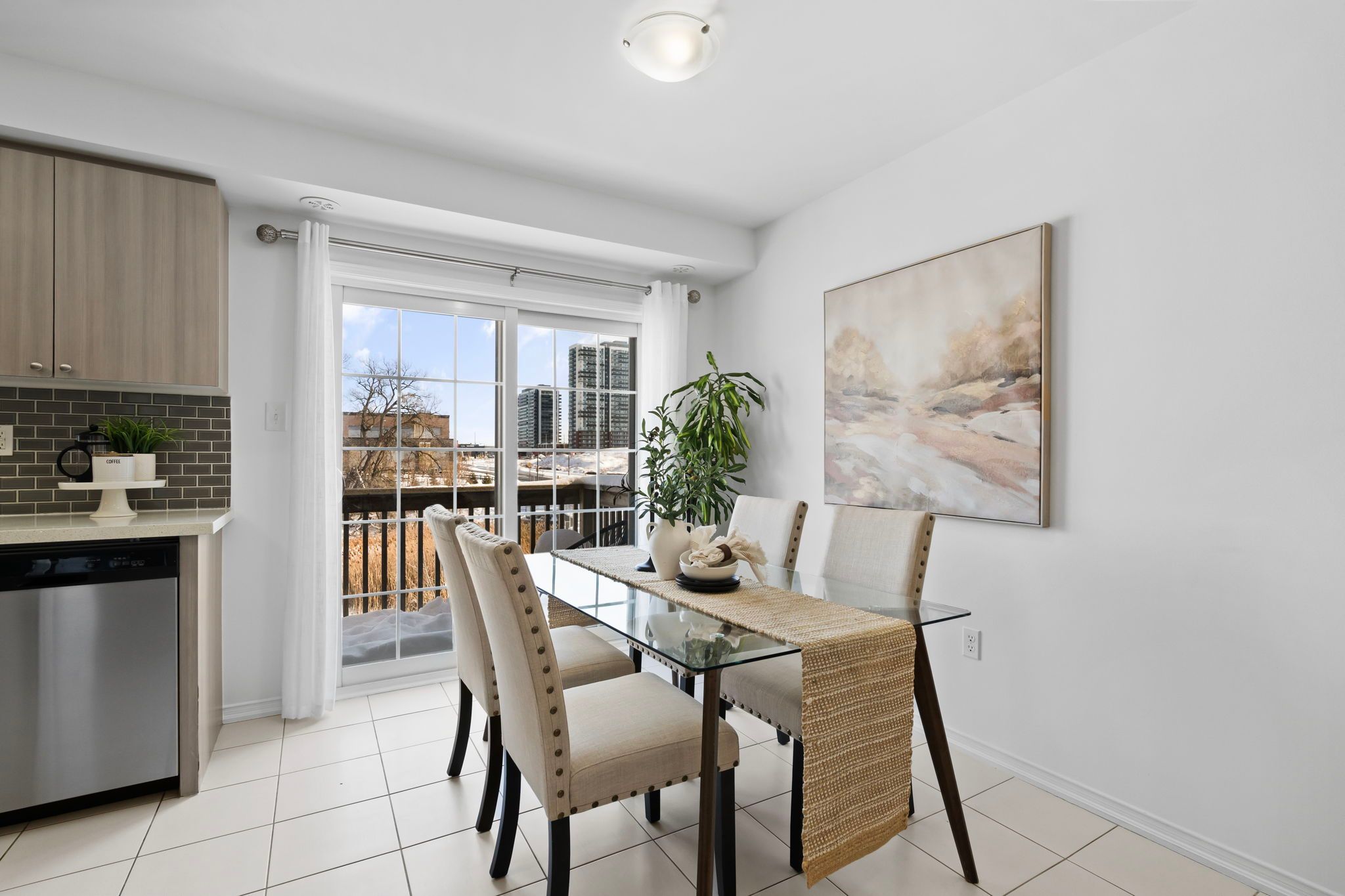 • Modern kitchen with stainless steel appliances and a walkout balcony.