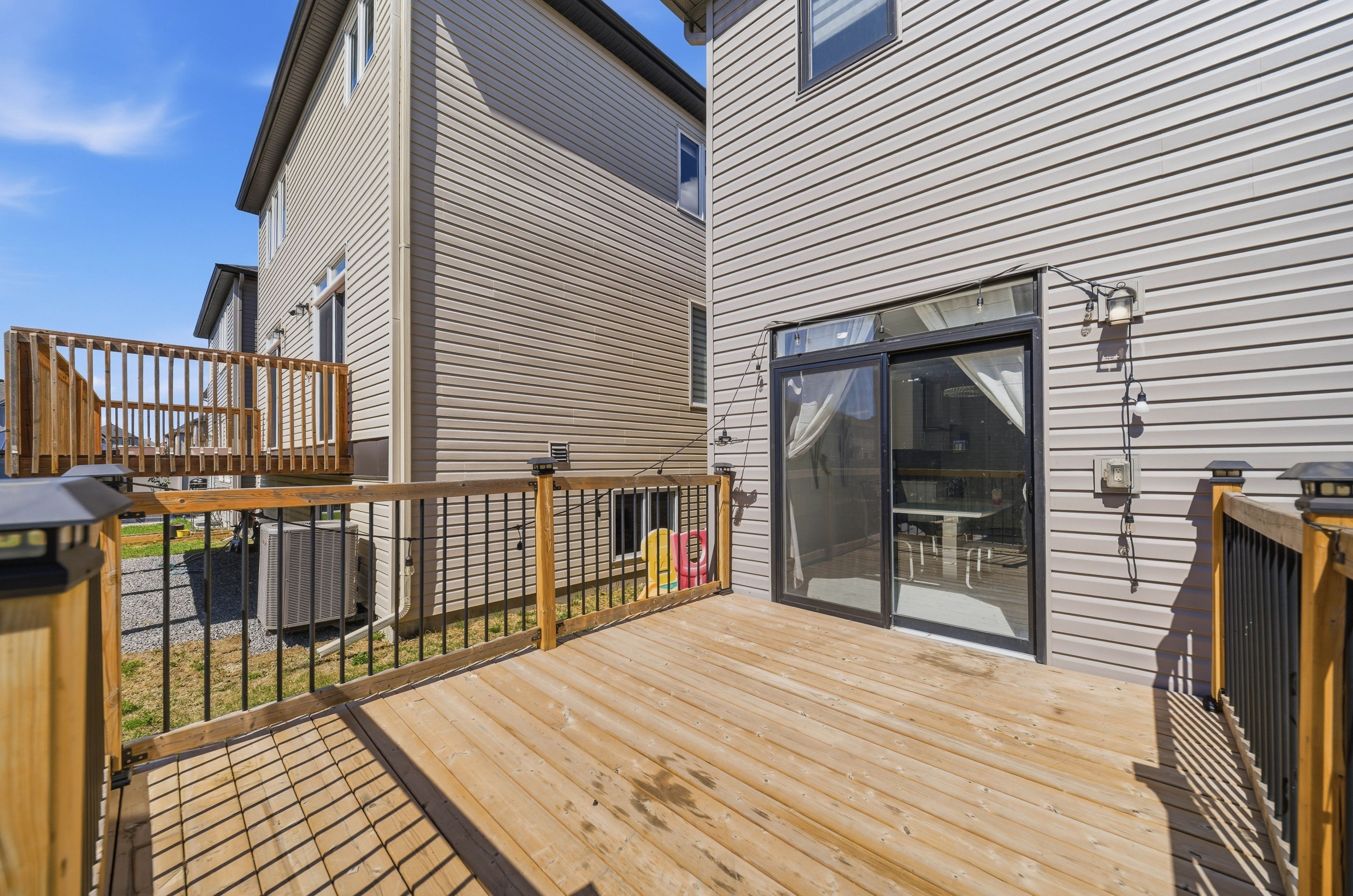Absolutely stunning 3-bedroom, 3-bath home in barrhaven's sought-after quinn's pointe. This beautifully upgraded home features hardwood flooring throughout including staircase, elegant quartz countertops, stylish tile, modern pot lights, and a cozy gas fireplace. The bright, open-concept layout connects the kitchen, living, and dining areas-ideal for entertaining. Large patio doors lead to a fully landscaped backyard complete with a large deck patio, dining area,and room to bbq. Upstairs offers generous bedrooms, including a luxurious primary retreat with a walk-in closet and ensuite. The basement adds versatile living space with a large rec room, home gym or office area and ample storage. Located on a quiet street close to parks, schools, walking paths, recreation, and shopping, this immaculate home combines style, comfort, and convenience. Don't miss your opportunity to own a truly exceptional property in one of barrhaven's most desirable communities.