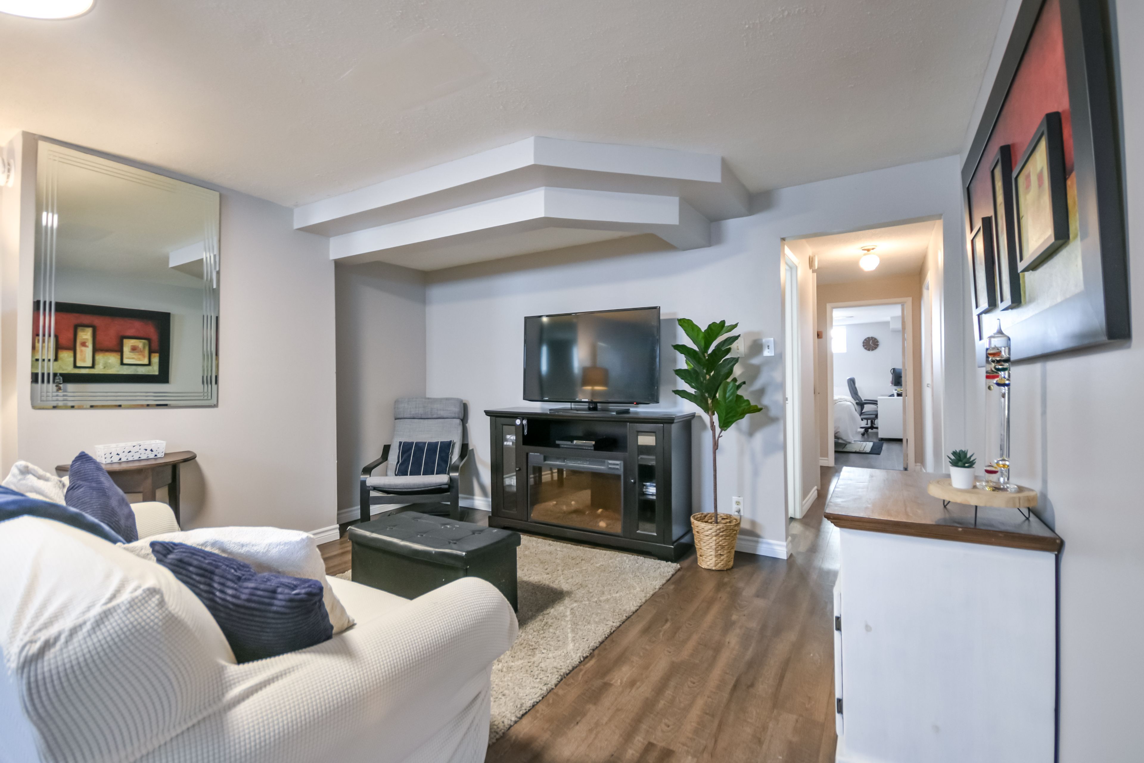 Attention downsizers, first time buyers and/or investors. Welcome to your new home ! Move in ready, fully updated throughout with new kitchen cabinetry, quartz countertops, ss appliances (all 2021) & flooring with eat-in peninsula & tons of storage (2021). New laminate on main (2021) + california shutters. Upper bedrooms with new carpeting (2025), main floor laundry (2021) with inside entrance to garage and separate entrance to basement which offers in-law suite potential or combined family capability with lvp flooring (2021), living room w/gas fireplace & 2 large & bright bedrooms. New shingles (2018) with new fascia/soffit/eavestrough (2020), 3 season sunroom off back door and a huge, fully fenced yard with 2 sheds for extra storage and/or entertainment possibilities. A quick walk to bear creek eco park, ferndale p. S. & ardagh bluffs hiking trails with a short drive to barrie's waterfront. Close to hwy 400 & amenities.