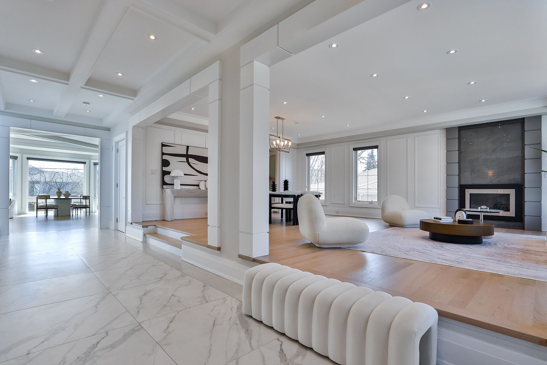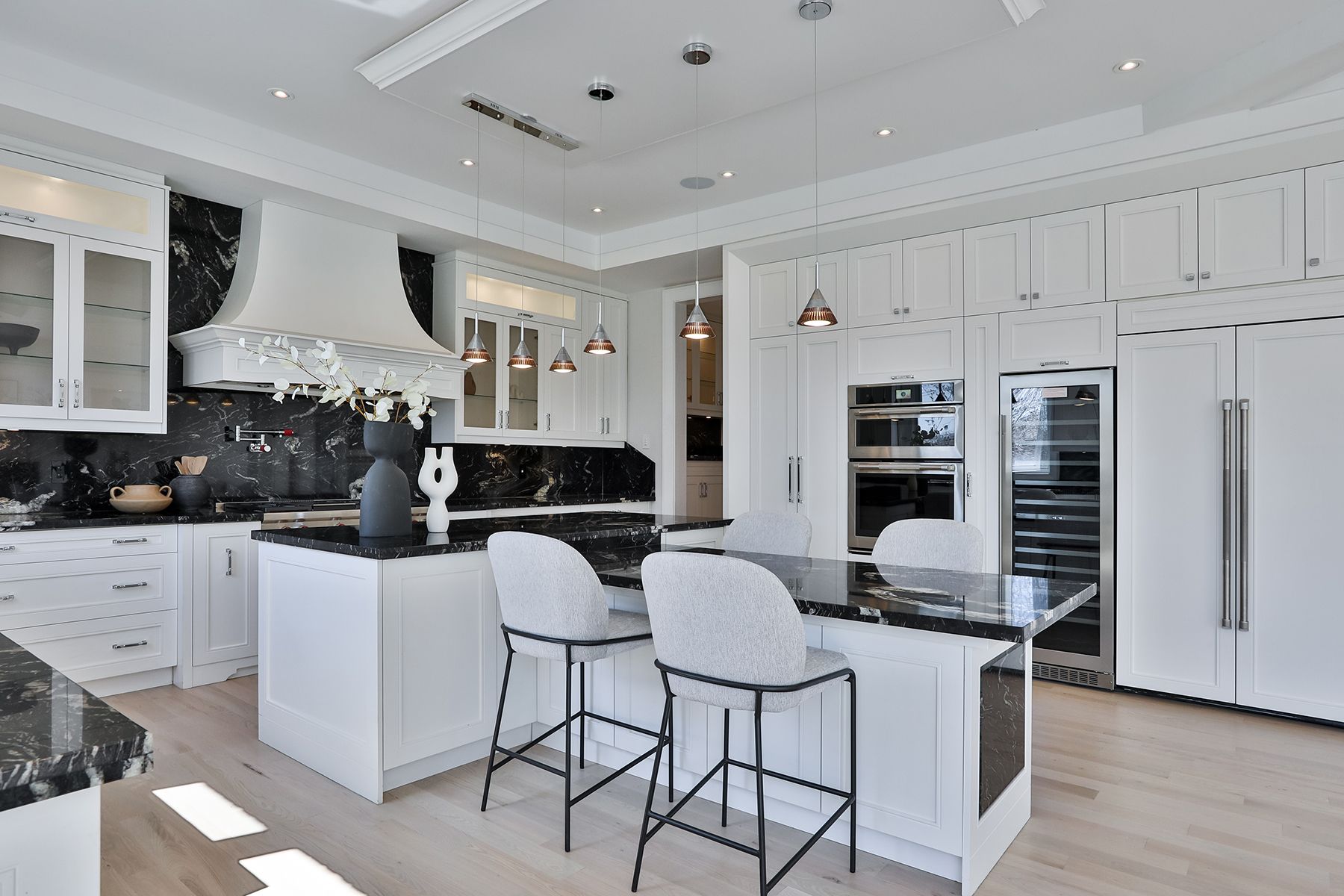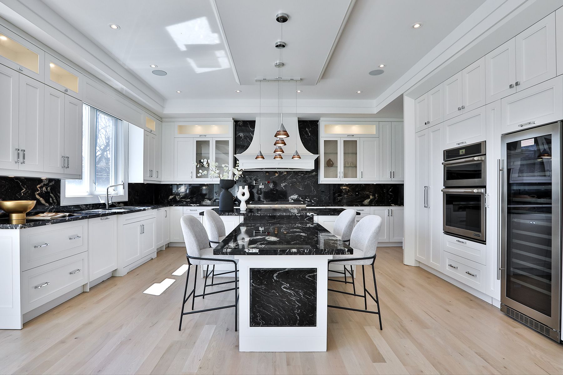 Luxurious custom-built home with elevator & heated driveway premium features stunning custom-built residence offering nearly 6,300 sq. Ft. Of total living space (approx. 4,300 sq. Ft. Above grade plus a professionally finished walk-out basement). Designed with exceptional craftsmanship, high ceilings on all levels, and elegant architectural details including millwork, built-ins, and coffered ceilings. This home features a private 4-stop elevator, heated driveway and steps, and two kitchens on the main floor-a designer showcase kitchen alongside a fully equipped functional cooking kitchen-perfect for entertaining and everyday living. The open-concept kitchen and family room create an inviting space for gatherings. All bedrooms are generously sized and include private ensuites. The luxurious primary suite offers a 6-piece ensuite with heated floors, a fireplace, and a spacious walk-in closet with a large south-facing window. The bright walk-out lower level boasts heated floors, a home theatre with projector and screen, a wet bar, and high ceilings-ideal for recreation and entertaining. Convenient direct access from the garage to a mudroom enhances functionality. Additional highlights include:premium appliances (wolf 6-burner gas range with griddle, panelled fridge, built-in oven/microwave/dishwasher)secondary kitchen with additional stove and microwavepot fillergas fireplacesbuilt-in speakerscentral vacuumtwo washers & two dryersdual home automation systemsideally located close to shopping, parks, and top-rated schools.