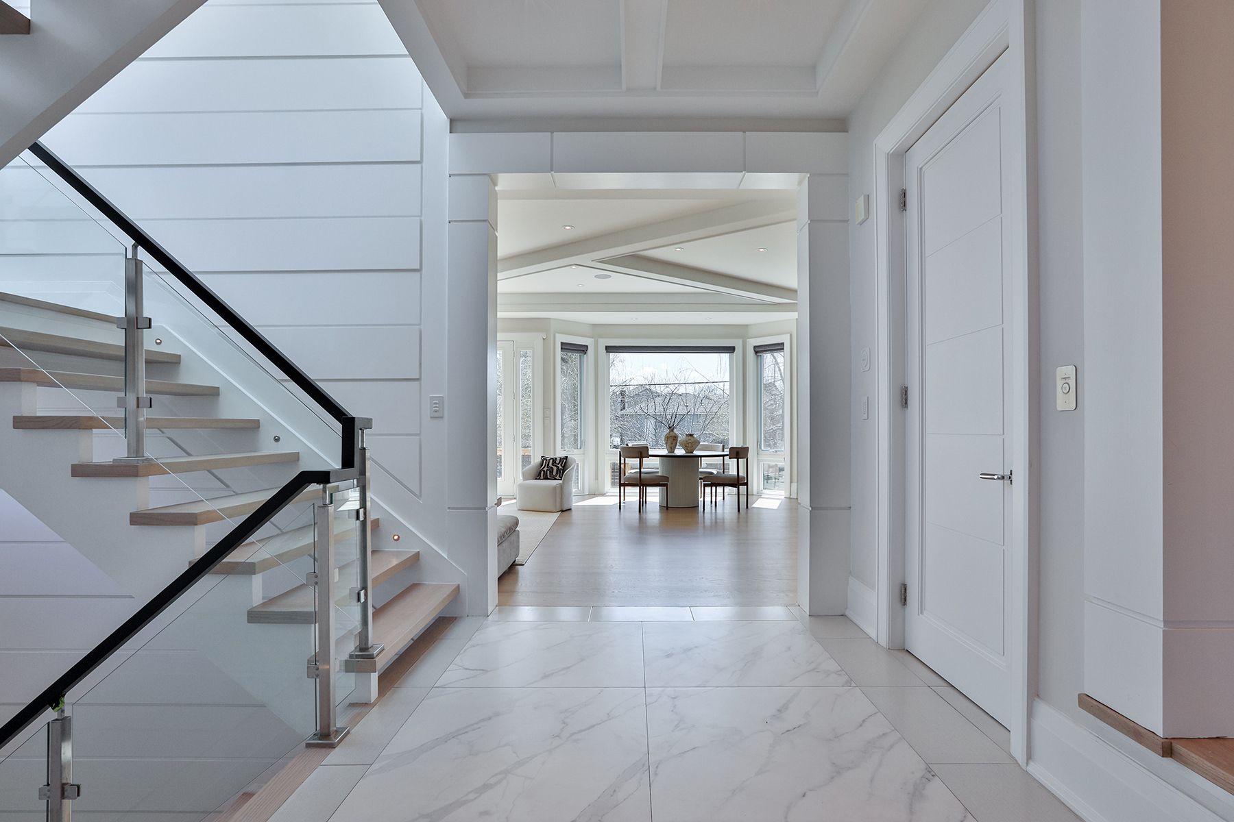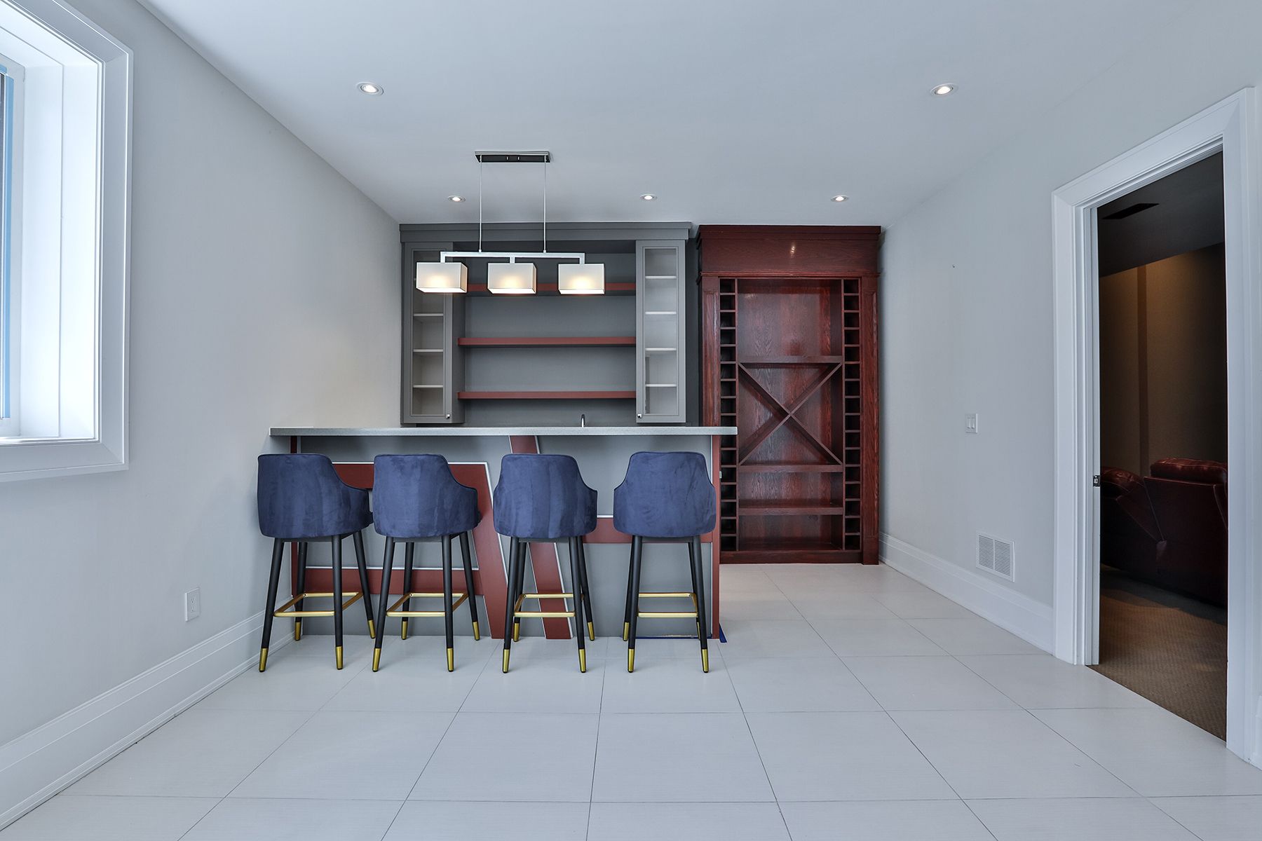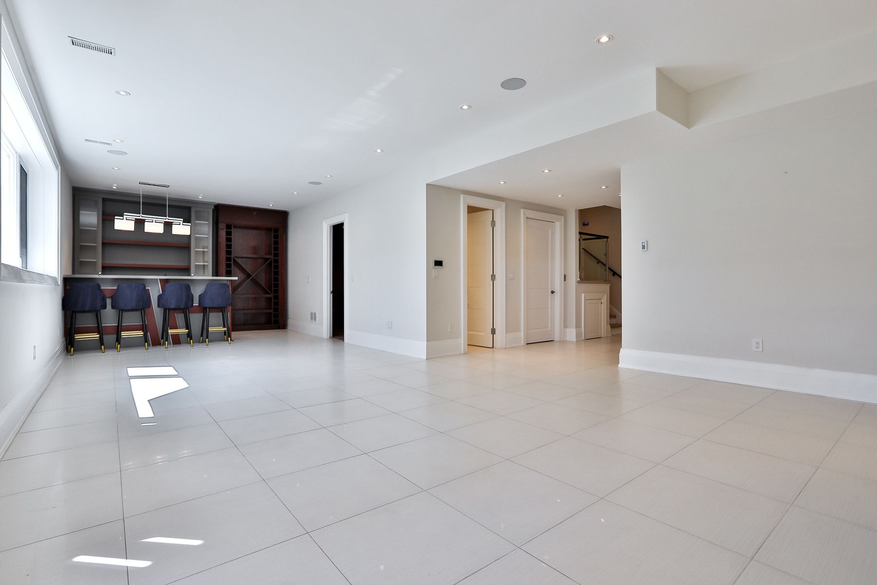 • Bright lower level with home theatre, wet bar, and heated floors.