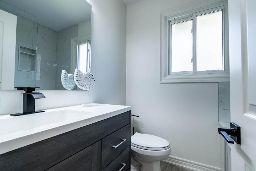 A must see!!! Welcome to this fully updated 2 storey semi-detached, 2 + 1 bedroom home with over 1400 sq. Ft. Of finished floor space in sought after north end st. Catharines. A prime location that puts you minutes away from every convenience - shopping malls, grocery stores, and schools. This turn-key home was designed with comfort and style in mind. Brand new kitchen features new cupboards with sleek quartz countertops and brand new black stainless appliances. The upscaled bathrooms include new vanities, porcelain tile shower/tub with swinging glass door and glass shower enclosure. The eye-catching oak staircase and railing with iron balusters leads to the upstairs that houses two spacious bedrooms with ample closet space. Stylish updates include: luxury flooring throughout the entire house sets the stage for modern living, complemented by a striking feature brick wall with a wood mantel and 50" sleek fireplace in the great room that is sure to be a conversation starter; all new led lighting fixtures, window treatments and interior doors and custom trim. Peace of mind comes standard with a durable and long-lasting metal roof, ensuring your home stays protected through all seasons. The open concept basement boasts a huge recreation room or potential 3rd bedroom. The spacious 100 foot+ backyard offers endless opportunities for relaxation or entertaining, while the new driveway, landscaping, side fence, maintenance free brick & stone exterior with new exterior doors, aluminum railing enhances curb appeal and functionality. Every inch of this home has been meticulously revamped. This striking property is a must-see for anyone seeking a turn-key home, be the first to live here!
