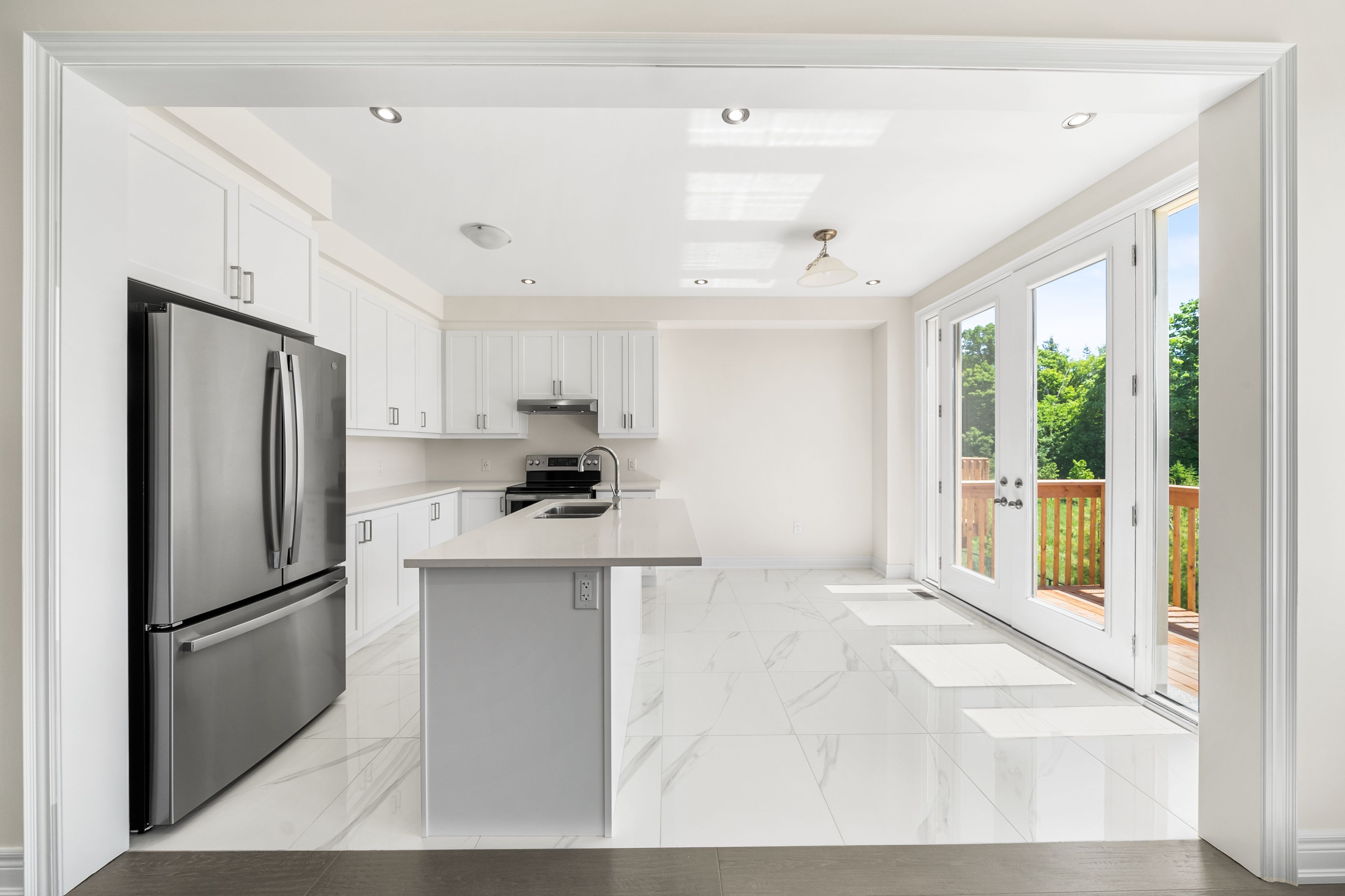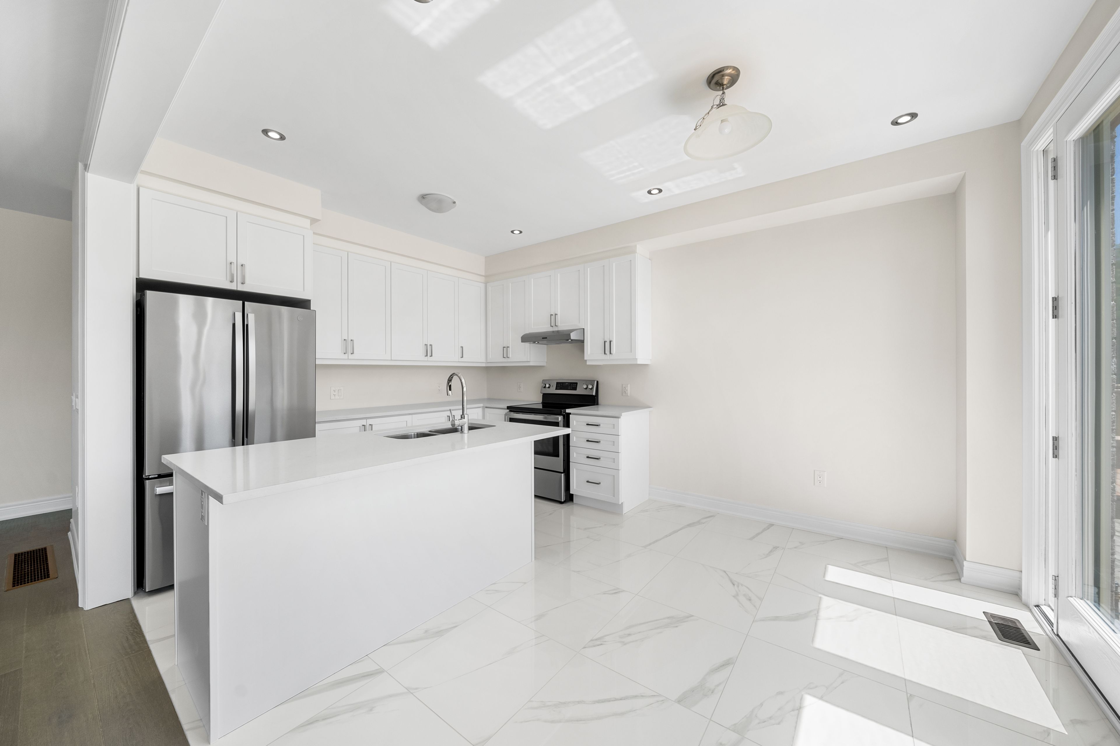 • Hardwood floors and pot lights create a modern feel.