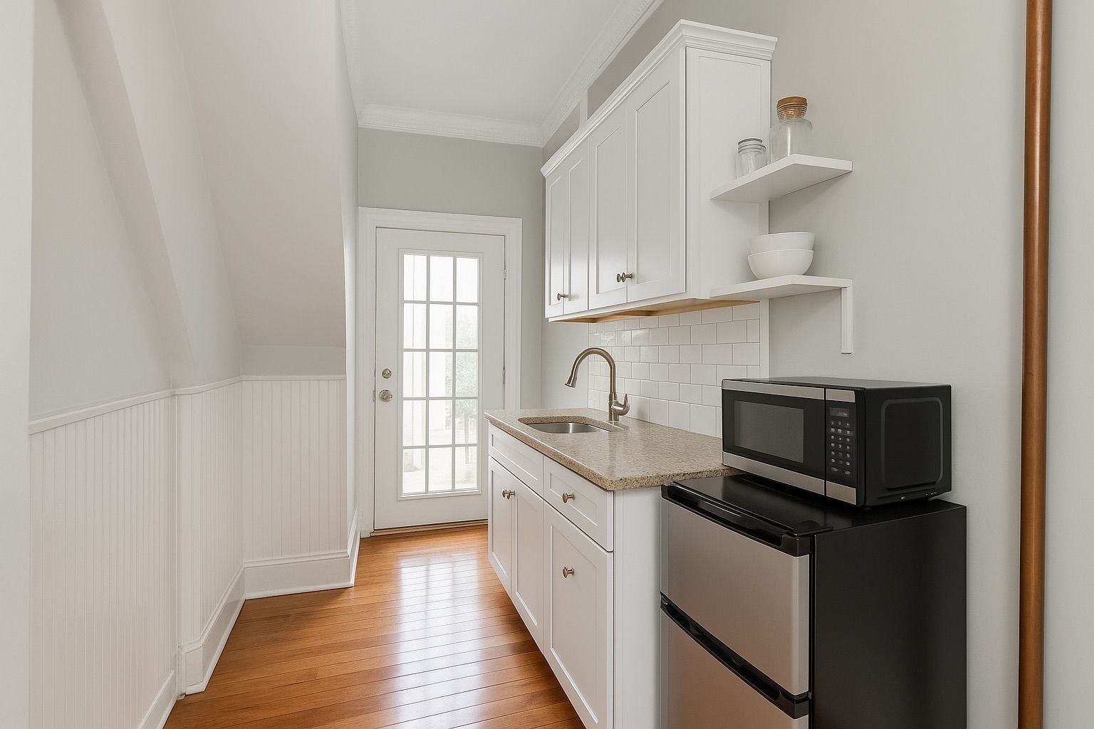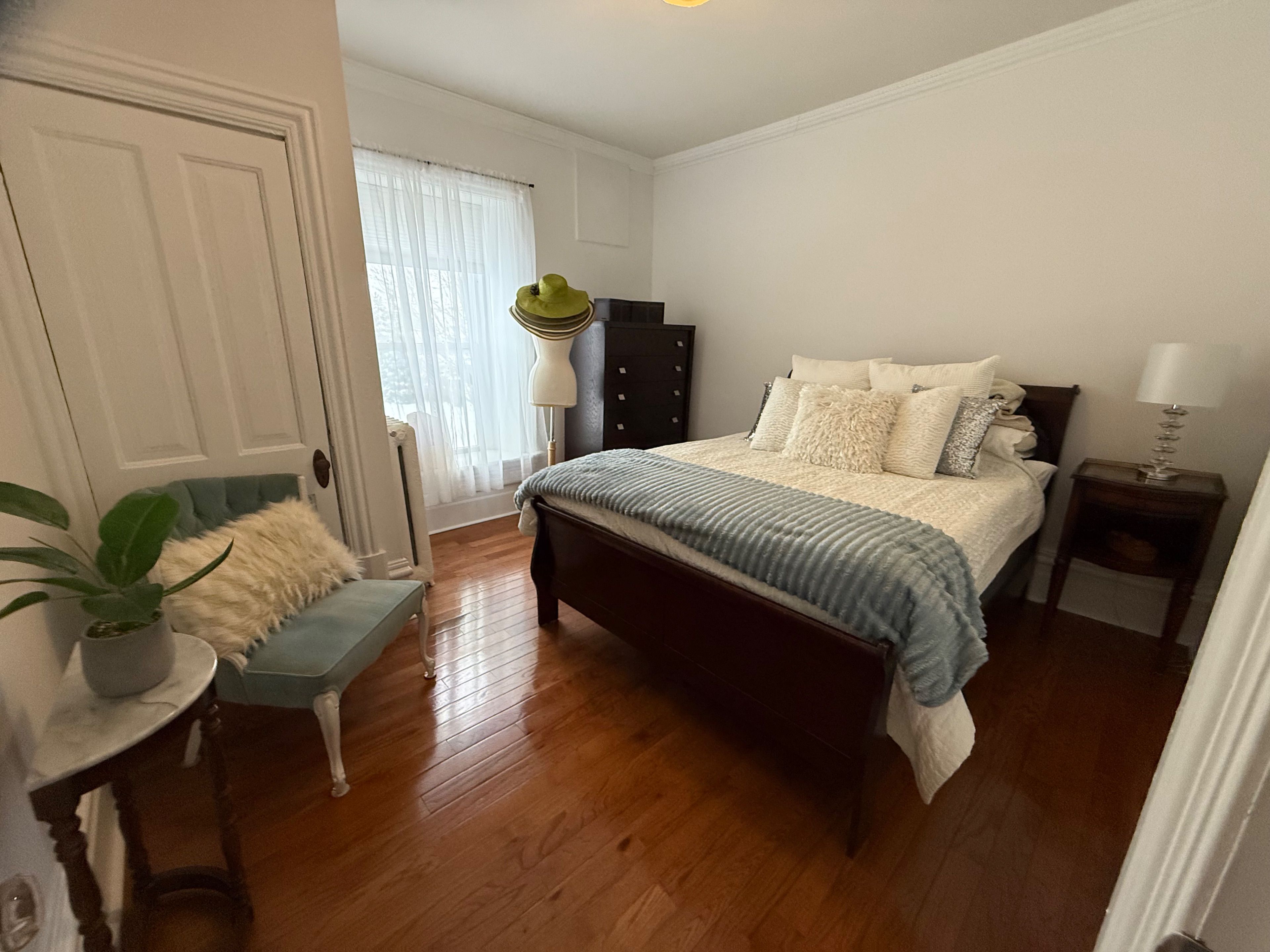 Executive suite is located in arthur. This elegant and thoughtfully appointed 2-bedroom, 2-bathroom executive rental offers a refined living experience, blending timeless character with modern comfort. From the moment you enter, you are welcomed by warm hardwood flooring, high ceilings, and beautiful architectural details that create a sense of sophistication and space throughout. The combined living and dining area is bright and inviting, offering an ideal layout for both everyday living and entertaining. Large windows allow for abundant natural light, while tasteful finishes and furnishings enhance the home's upscale feel. The kitchen is both functional and stylish, featuring crisp white cabinetry, open shelving, quality counter-tops, and essential appliances-perfectly suited for executive or professional tenants. The two well-proportioned bedrooms provide comfortable and private retreats, each designed with calm, neutral tones and ample storage. Both bathrooms are impeccably finished. One features a sleek glass-enclosed shower with modern fixtures, while the second offers a stunning freestanding soaker-tub, creating a spa-like atmosphere ideal for relaxation. Vintage-inspired elements are seamlessly paired with updated finishes for a timeless, elevated aesthetic. Additional highlights include a charming and welcoming entryway, classic stair detailing, and thoughtfully preserved character throughout the home. One parking space is included for added convenience. Offering flexibility for the right tenant. Utilities are extra. Pet may be considered on a negotiable basis. An exceptional opportunity for tenants seeking a luxury executive rental with warmth, character, and comfort in a beautifully maintained residence.