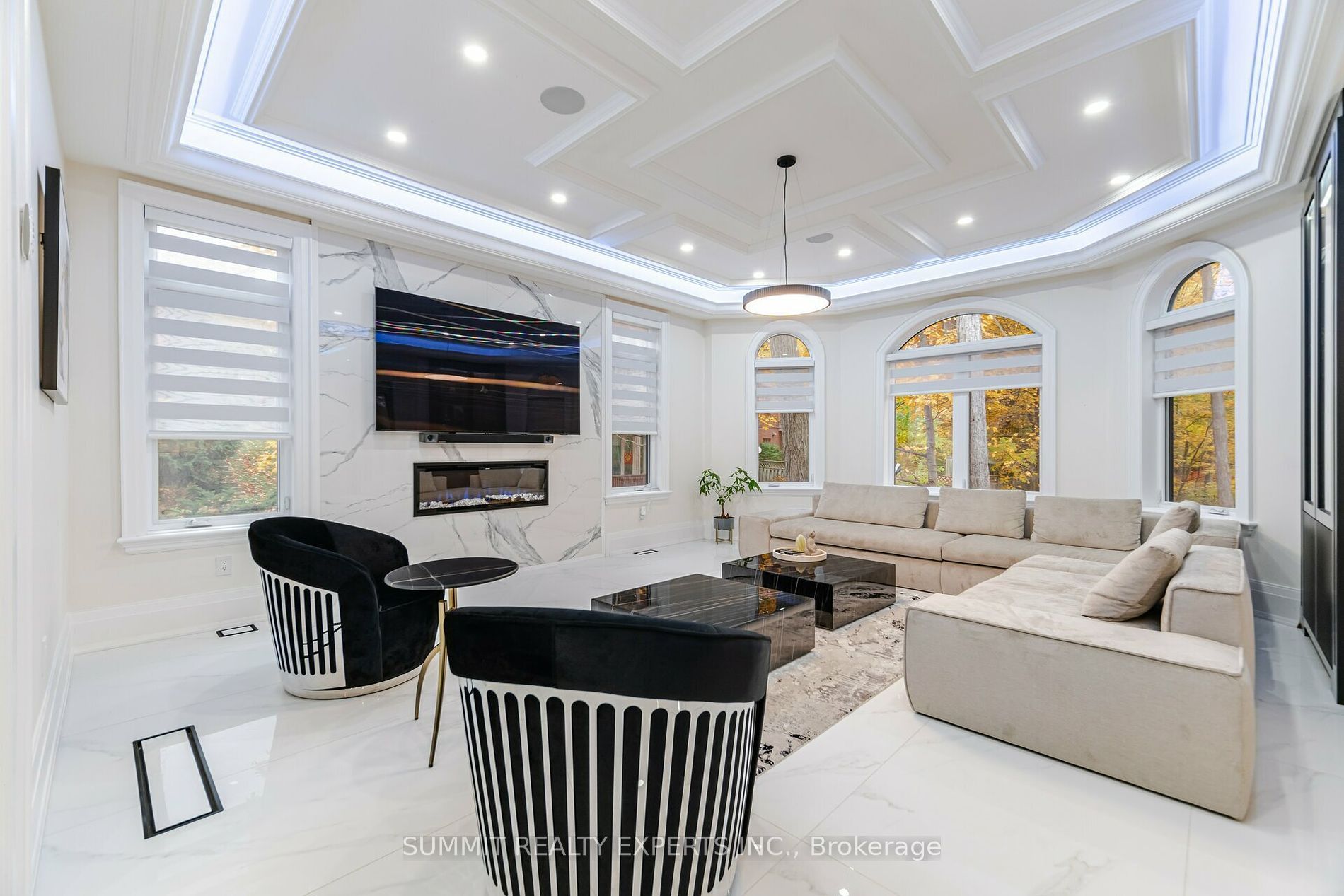 • Entertainment-friendly features including a home theatre, fireplaces, and sauna.