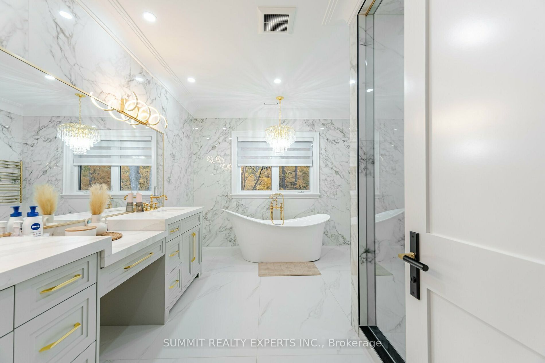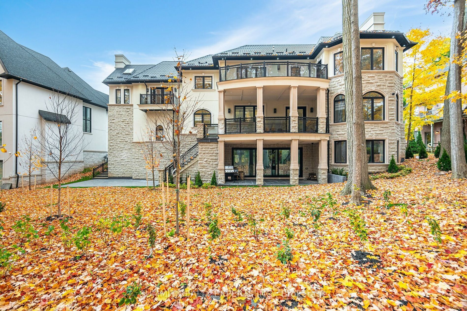 This magnificent residence boasts 8,000 square feet of opulent living space on an impressive 97. 5 ft. Wide lot with a ravine backdrop, mature trees, and a walkout basement. Designed with an indiana limestone and stucco exterior complemented by a durable metal roof, the home features a three-car garage with roughed-in wiring for an electric car charger. Inside, a wealth of luxurious amenities awaits, including a control-4 fully automated smart home system, heated floors adorned with exquisite 32"x64" porcelain tiles on the main level and basement, and premium toto toilets in most washrooms, complete with gold-plated rubinet and palazzani fixtures. The chef's kitchen shines with cambria countertops, built-in sub-zero and wolf appliances, and a meile coffee machine. Entertainment and relaxation are elevated with three fireplaces, a professionally built home theatre with recliners, and two washrooms featuring built-in steamers and a large sauna with 10 ft. Ceilings on the main floor and basement, tray and cathedral ceilings on the upper floor, a 400-amp electric panel, and high-end light fixtures throughout, this fully climate-controlled home equipped with two furnaces, two ac units, and a central vacuum embodies unparalleled sophistication and comfort. Don't forget to check professionally designed & built elevator in the house.