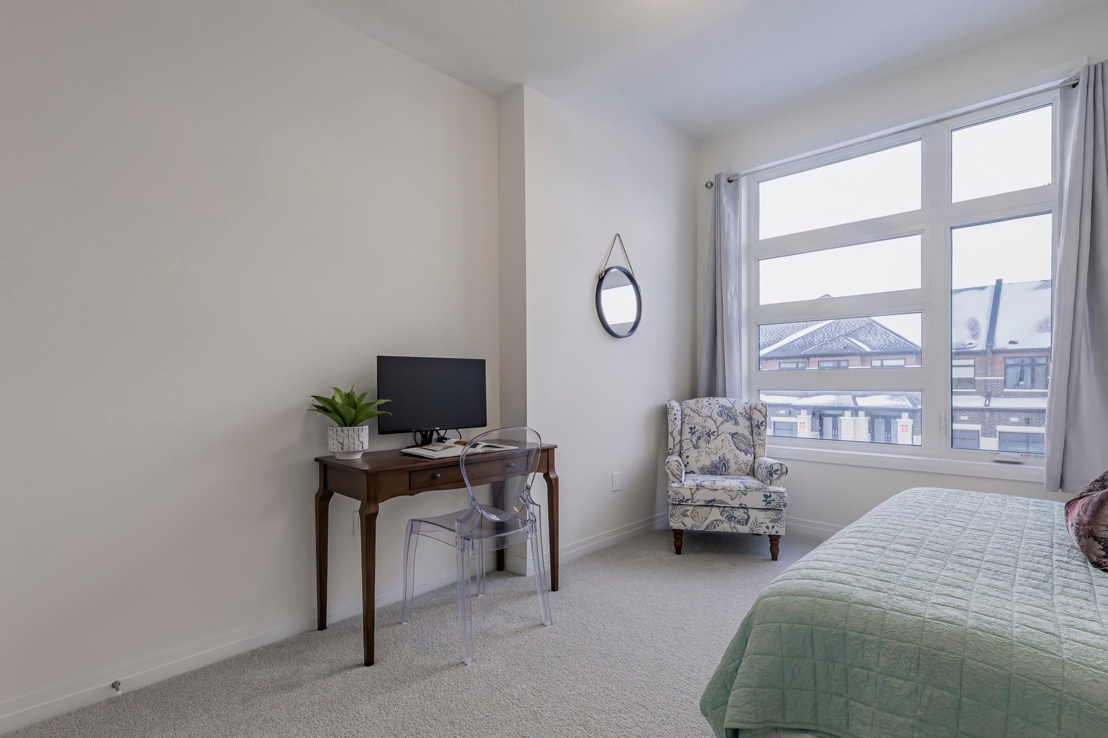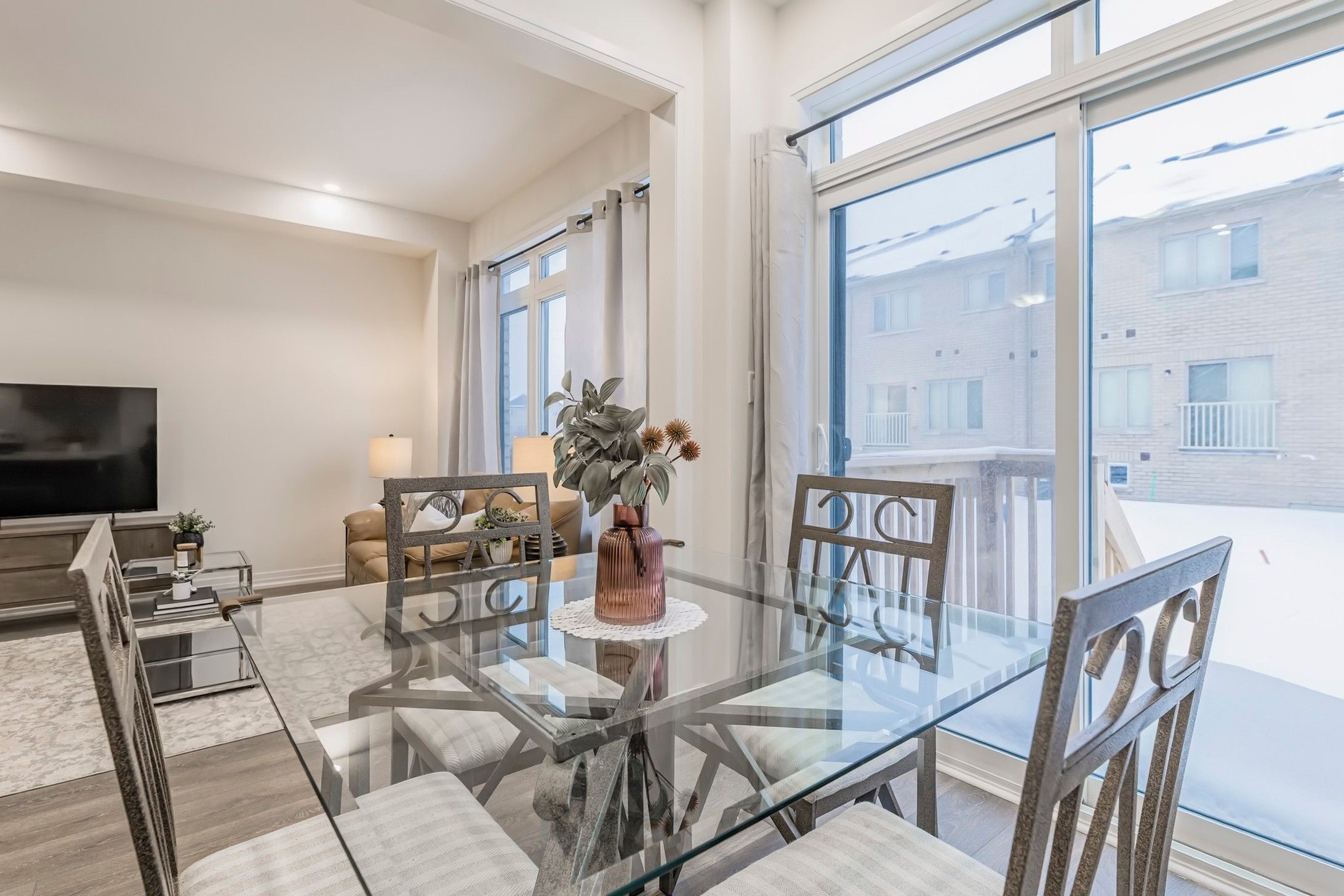 Welcome to this modern 1-year-new townhome by opus homes! Approximately 1,610 sq. Ft. Of bright, modern living space designed for comfort and style. Beautifully maintained home features a 8-ft front entry door that welcomes you into a bright & spacious home. Featuring a contemporary kitchen with upgraded hanstone countertops, a center island, and quality finishes throughout. The open-concept layout is enhanced by 9-ft ceilings throughout the entire home, pot lights on the main floor, and quality laminate flooring, creating a bright and welcoming atmosphere. The generously sized bedrooms offer plenty of space for the whole family. The primary suite features a walk-in closet and a 5-piece ensuite. Additional highlights include a spacious garage, modern design, and like-new condition. Located close to scenic walking trails and the beautiful whitevale golf club, offering great outdoor recreation just minutes away. A perfect opportunity for families or professionals seeking modern, move-in-ready living in a desirable community.
