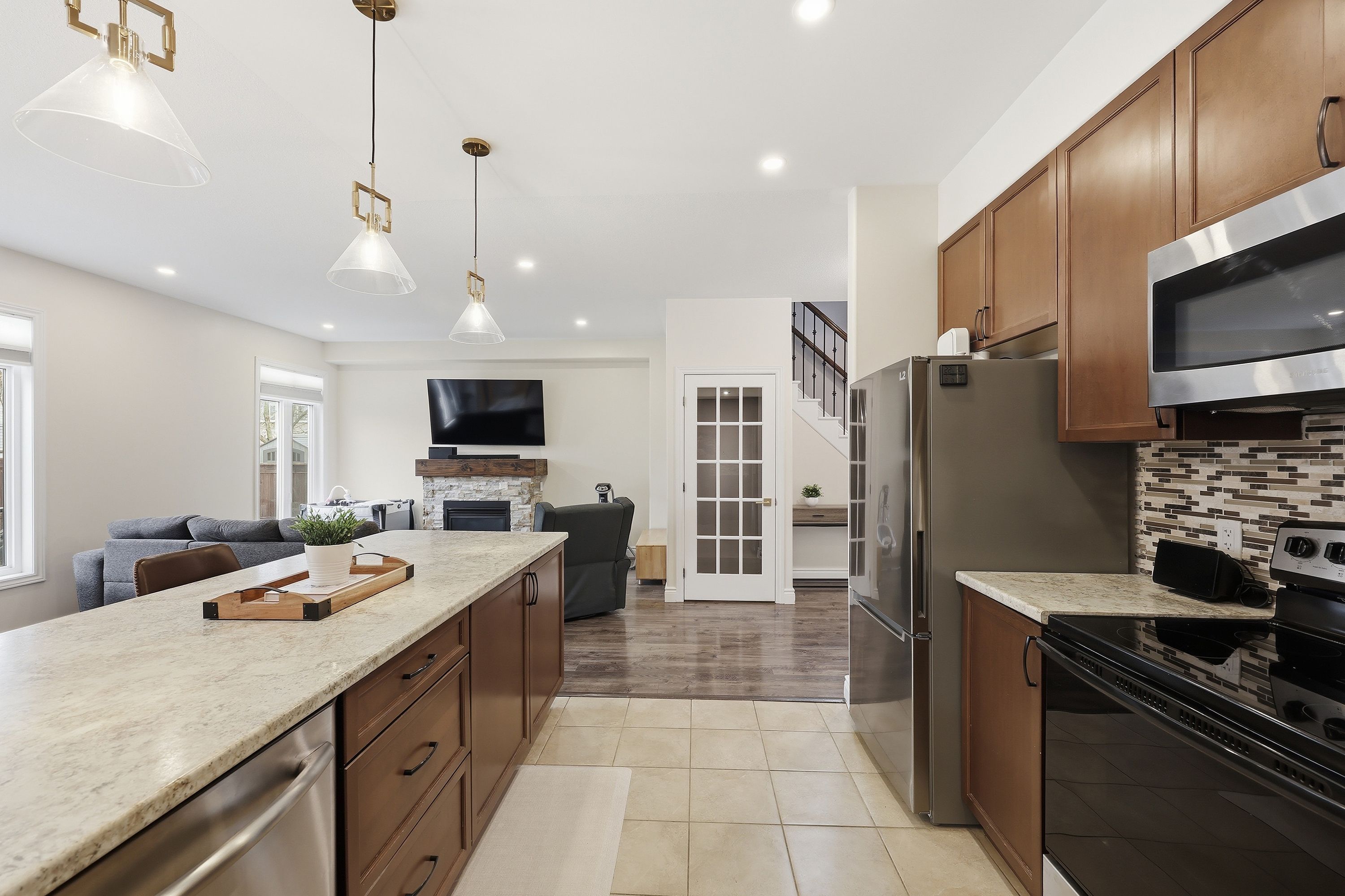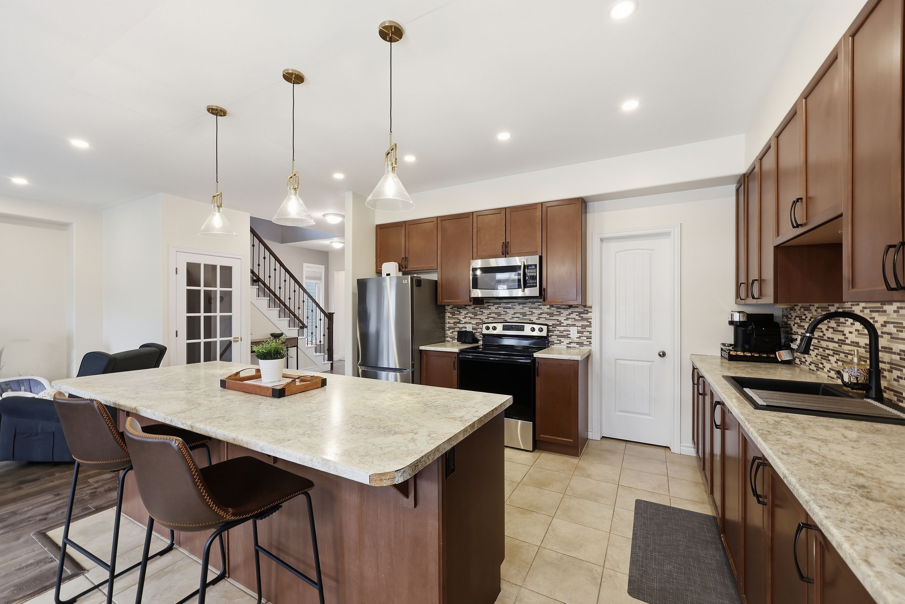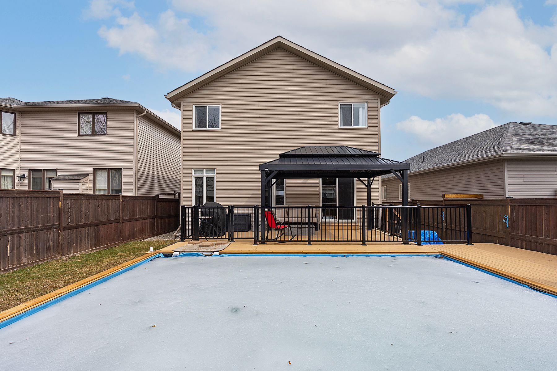 Welcome home to one of kingston's most desirable west-end neighbourhoods, where convenience, community, and modern living come together. This two-storey home offers a functional layout with 3+1 bedrooms and 3. 5 bathrooms. The main level features a bright, open-concept design, perfect for both everyday living and entertaining. The kitchen, dining, and living areas flow seamlessly together, anchored by a cozy natural gas fireplace in the family room, along with a convenient two-piece bathroom. Upstairs, you'll find generously sized bedrooms, two full bathrooms, and convenient upper-level laundry, including a spacious primary suite featuring an electric fireplace, a 5-piece ensuite with a soaker tub, and a large walk-in closet. The lower level adds valuable living space with a finished rec room, an additional bedroom, and a full bathroom-ideal for guests, a home office, or extended family. Step outside to your private backyard oasis, complete with a spacious deck and an on-ground pool, perfect for summer entertaining or unwinding at the end of the day. Located close to schools, parks, shopping, and recreation, this home offers the perfect balance of lifestyle and location