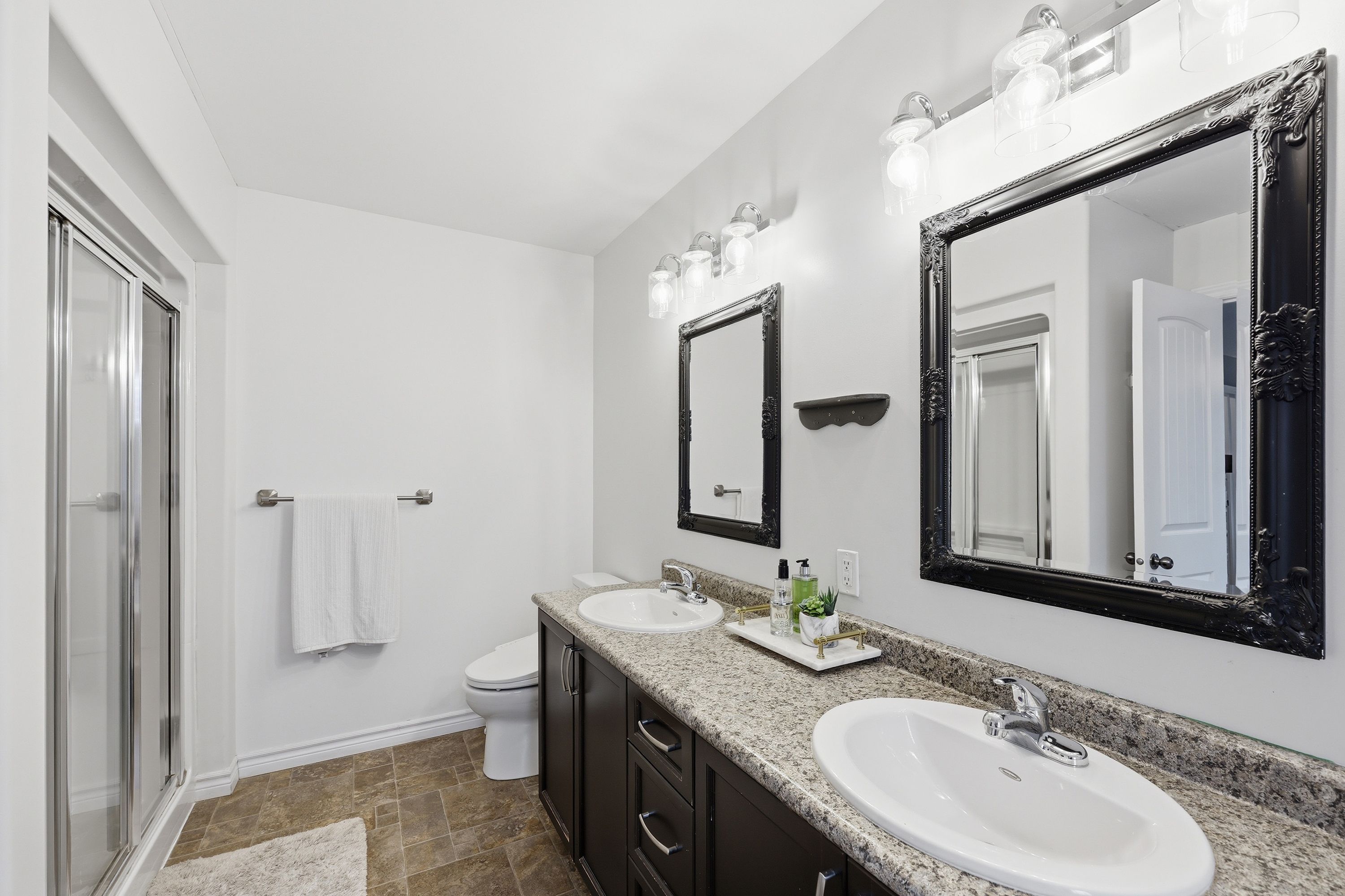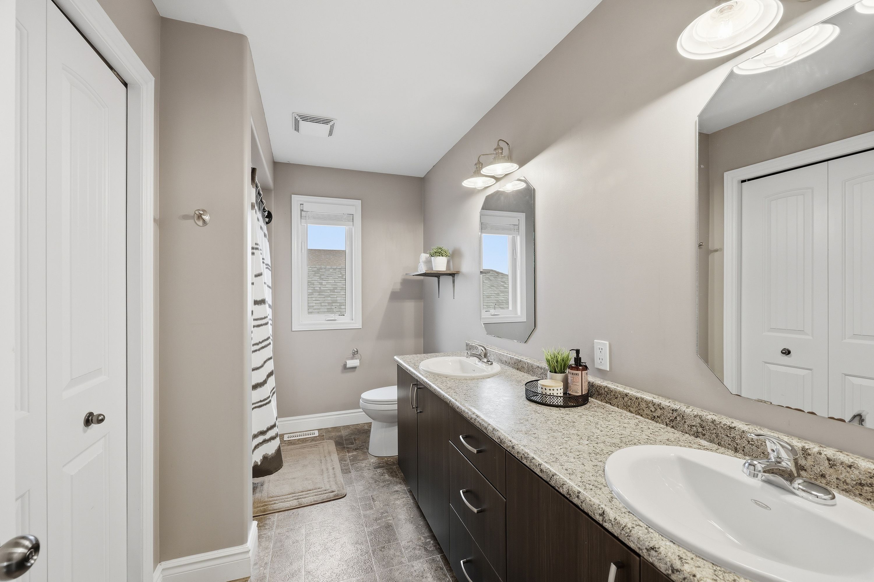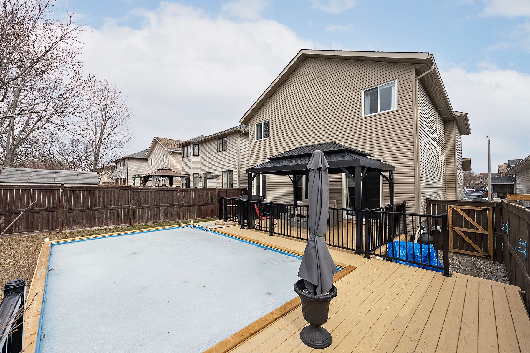 Welcome home to one of kingston's most desirable west-end neighbourhoods, where convenience, community, and modern living come together. This two-storey home offers a functional layout with 3+1 bedrooms and 3. 5 bathrooms. The main level features a bright, open-concept design, perfect for both everyday living and entertaining. The kitchen, dining, and living areas flow seamlessly together, anchored by a cozy natural gas fireplace in the family room, along with a convenient two-piece bathroom. Upstairs, you'll find generously sized bedrooms, two full bathrooms, and convenient upper-level laundry, including a spacious primary suite featuring an electric fireplace, a 5-piece ensuite with a soaker tub, and a large walk-in closet. The lower level adds valuable living space with a finished rec room, an additional bedroom, and a full bathroom-ideal for guests, a home office, or extended family. Step outside to your private backyard oasis, complete with a spacious deck and an on-ground pool, perfect for summer entertaining or unwinding at the end of the day. Located close to schools, parks, shopping, and recreation, this home offers the perfect balance of lifestyle and location