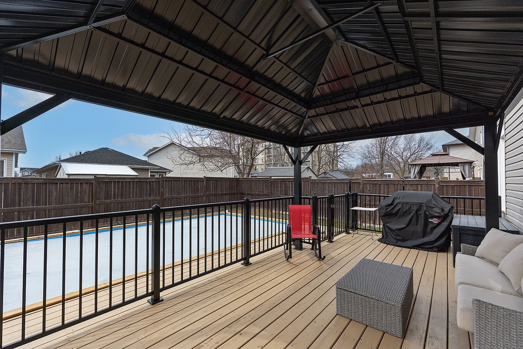 • Private backyard oasis featuring a spacious deck and on-ground pool.