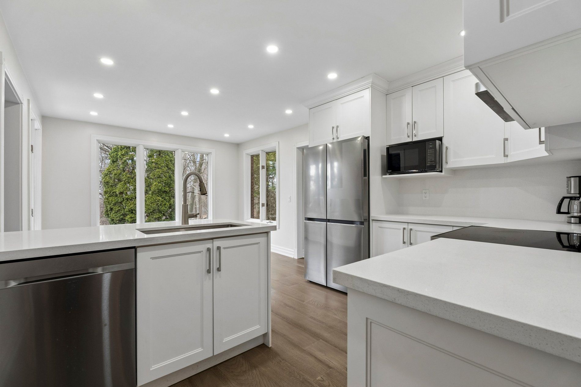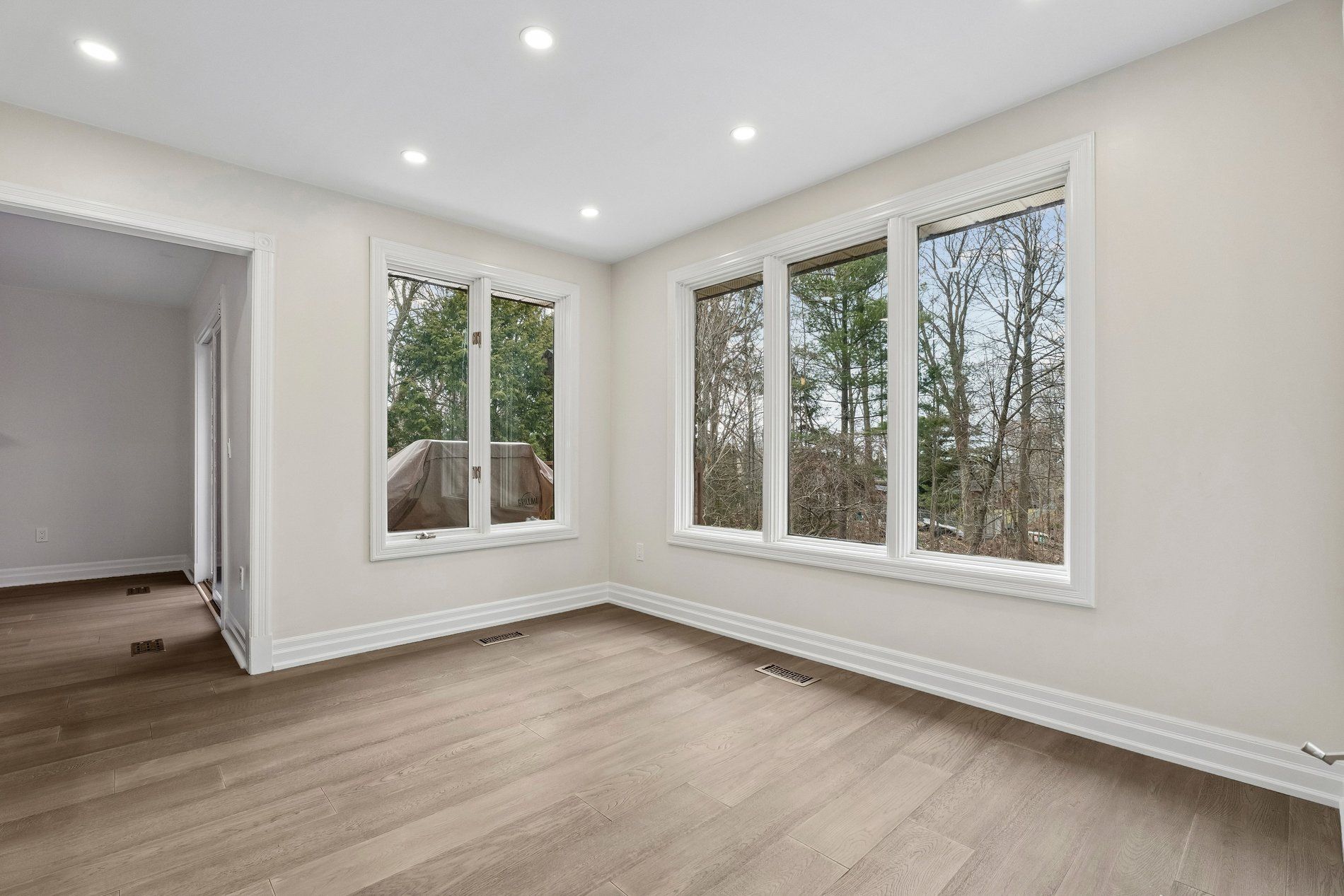 A rare opportunity to own a spectacular ravine property offering ultimate privacy and natural beauty. This exceptional all-brick residence is situated on an extra-wide 62' lot and backs onto a tranquil ravine that wraps around both the rear and side yard - a truly unique and picturesque setting. Designed with quality craftsmanship and pride of ownership, the home enjoys highly desirable southwest and east exposure, filling the interior with abundant natural light throughout the day and showcasing stunning ravine views from nearly every window. The home has been beautifully updated and upgraded, featuring new hardwood flooring and a newly renovated kitchen and bathrooms. The oversized chef's kitchen is the heart of the home, highlighted by expansive three-sided windows and a spacious breakfast area overlooking the lush ravine landscape. The generous family room with a classic fireplace opens onto a main-level deck - the perfect setting to relax or entertain while enjoying serene ravine views. The true walk-out finished basement with separate entrance offers exceptional versatility and income potential, featuring a sun-filled above-grade bedroom, full kitchen, large recreation room, full bathroom, ample storage, and rough-in for additional laundry. Step outside to a private backyard retreat surrounded by mature trees, offering a peaceful muskoka-like setting in the heart of the city. Additional features include direct garage access with high ceilings, a double driveway, and a beautiful tree-lined street in one of the area's most coveted ravine communities. A truly well-maintained, spacious and sun-filled home offering privacy, nature and lifestyle - rarely available. New hardwood flooring, renovated kitchen & bathroom, inground pool w/ concrete deck backfilled with soil (2019) , roof & furnace (2021) and fridge, stove & dishwasher (2023).