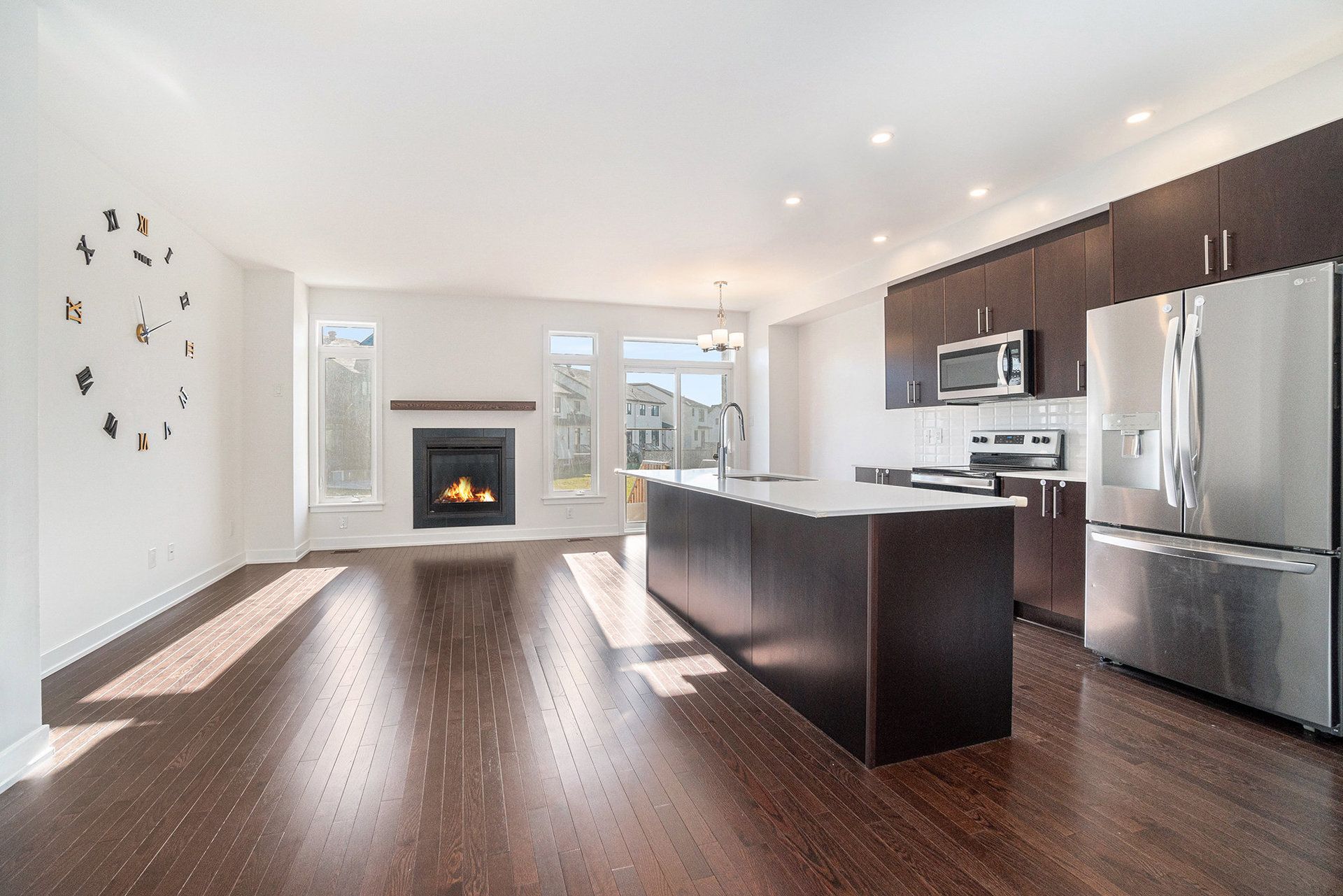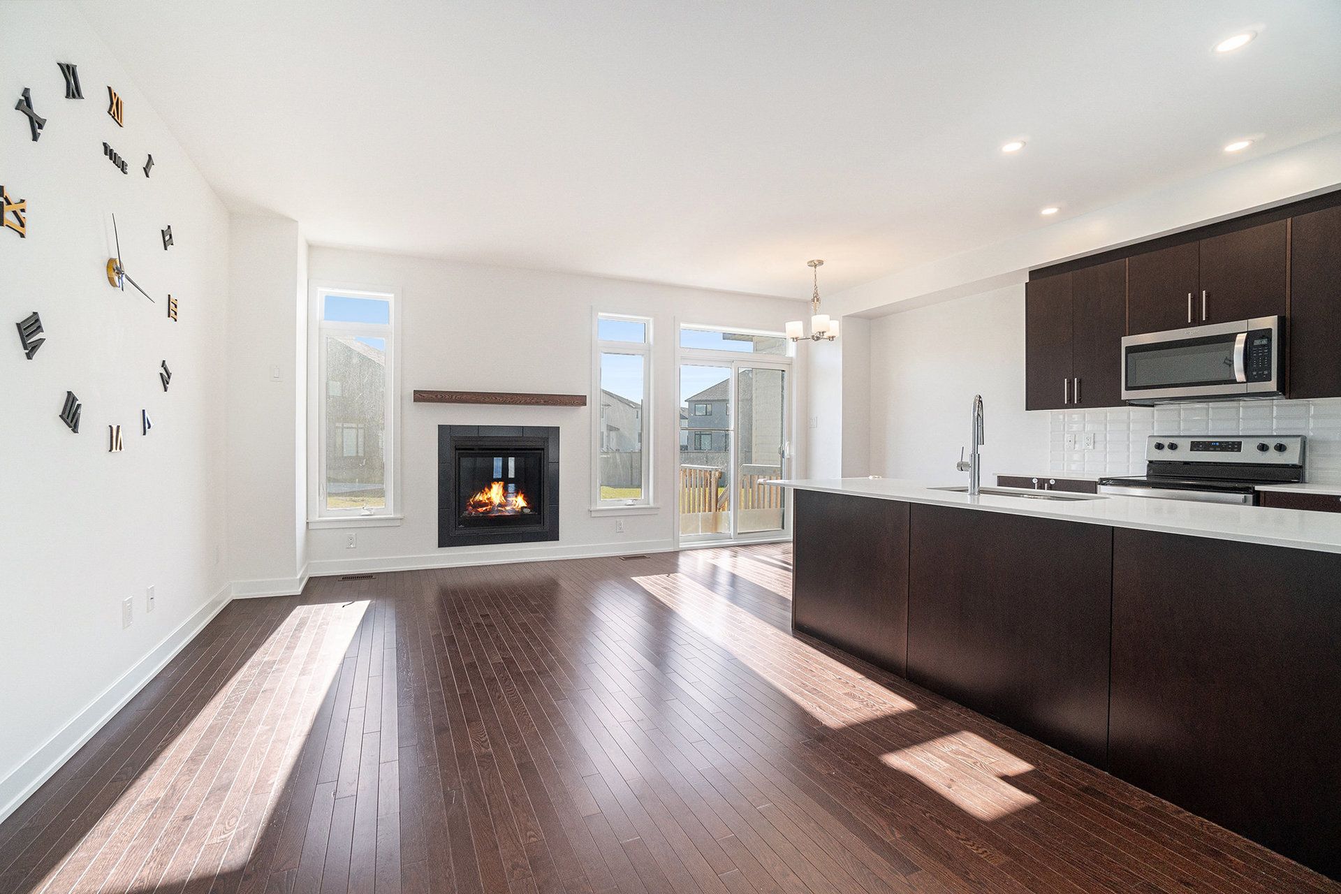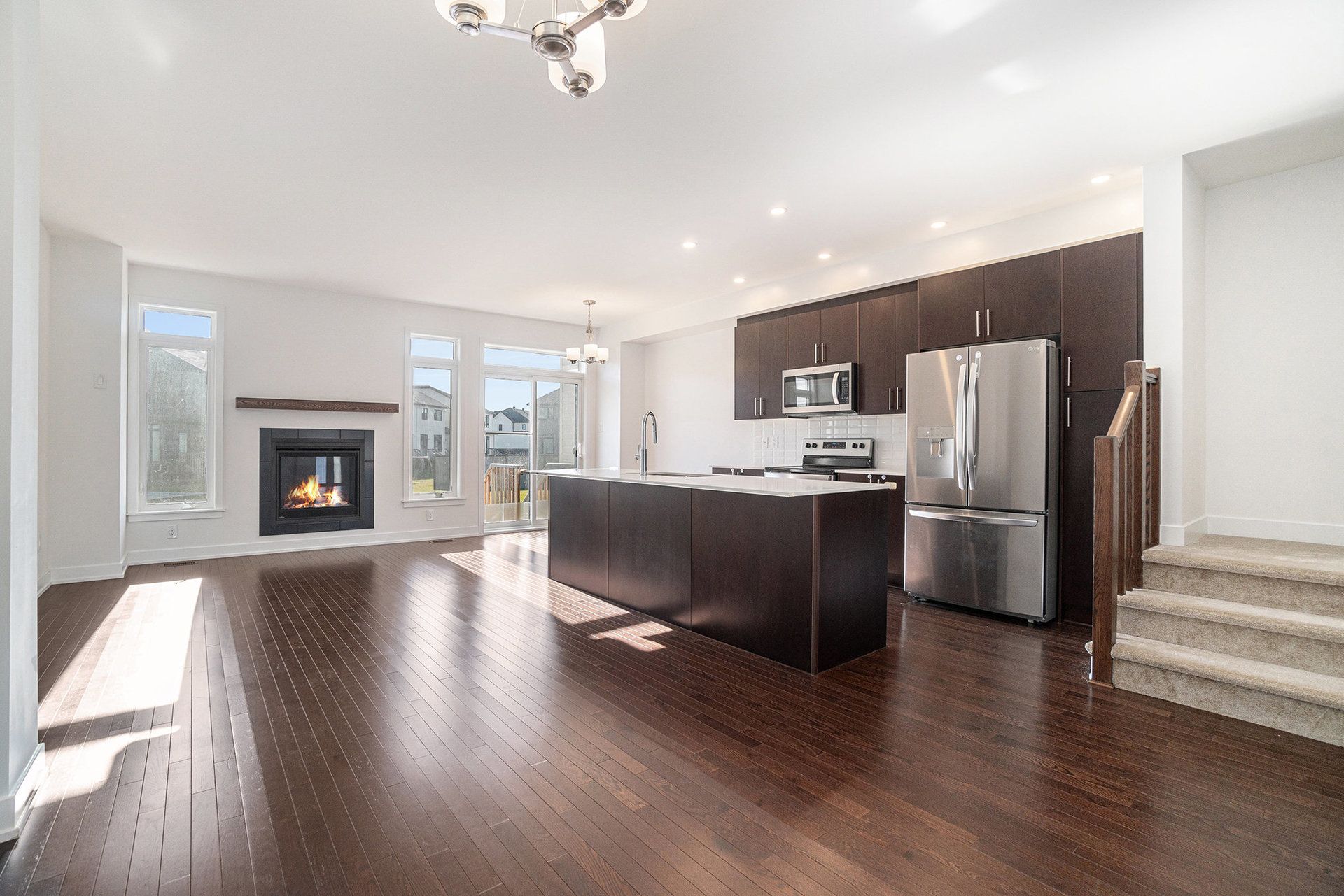 • Bright open-concept main floor with a cozy gas fireplace for relaxing.