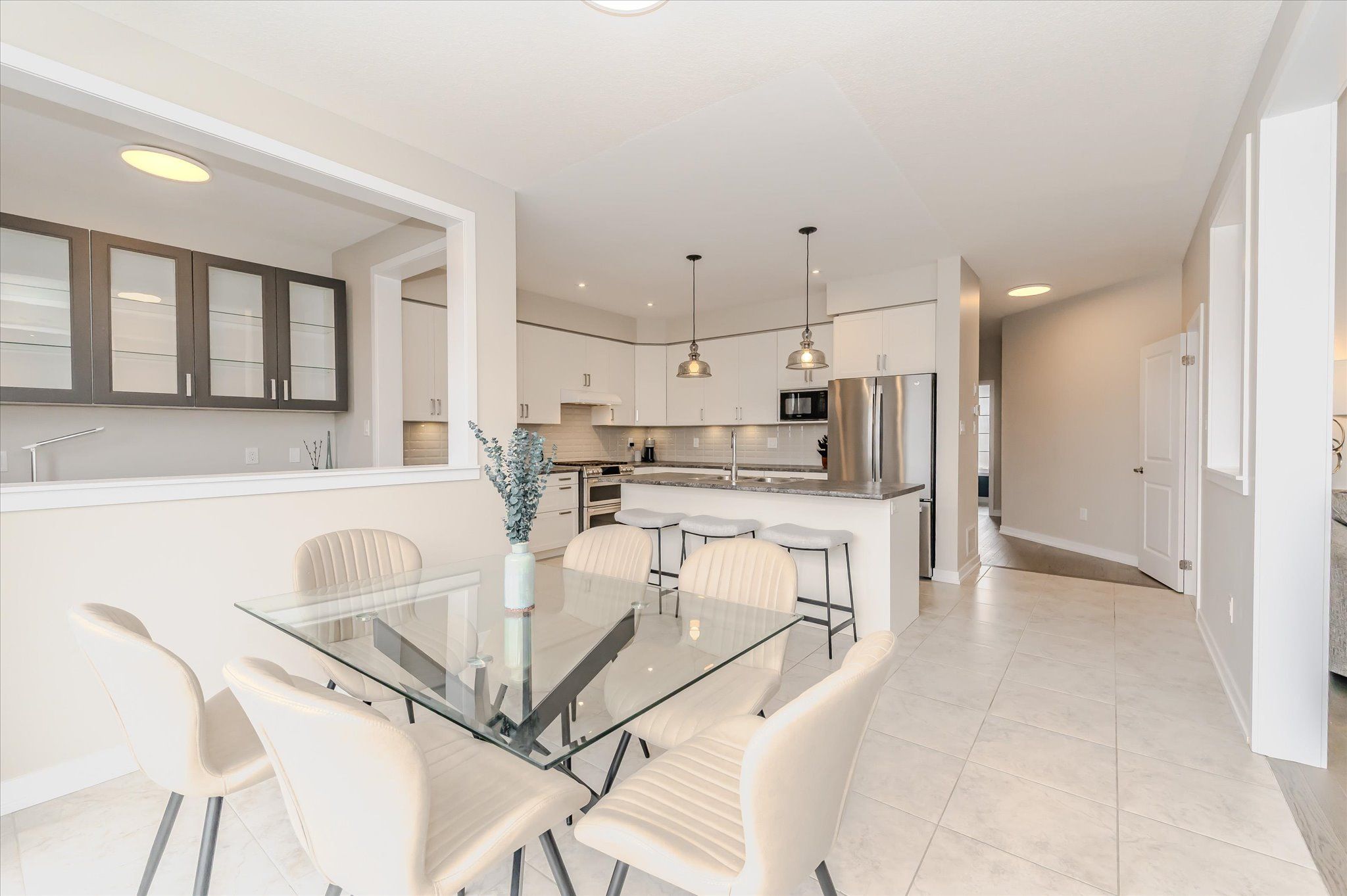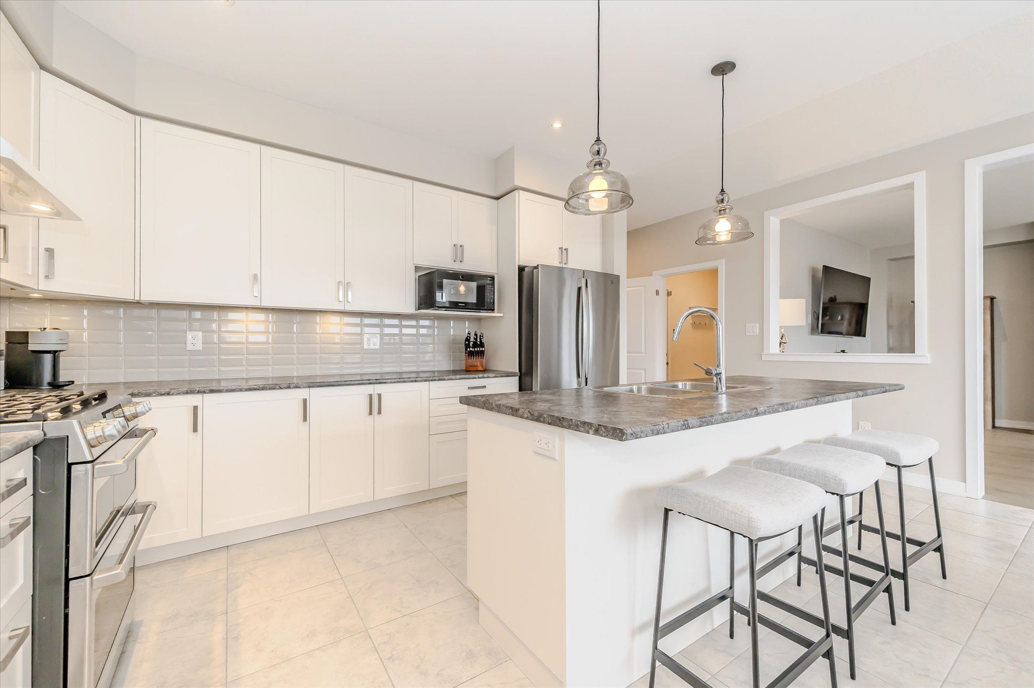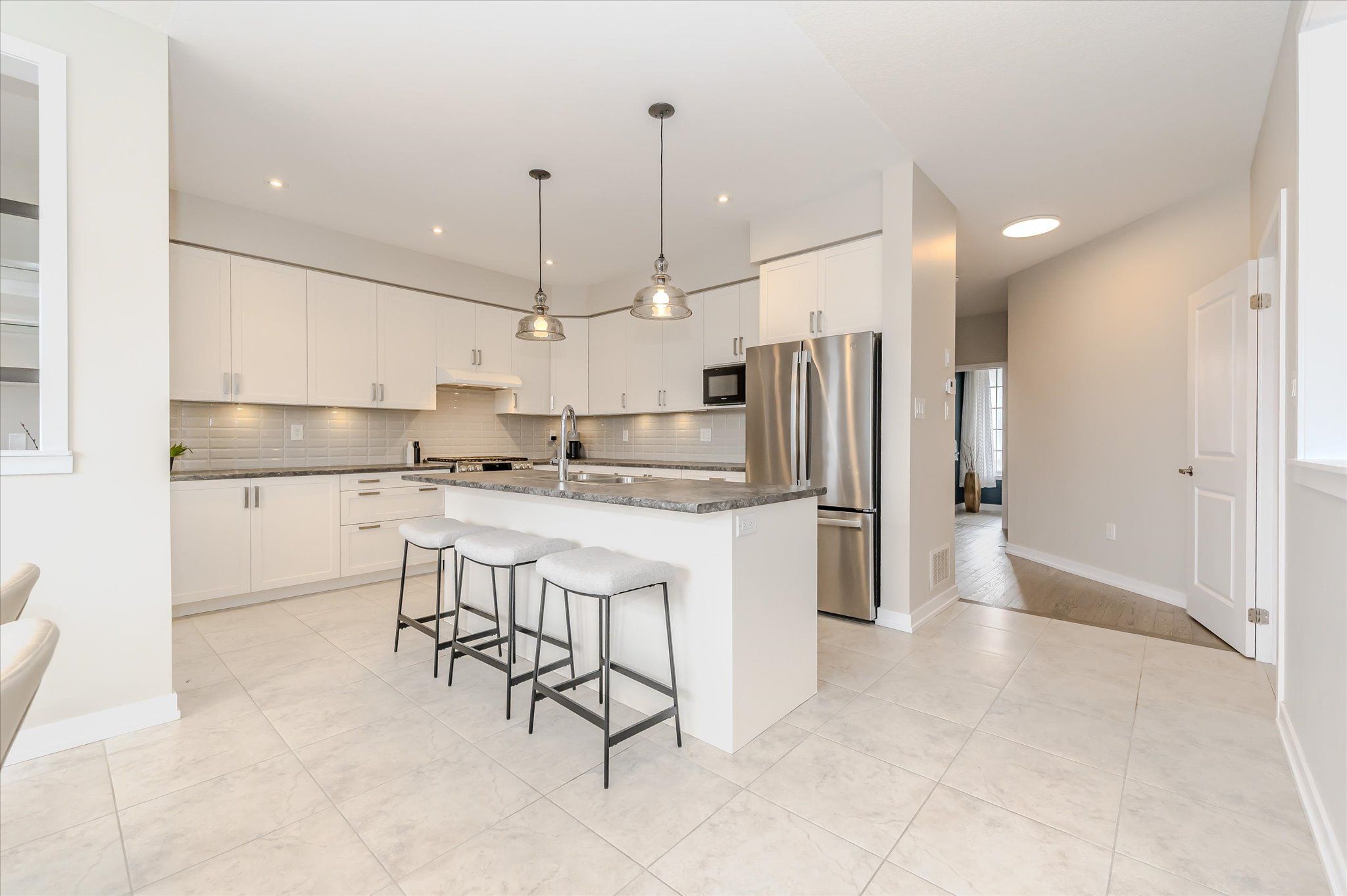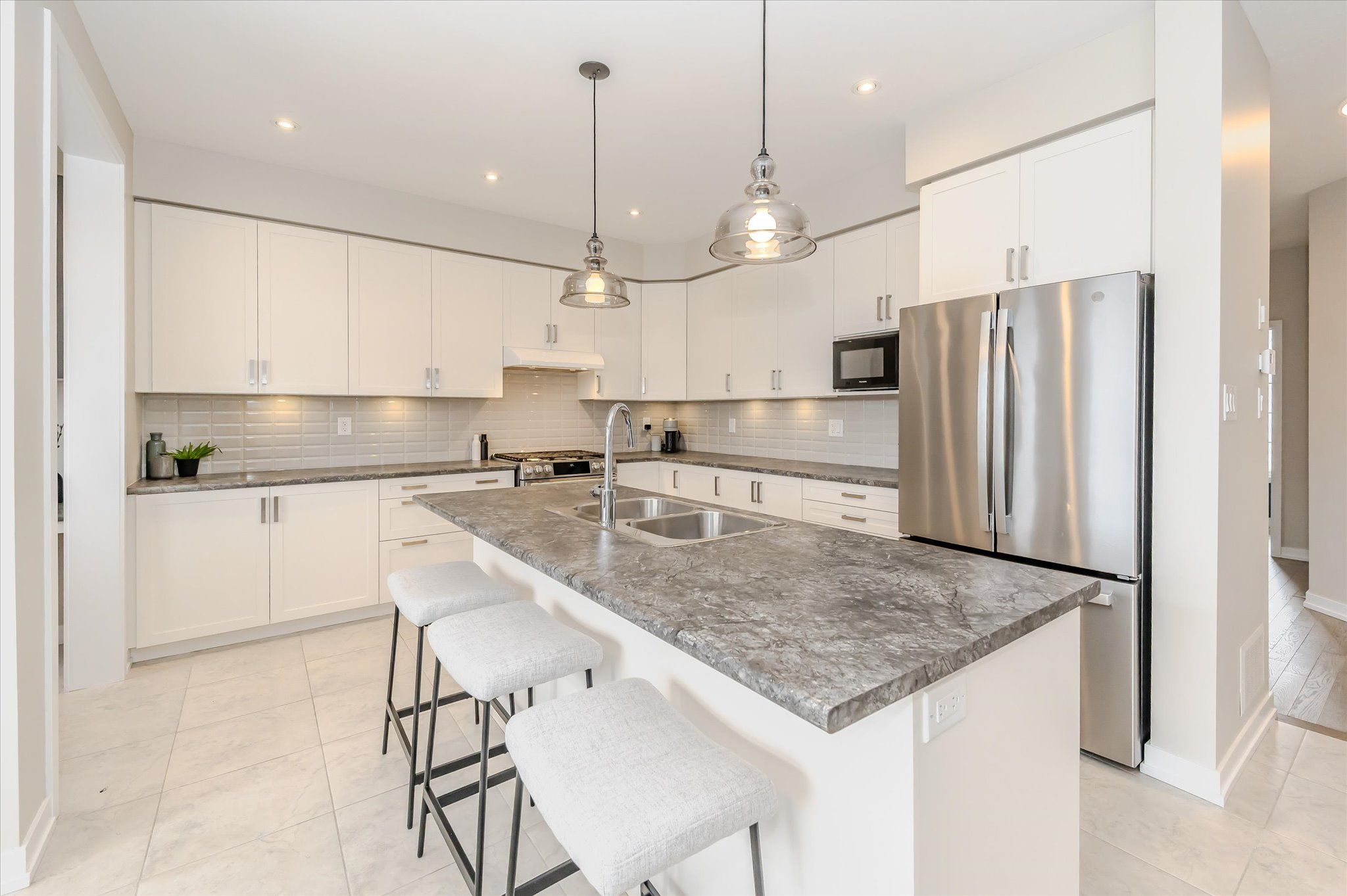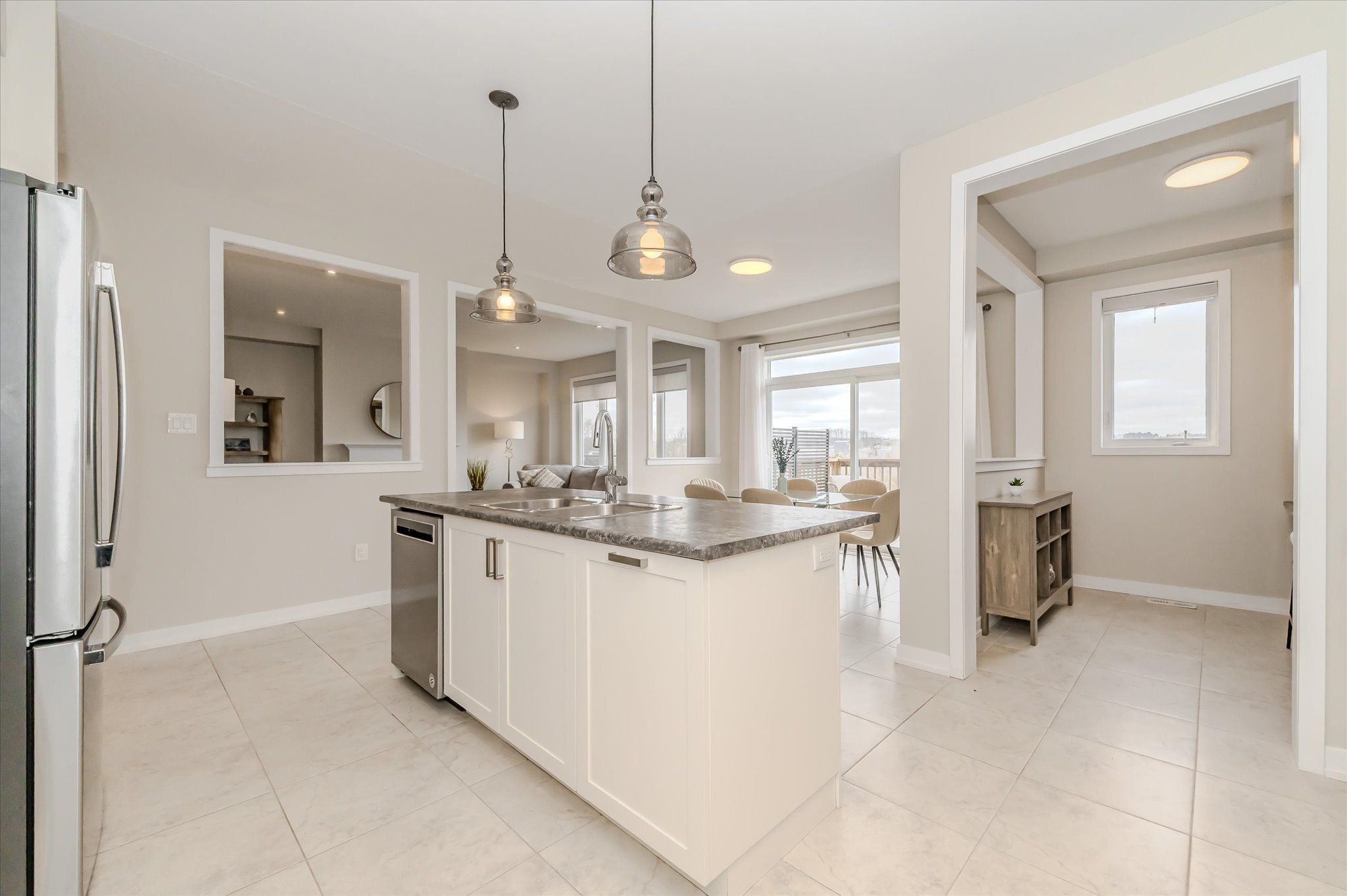 This exceptional family home is nestled in a highly sought-after, newer subdivision where timeless design meets everyday functionality. With lush greenspace, a pond, and the grand river as its backdrop, this residence offers the serenity of nature with the convenience of nearby schools, parks, and scenic walking trails. A welcoming covered front porch sets the stage for what awaits inside- a home that is both spacious and bright, thoughtfully designed with family living in mind. The main level unfolds with a graceful flow, beginning with a formal living room that features hardwood flooring, a gas fireplace, and expansive windows that frame breathtaking views of the natural landscape beyond. The heart of the home is the stunning kitchen, where crisp white cabinetry, modern appliances, and a central island with a breakfast bar create a space that is as beautiful as it is functional. Adjacent to the kitchen, a versatile office nook adds convenience- ideal as a home workspace, additional pantry area, or even a charming coffee bar. The open kitchen and dining arrangement creates a space that is perfect for both casual family meals and entertaining. Sliders lead to a great-sized upper deck, where you can enjoy your morning coffee or evening sunsets with uninterrupted views of the greenspace. A stylish powder room and a practical mudroom with interior access to the double garage complete the main floor. The second level offers 4 spacious bedrooms, including a luxurious primary suite with a large walk-in closet and a 4 piece ensuite boasting a soaker tub and separate glass-enclosed shower. A 4 piece bathroom and upper-level laundry room add ease to the everyday routine. The unspoiled walk-out basement presents endless possibilities, whether you envision a custom recreation space, additional bedrooms, or a private in-law suite. Offering the perfect blend of elegance, comfort, and thoughtful design, this home is a true gem!