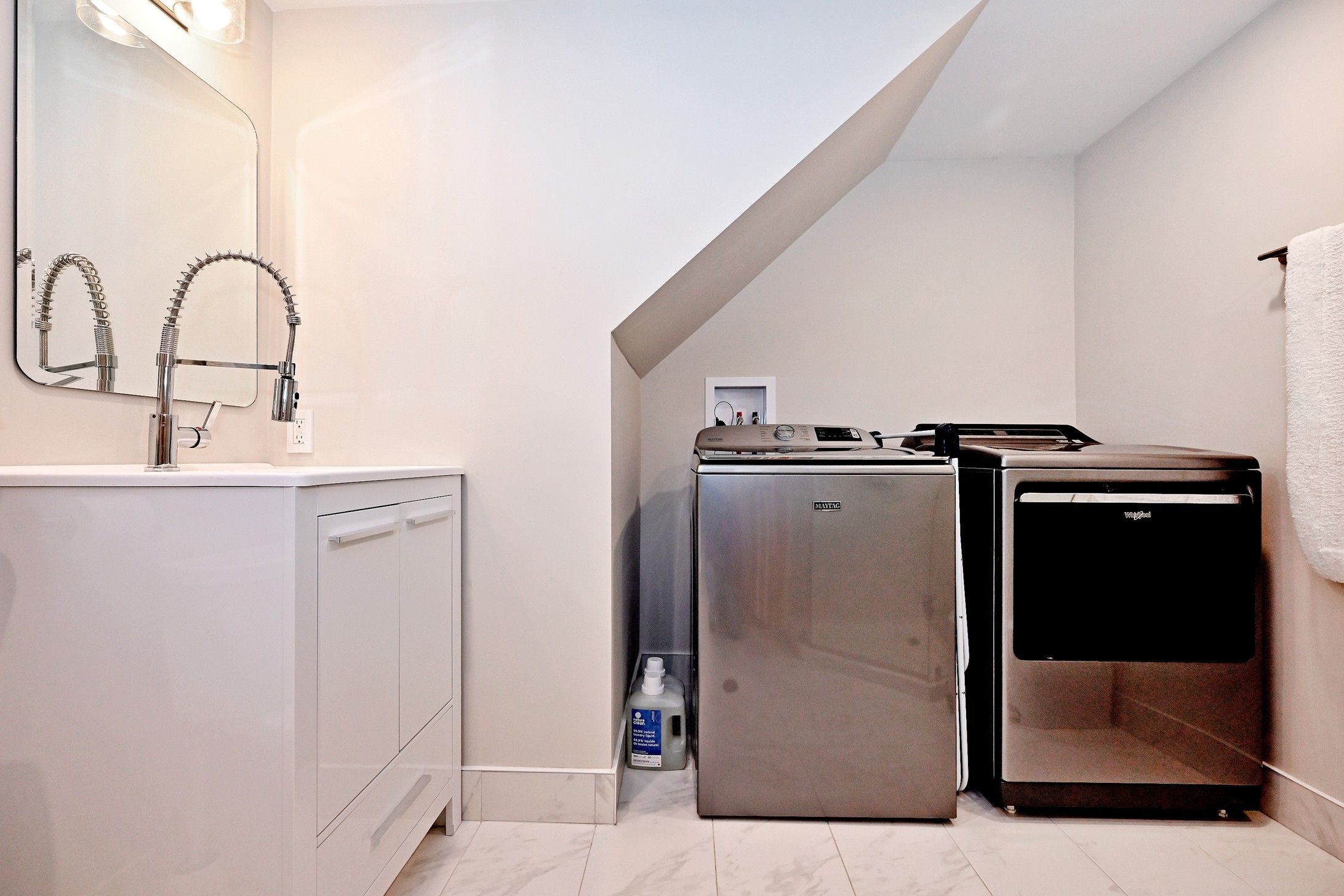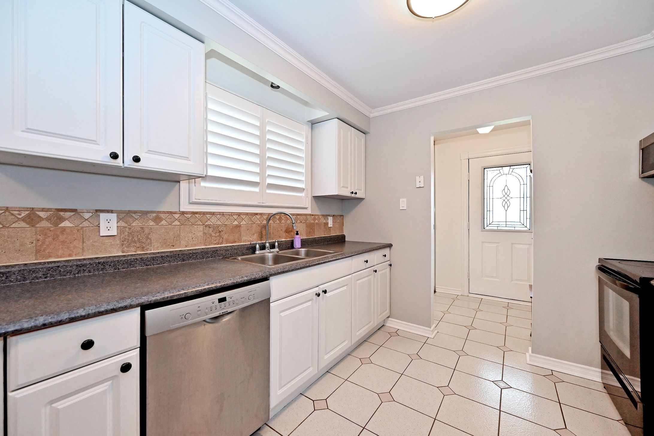 • Modern eat-in kitchen with side entrance, great for in-law potential.