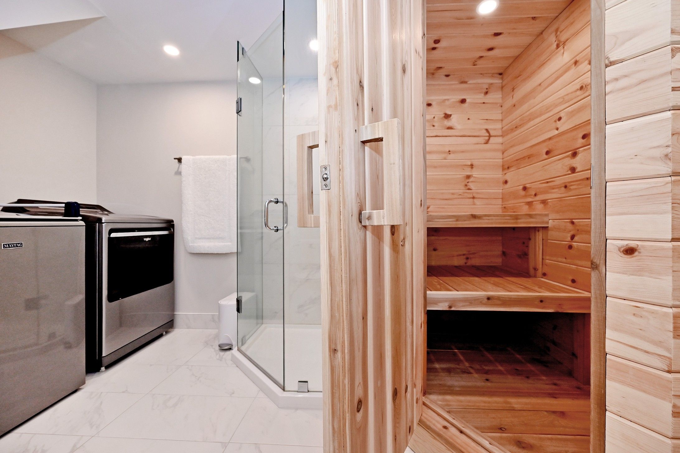 • Professionally finished basement with rec room, sauna, and bathroom.