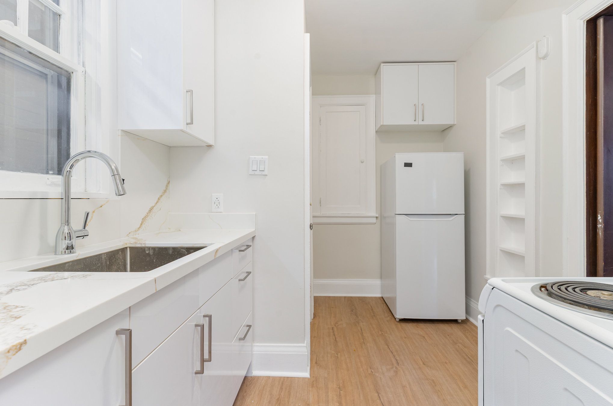 • Fully renovated upper-floor suite with modern kitchen and bathroom.