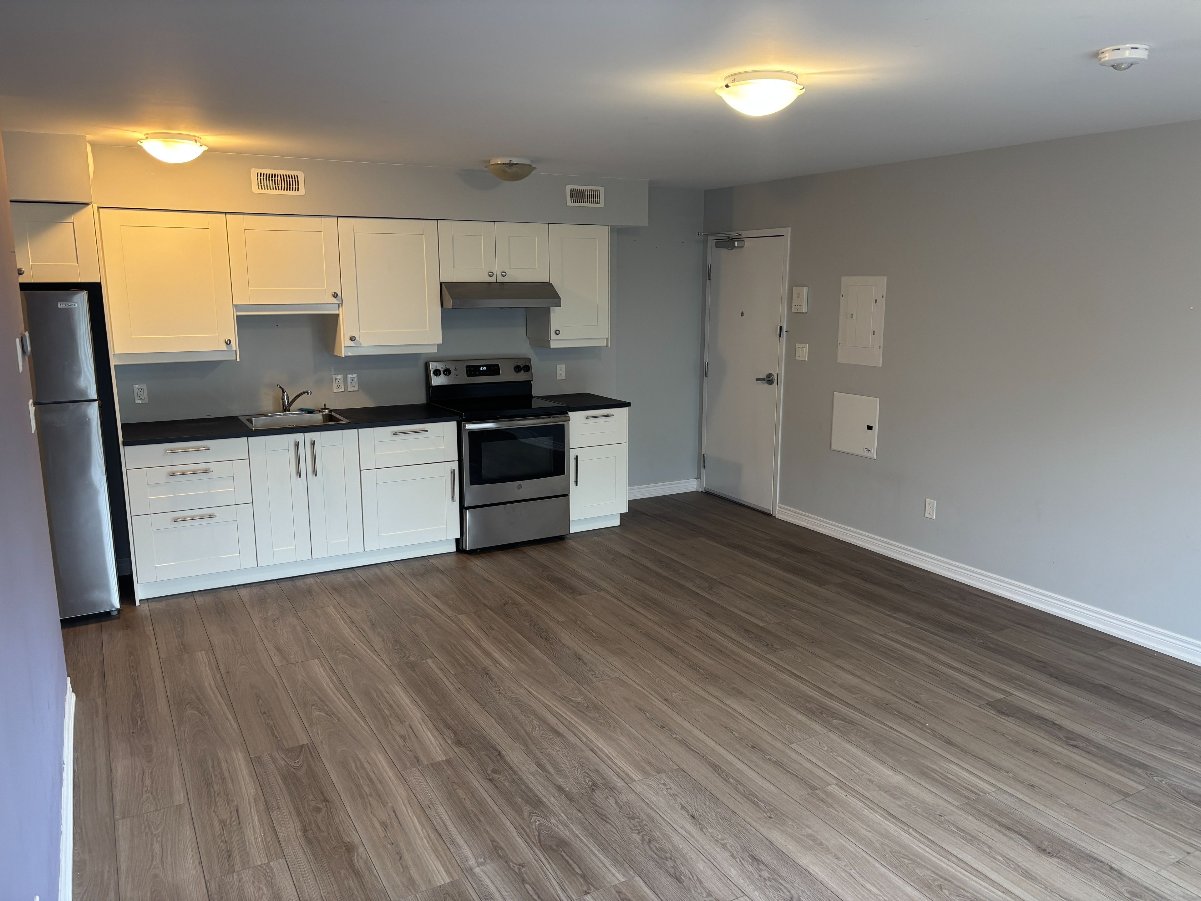 Bright and spacious 1-bedroom unit in a newer, secure building in the heart of downtown stevensville. The open-concept great room offers plenty of versatility, with the kitchen set along the far wall-perfect for comfortable living, dining, and entertaining. Enjoy the convenience of in-suite laundry, one dedicated parking space, and a basement locker for extra storage. Large windows fill the space with natural light, creating a warm and inviting atmosphere. All within easy walking distance to local shops, restaurants, and everyday amenities.