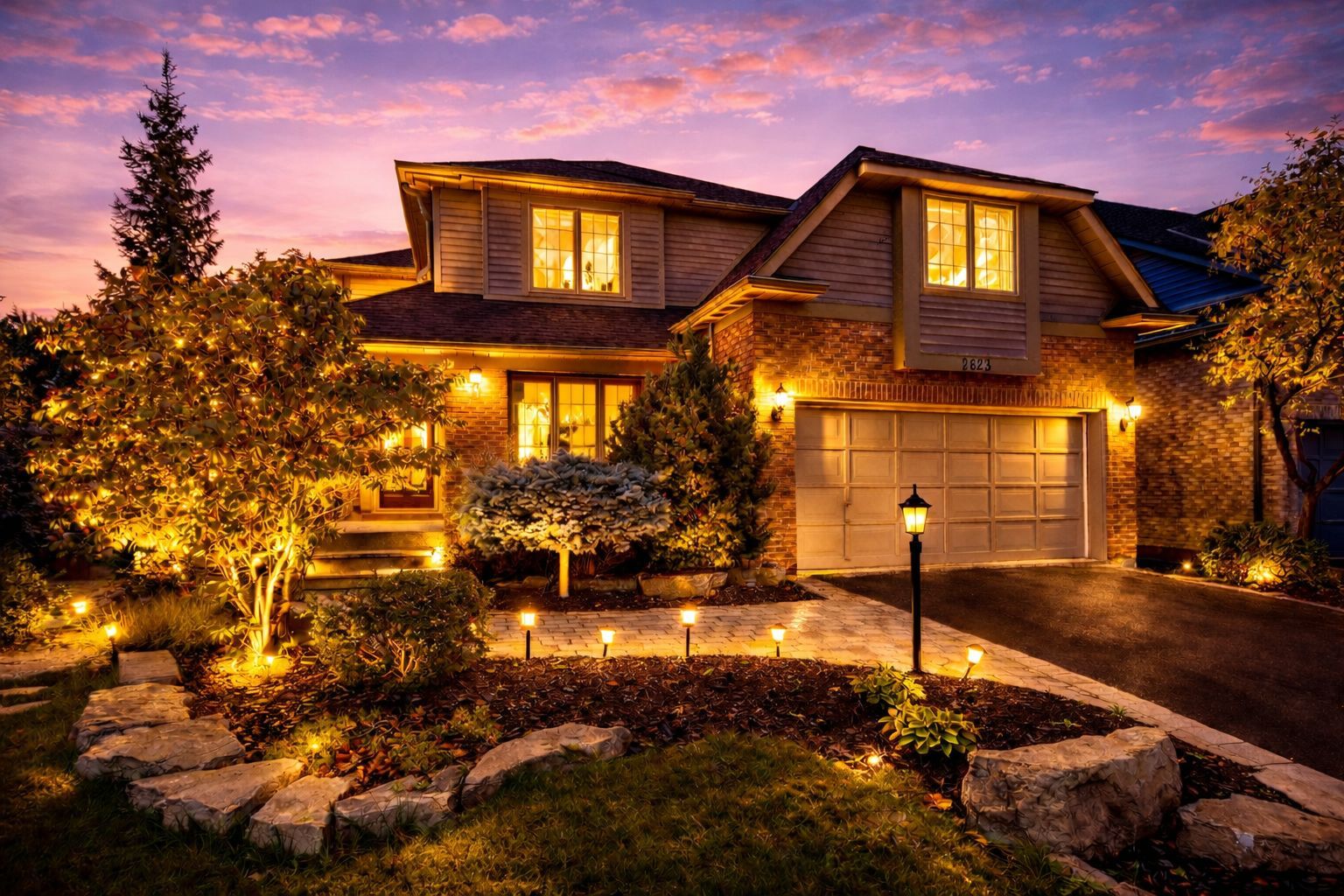 Executive home on a premium court in central erin mills! Welcome to 2623 charlotte crt, a beautifully maintained residence nestled on a quiet cul-de-sac private court in one of mississauga's most desirable communities, offering both privacy and a highly sought-after setting with excellent feng shui. The home features a beautiful covered front porch, creating a warm and welcoming entrance with added privacy from the street. This charming space is perfect for enjoying morning coffee or relaxing in the afternoon sun while overlooking the front yard. Situated on a rare pie-shaped lot, the property also offers a fully landscaped, fenced backyard with a tranquil pond, ideal for outdoor enjoyment and entertaining. Offering approx. 3,000 sq. Ft., the home showcases hardwood flooring on the main level, a spacious layout, and a modern kitchen with granite countertops, perfect for family living and entertaining. The sun-filled primary bedroom features a private balcony, while the second floor offers 4 generously sized bedrooms and 3 full bathrooms, including 2 ensuites (primary bedroom and second bedroom). Convenient upper-level laundry adds to everyday comfort. Located in a top-ranked school district: john fraser ss, st. Aloysius gonzaga ss, middlebury ps, and thomas middle school. Walking distance to schools, parks, community centre, and erin mills town centre. Minutes to credit valley hospital, major highways, shopping (walmart, loblaws, nations, rona), dining, and entertainment (cineplex). A rare opportunity to own a spacious family home in a premium location! Some photos are virtually staged for illustration purposes only.