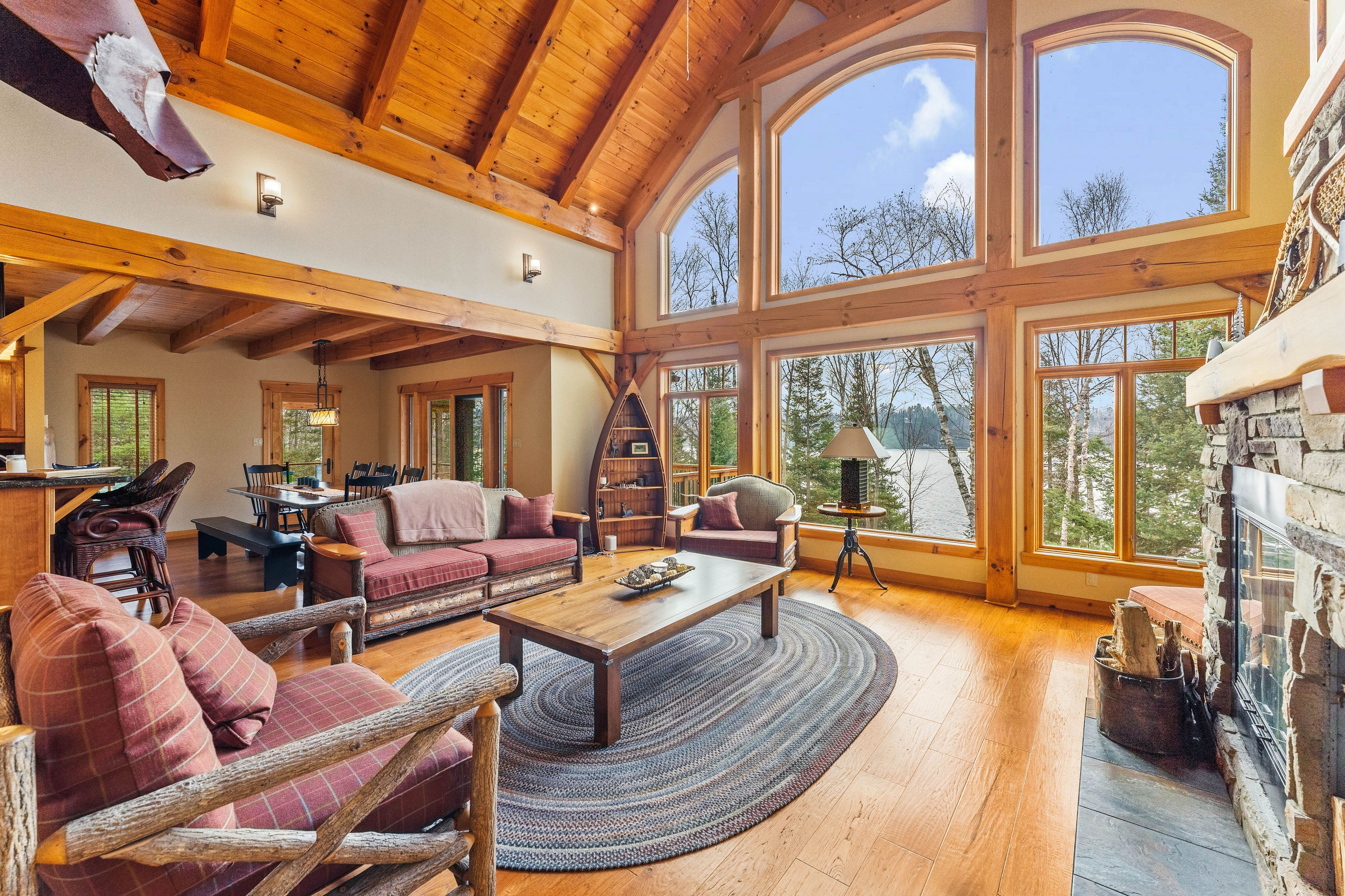 Elcome to 2625 northshore road, set among the prestigious estate properties of trout lake in north bay, ontario. This exceptional executive home and cottage retreat sits on 1. 7 private acres with 200 feet of pristine frontage, offering a rare combination of seclusion, natural beauty, and refined living. From the moment you step through the grand foyer, a sweeping wooded lake view draws you in and sets the tone for everything this property delivers. Soaring timber frame posts and beams, a commanding wood burning fireplace, and nearly 4,000 finished square feet create an atmosphere that is equally warm and impressive. The open concept main floor is built for both everyday living and effortless entertaining, featuring a generous kitchen, large dining room, spacious primary suite with walk in closet and four piece ensuite, and a versatile den. Step out to the lakeside screened in porch and let the sounds of trout lake become your backdrop for morning coffee or evening wine. Upstairs, a stunning loft hosts two additional bedrooms, a four piece bath, and breathtaking elevated lake views. The finished walkout lower level adds a fourth guest bedroom, full bath with sauna, and a generous family room opening directly to the lake. At the waters edge a lakeside bunkie, deck, and sandy walk in beach await. Scenic trails for walking, biking, and mountain biking are right outside your door.