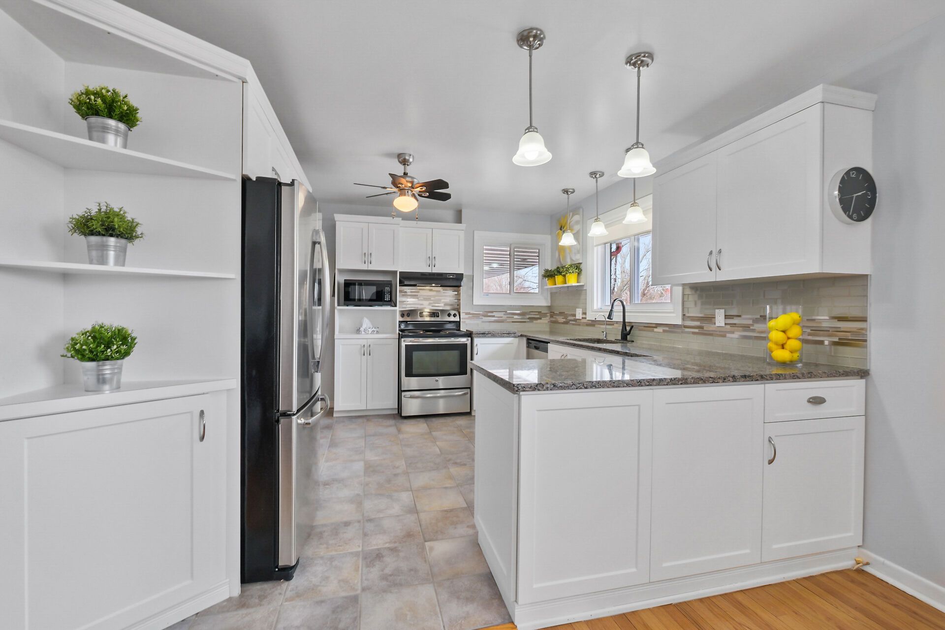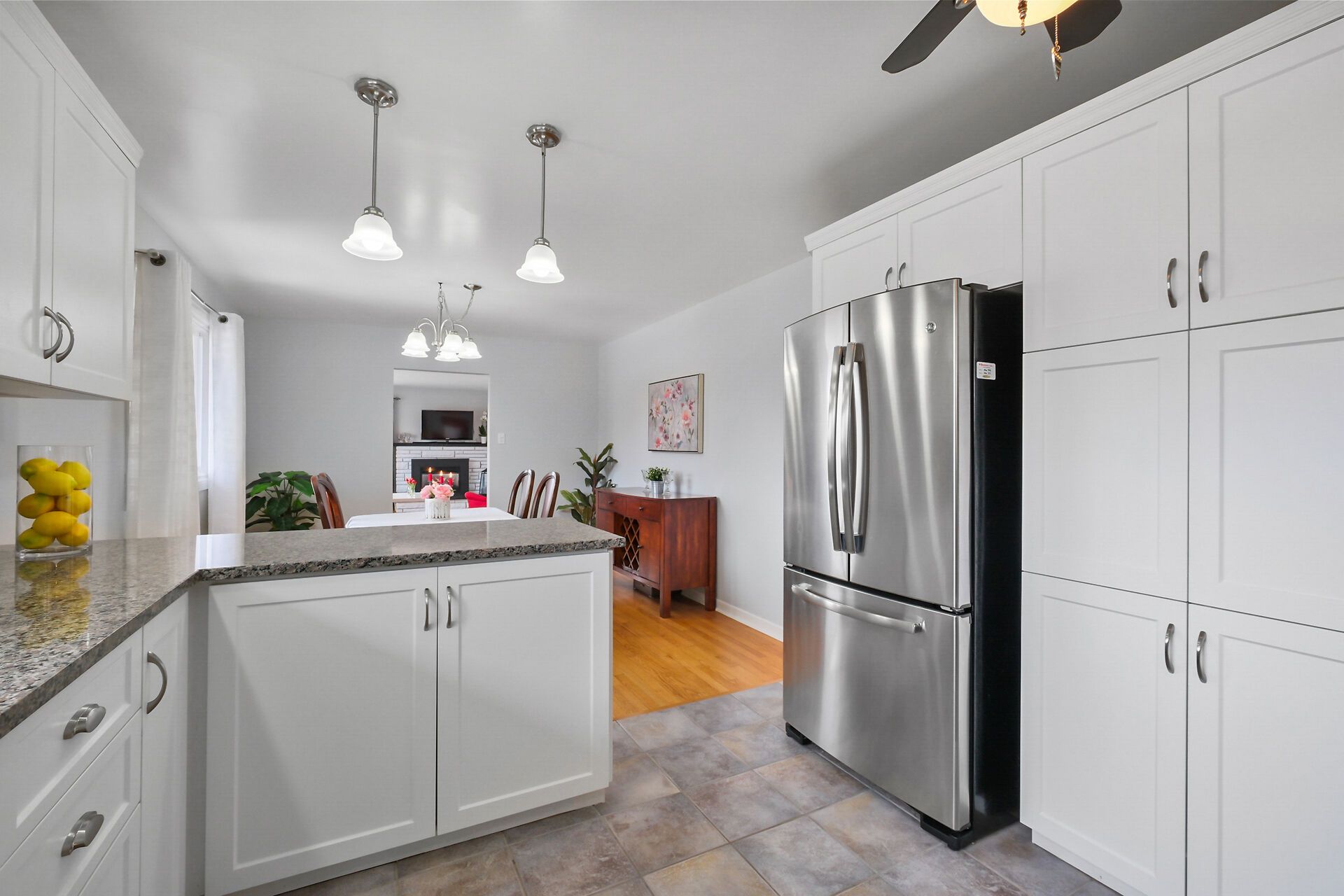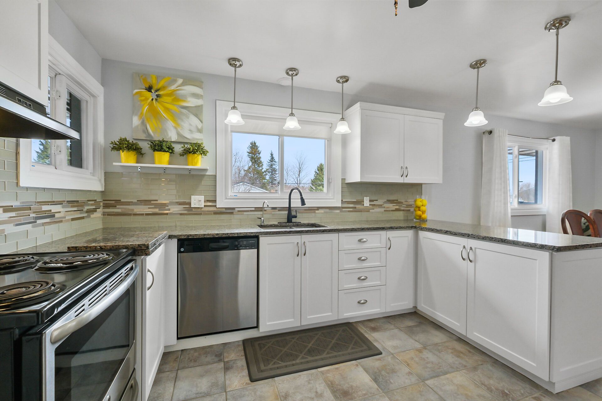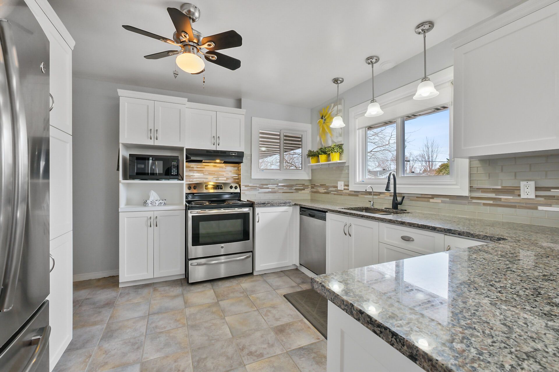 • Updated kitchen with granite counters and plenty of storage space.