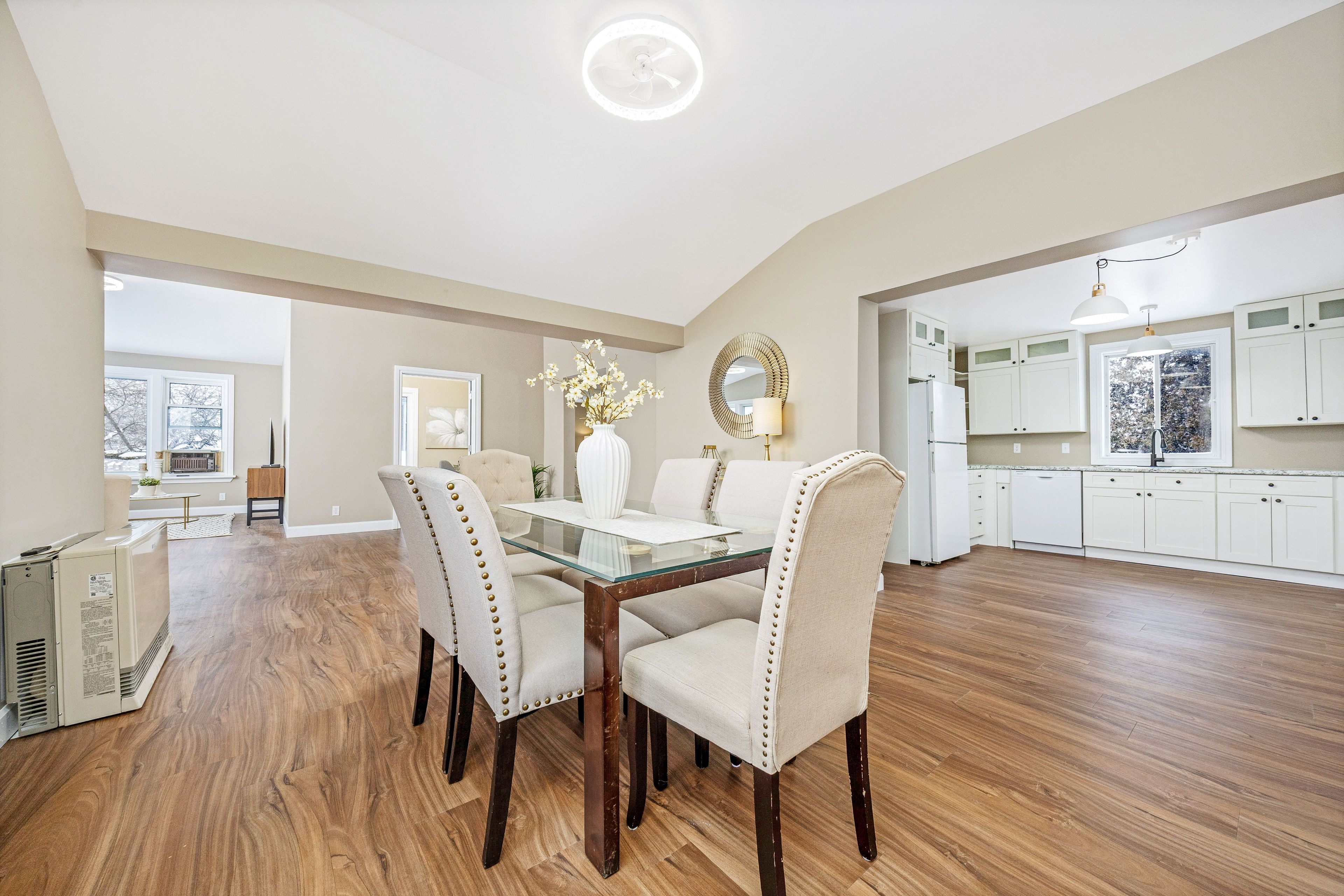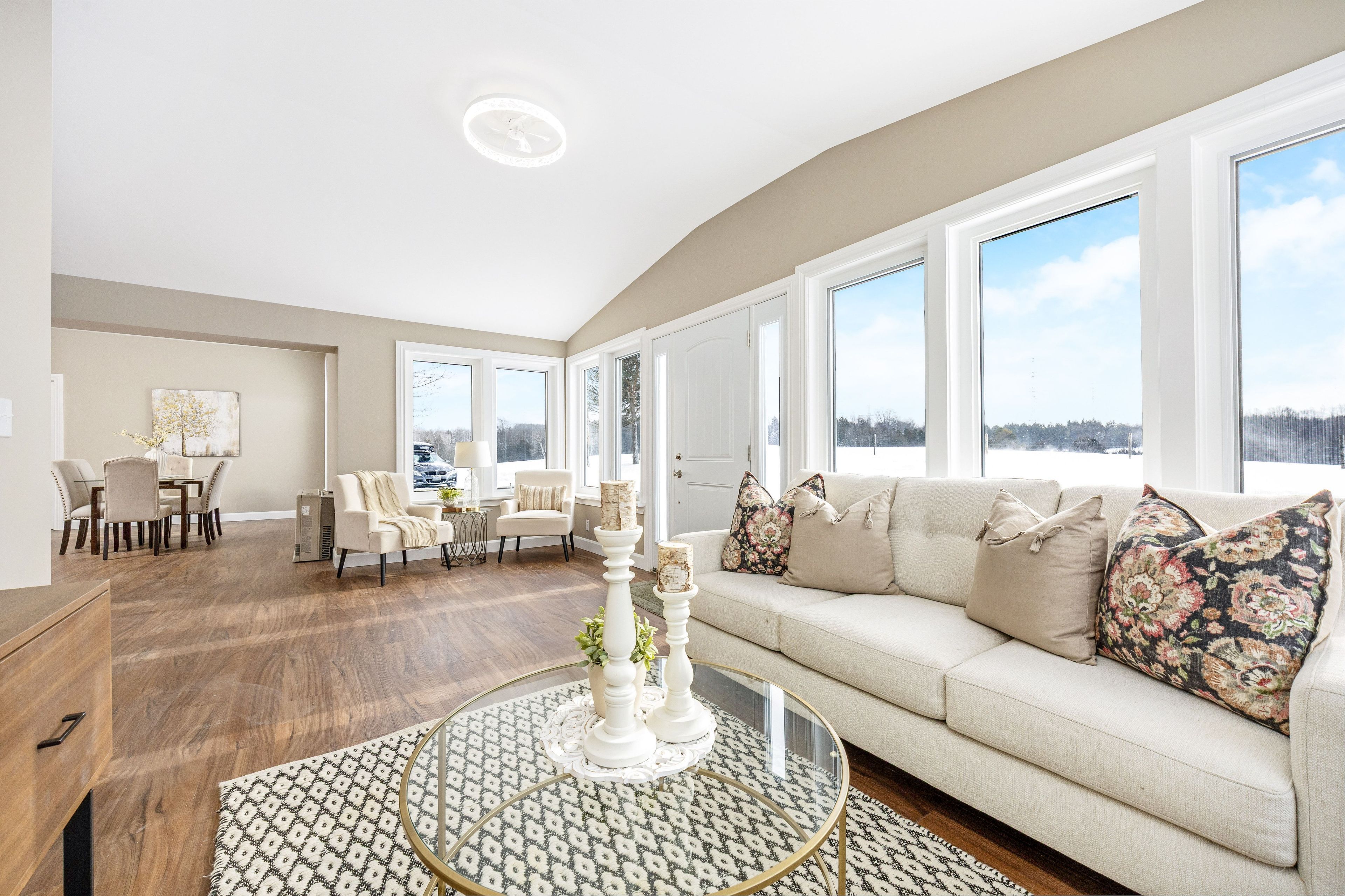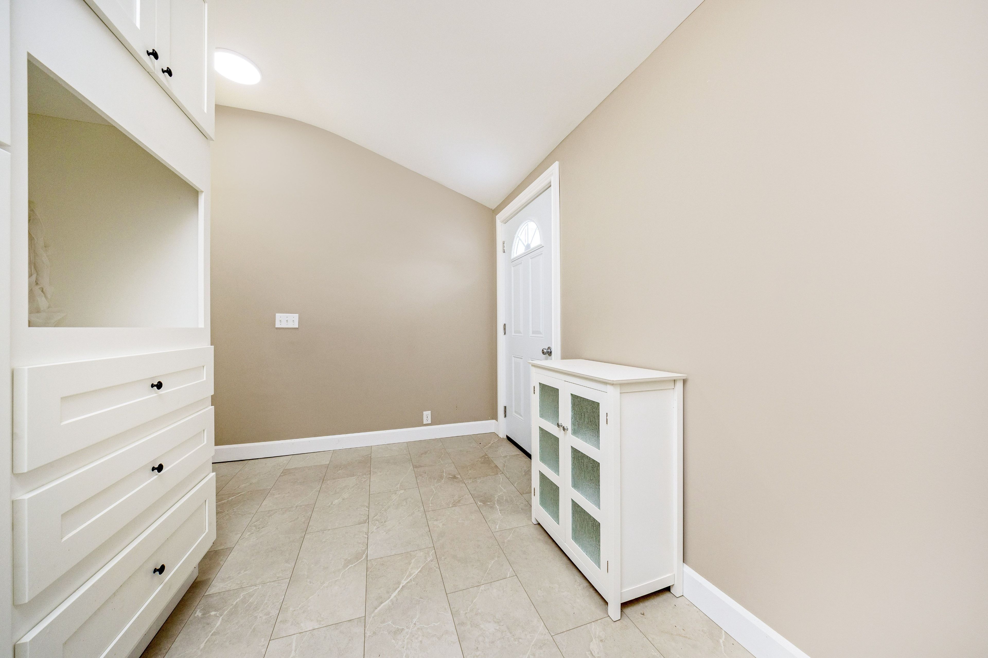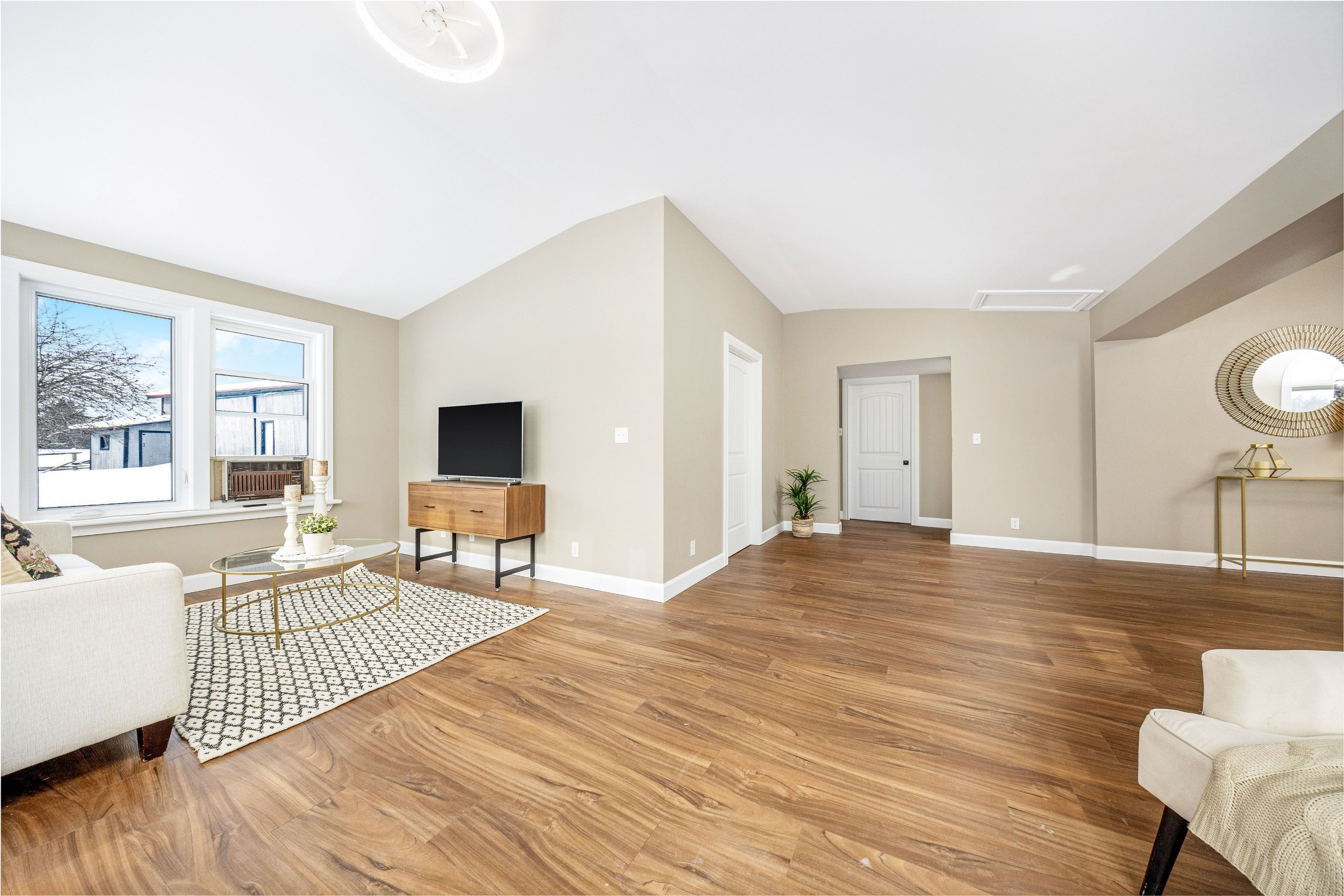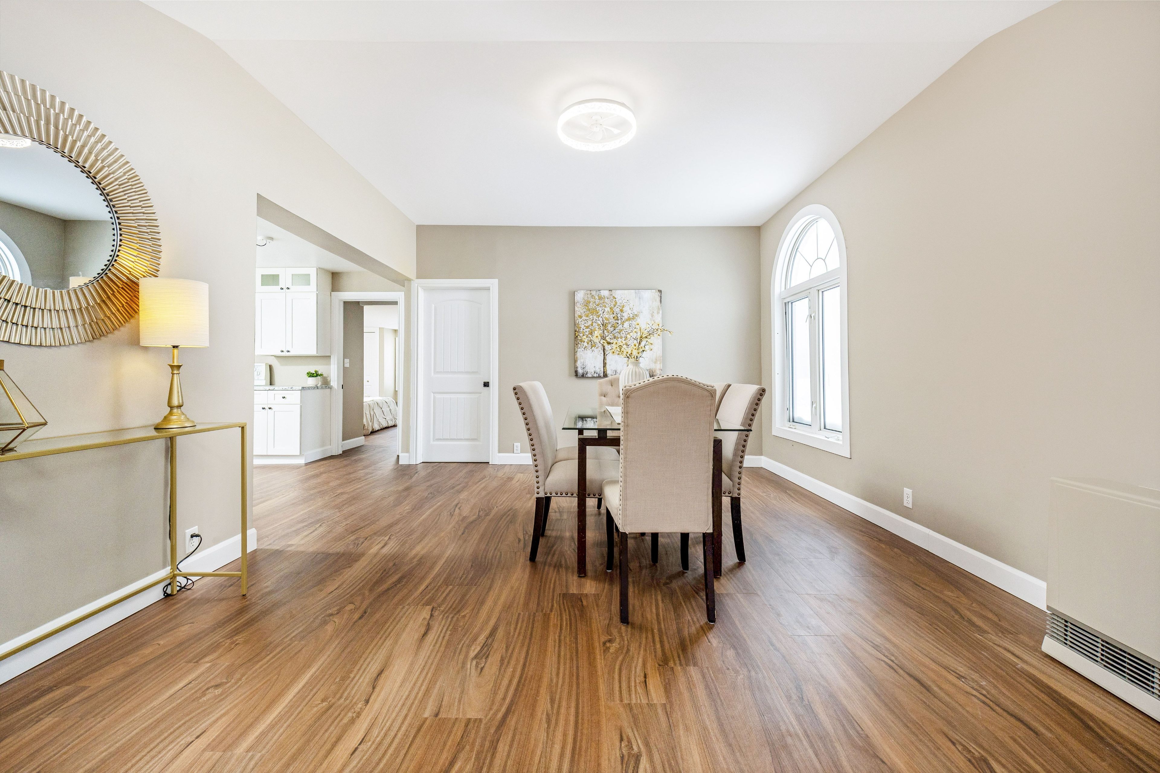 • Bright bungalow entrance with new flooring and ample windows for natural light.