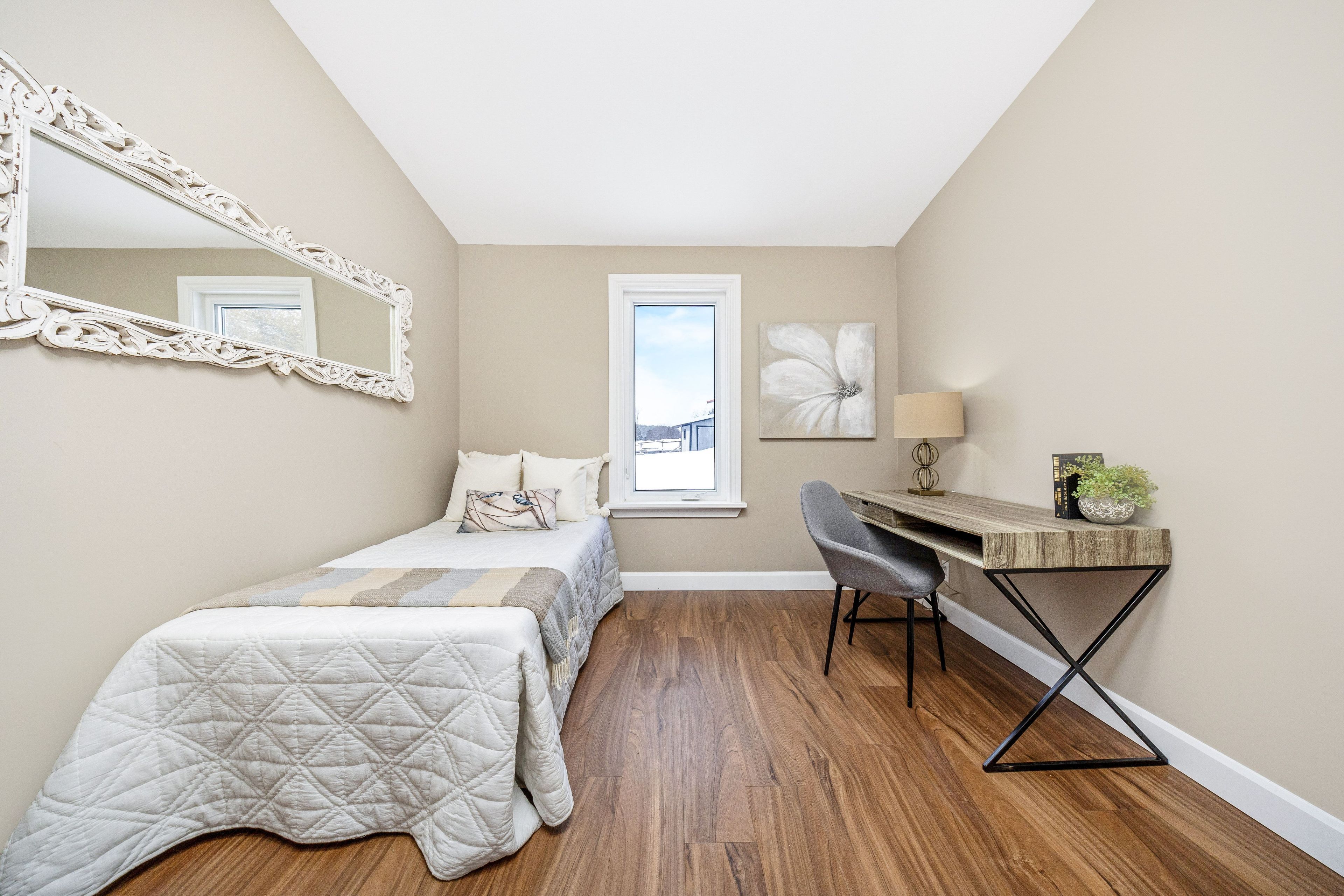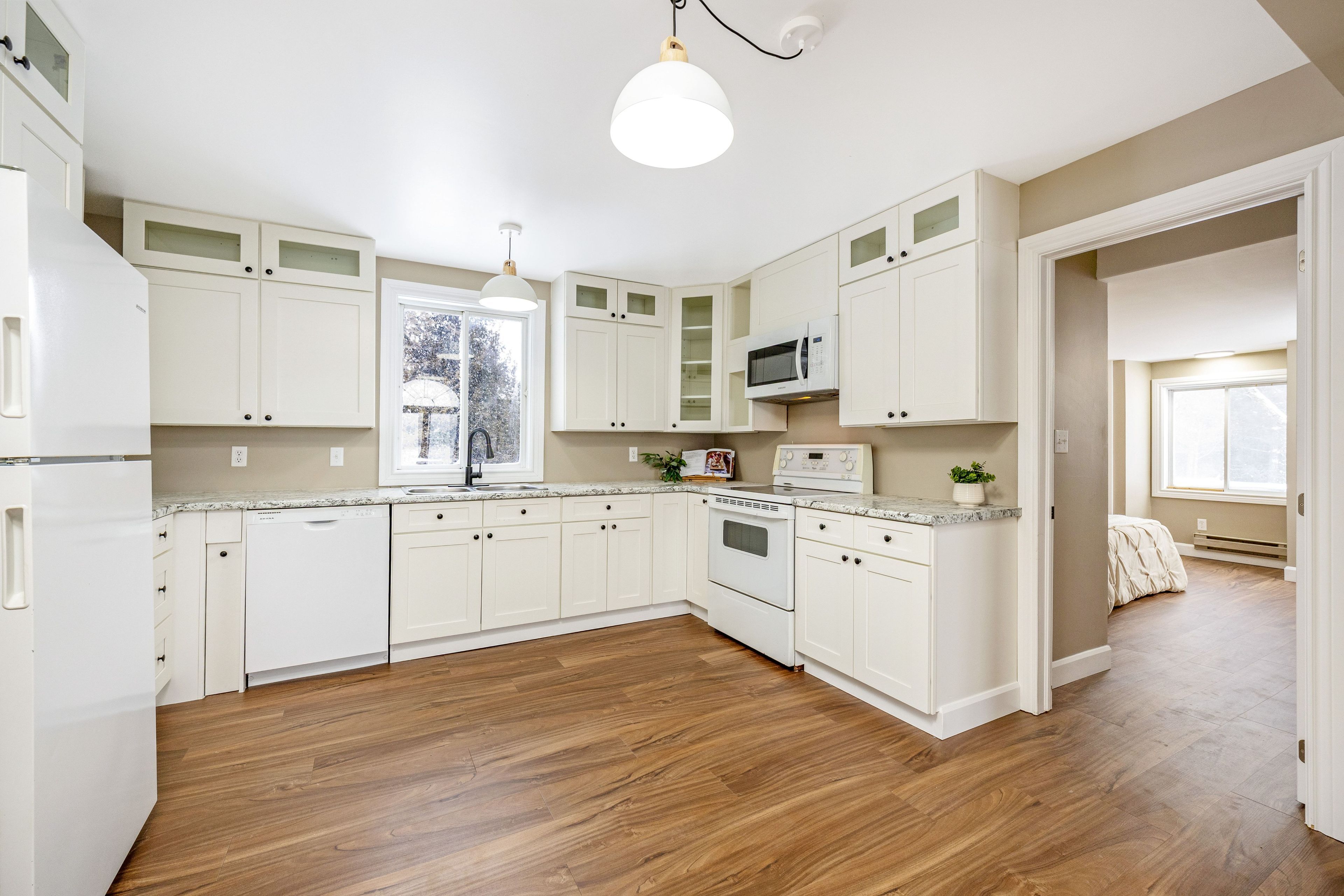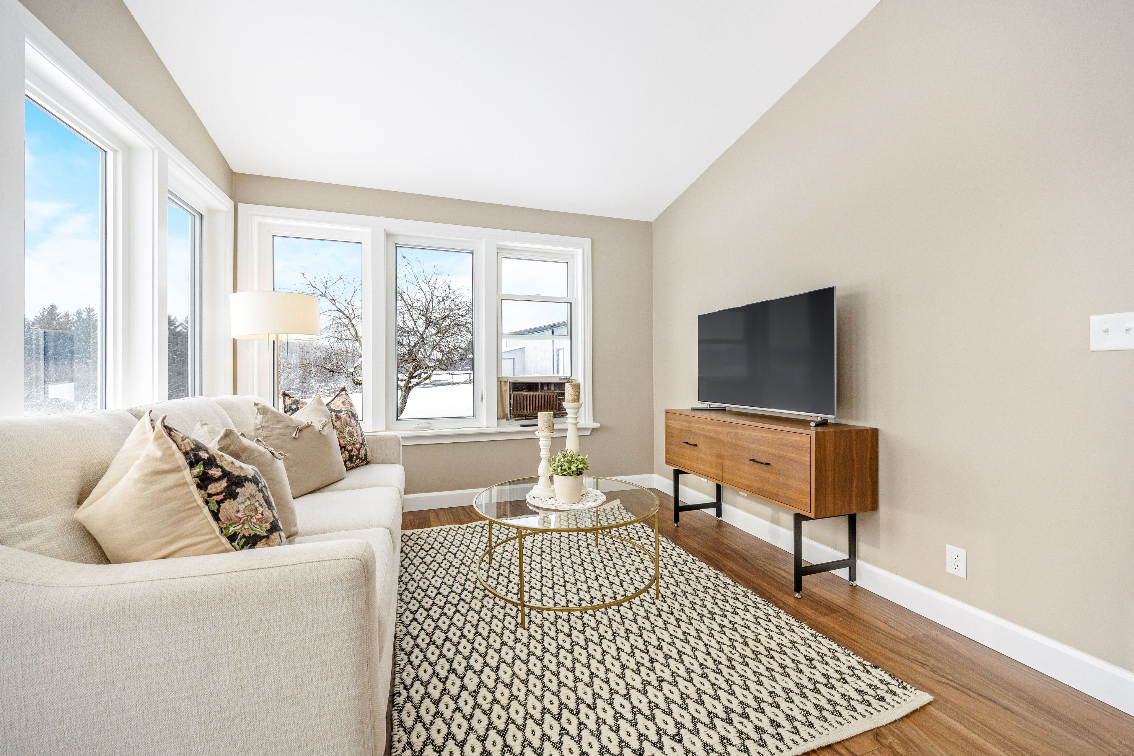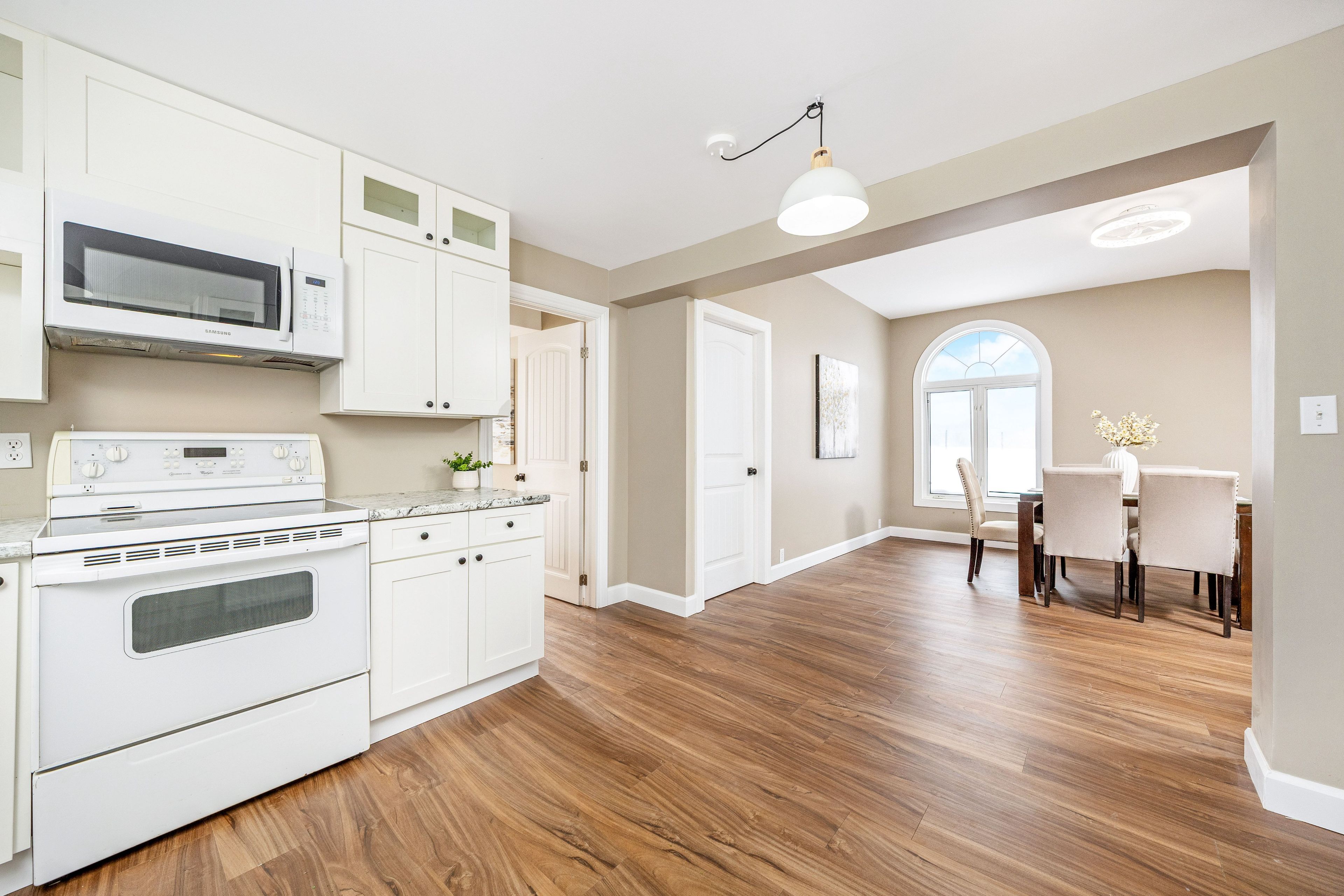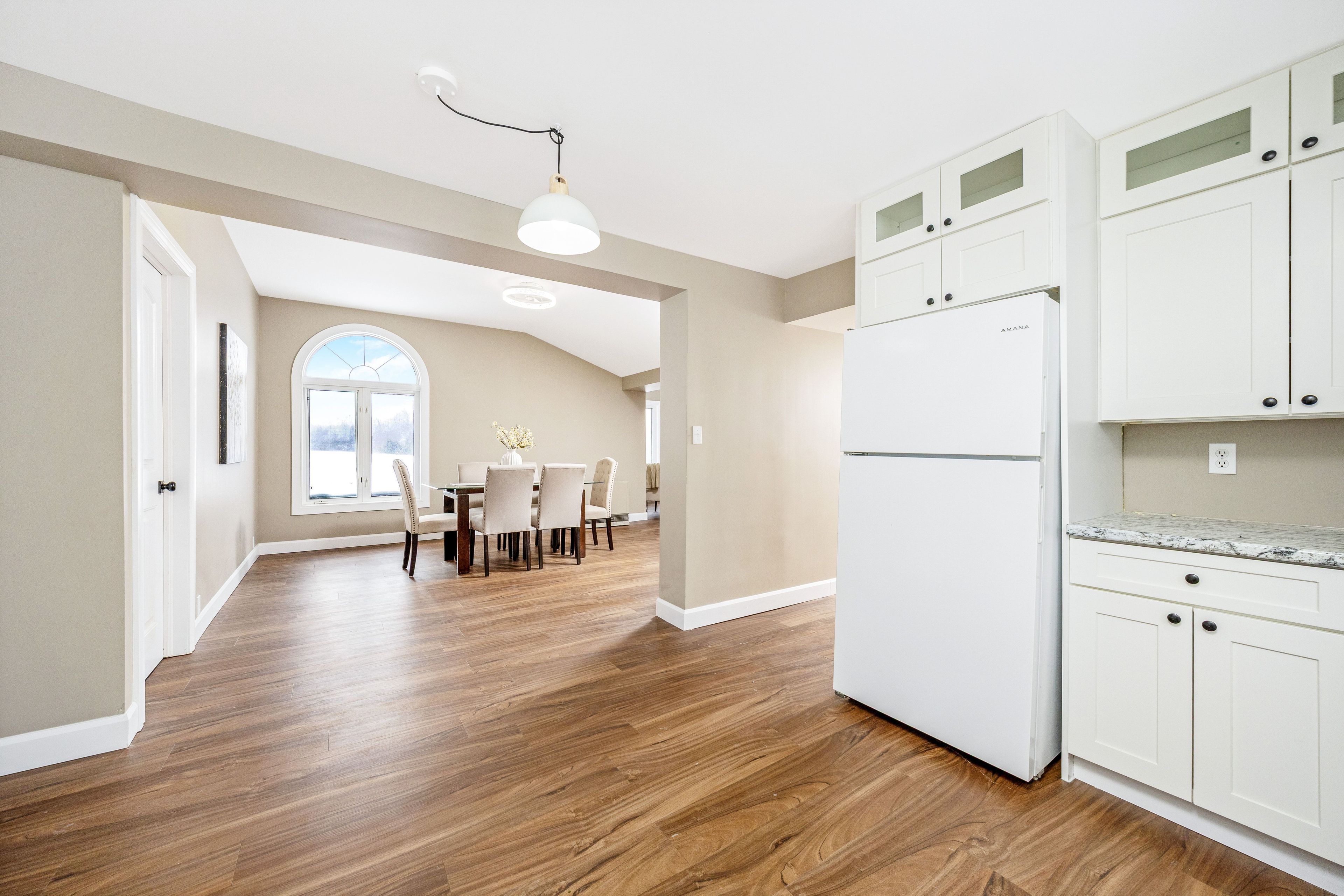 • Bright bungalow entrance with new flooring and ample windows for natural light.