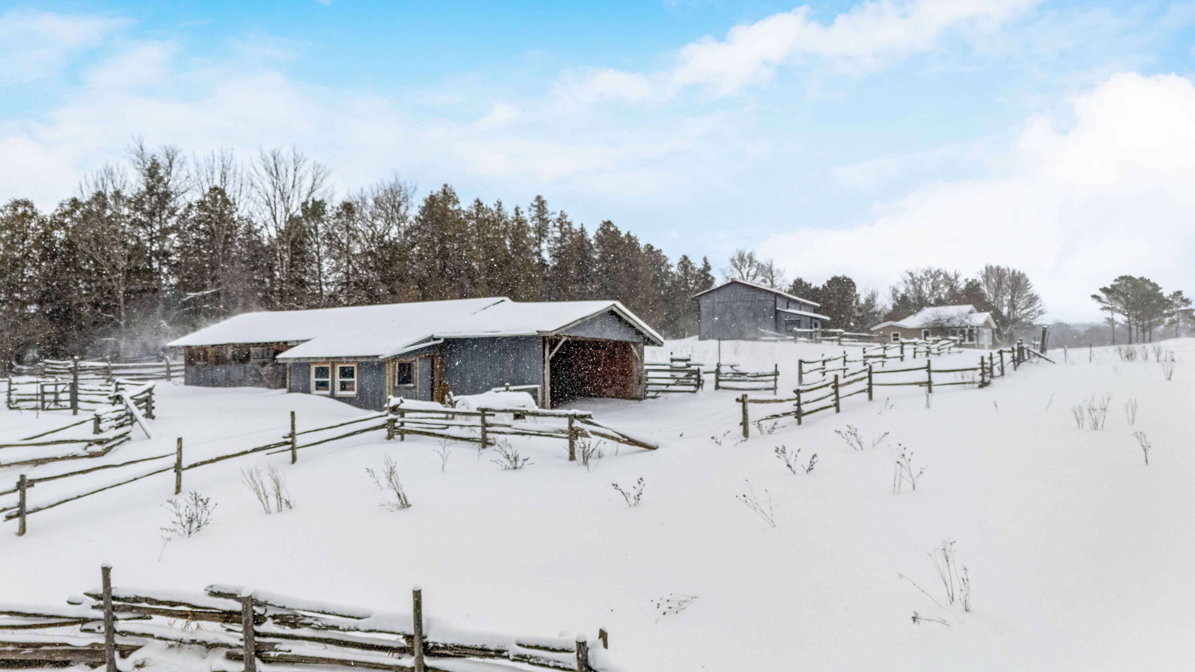 • Large barn and multiple farm outbuildings for various uses.