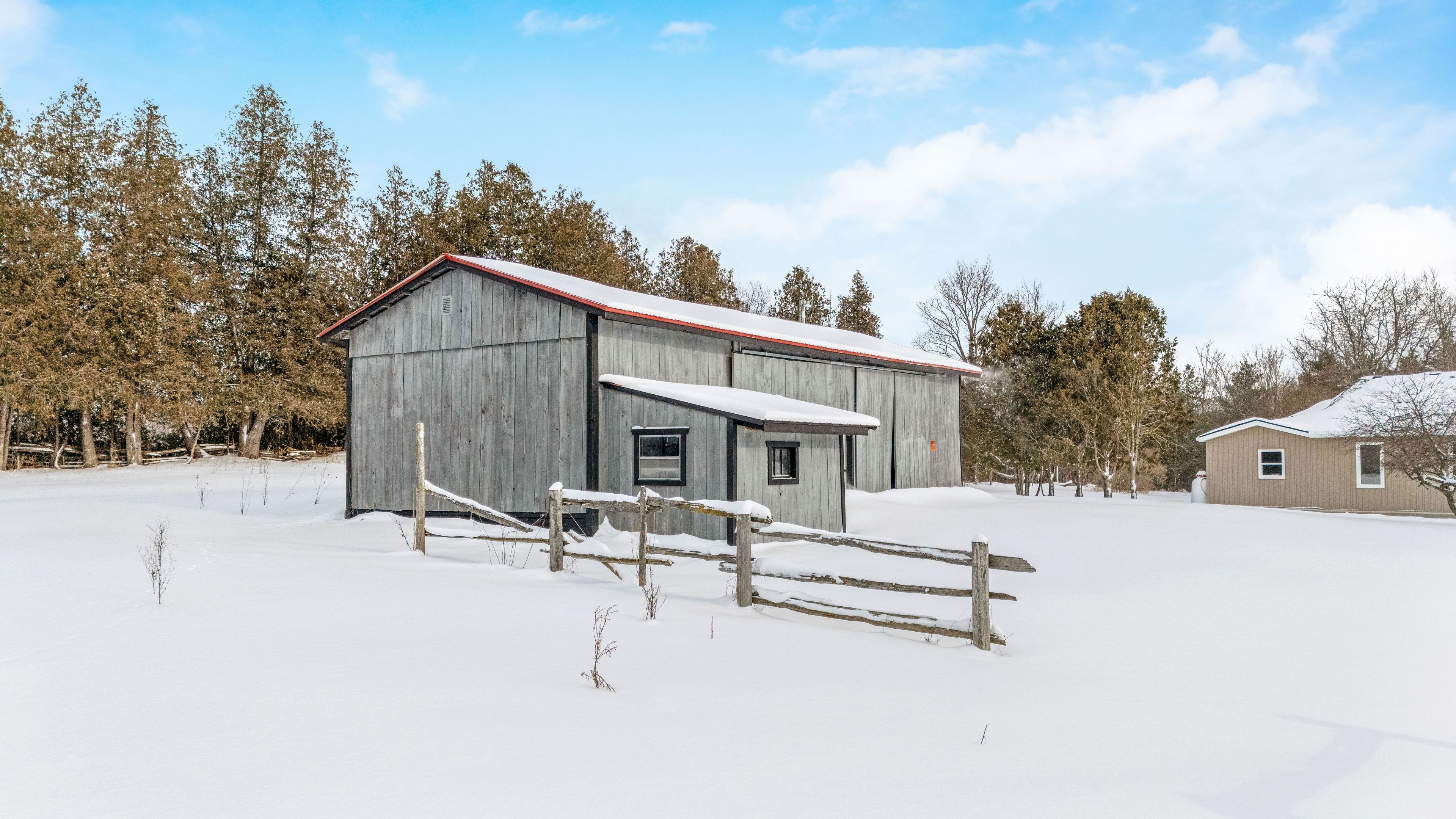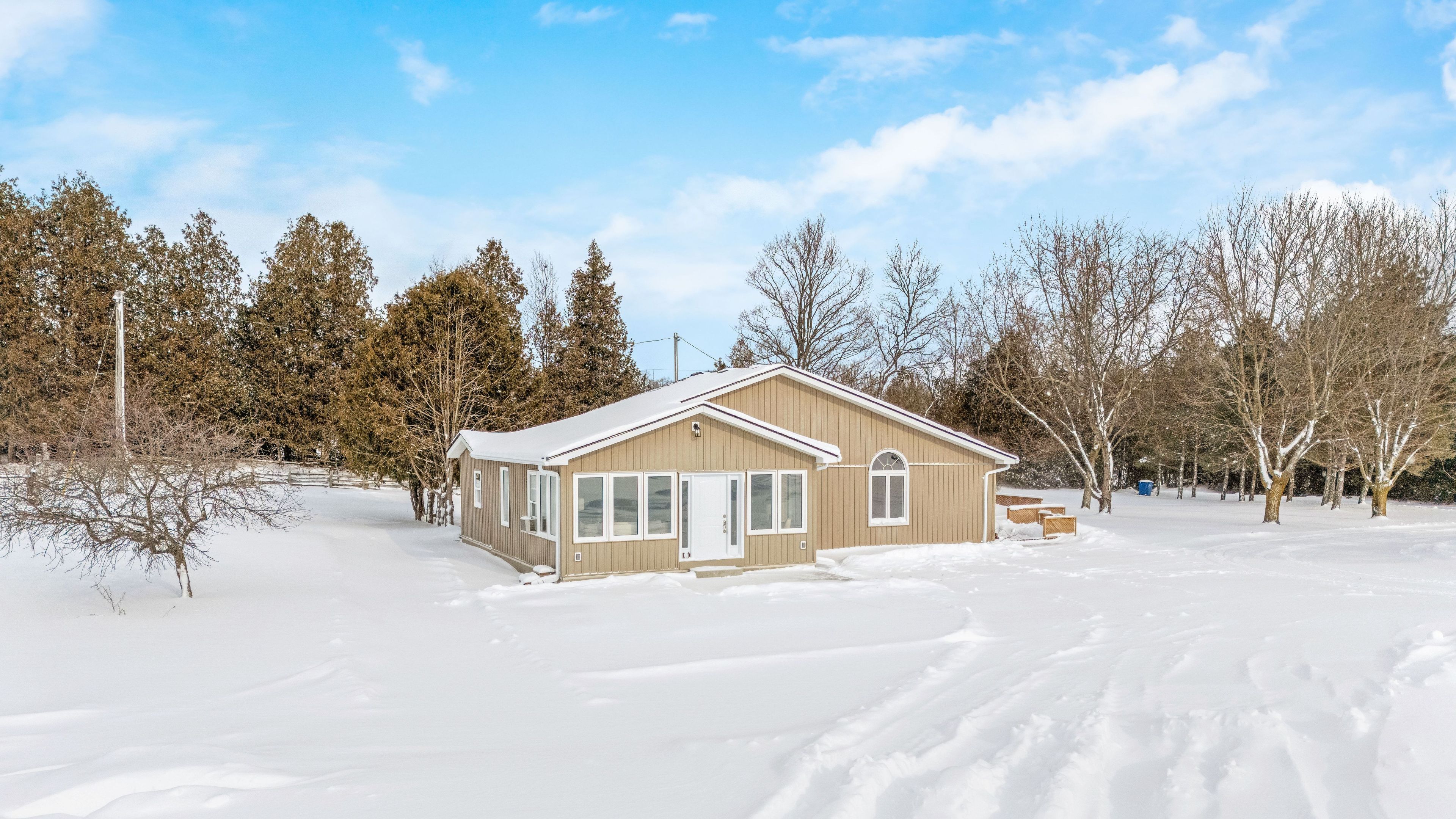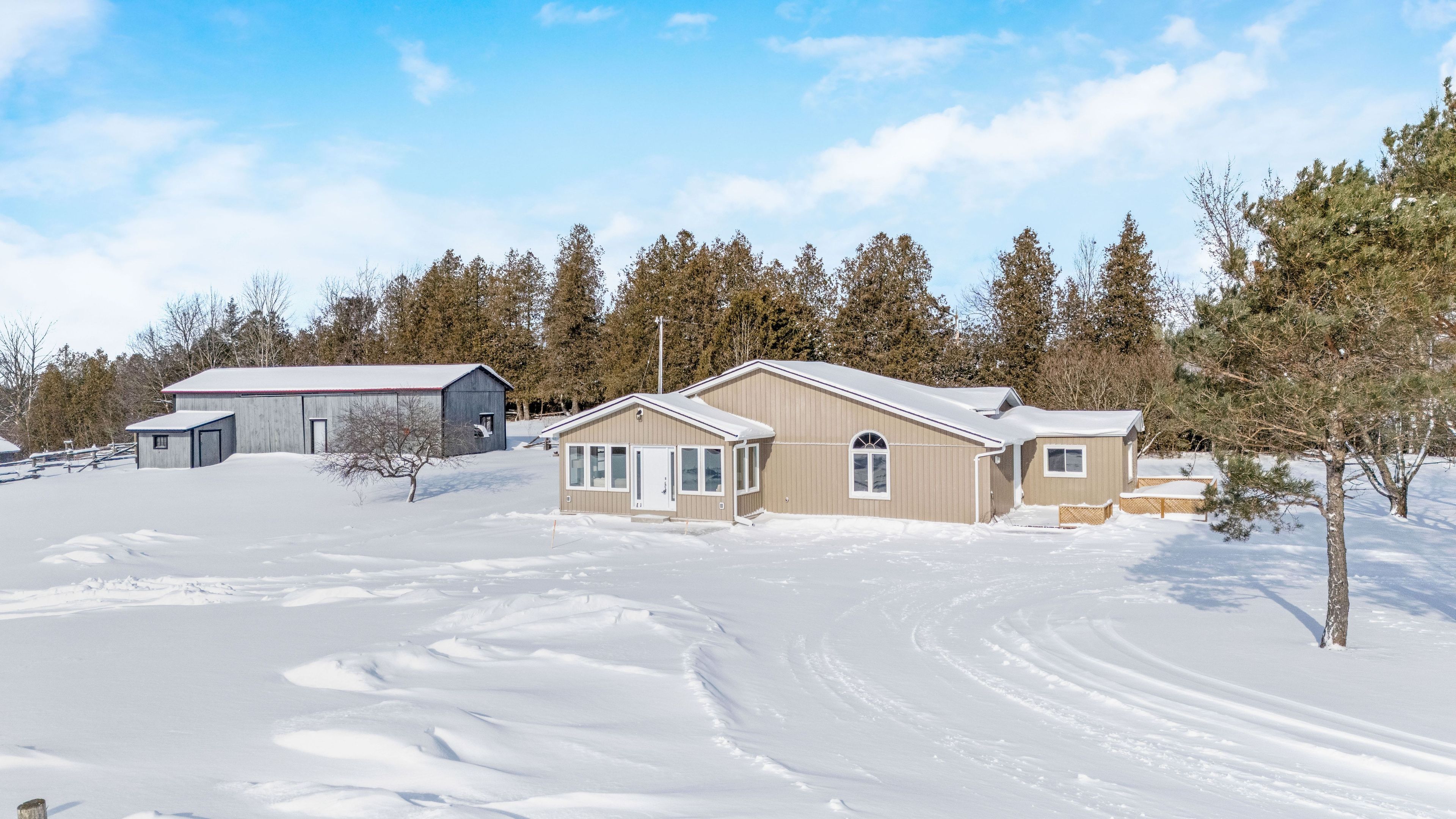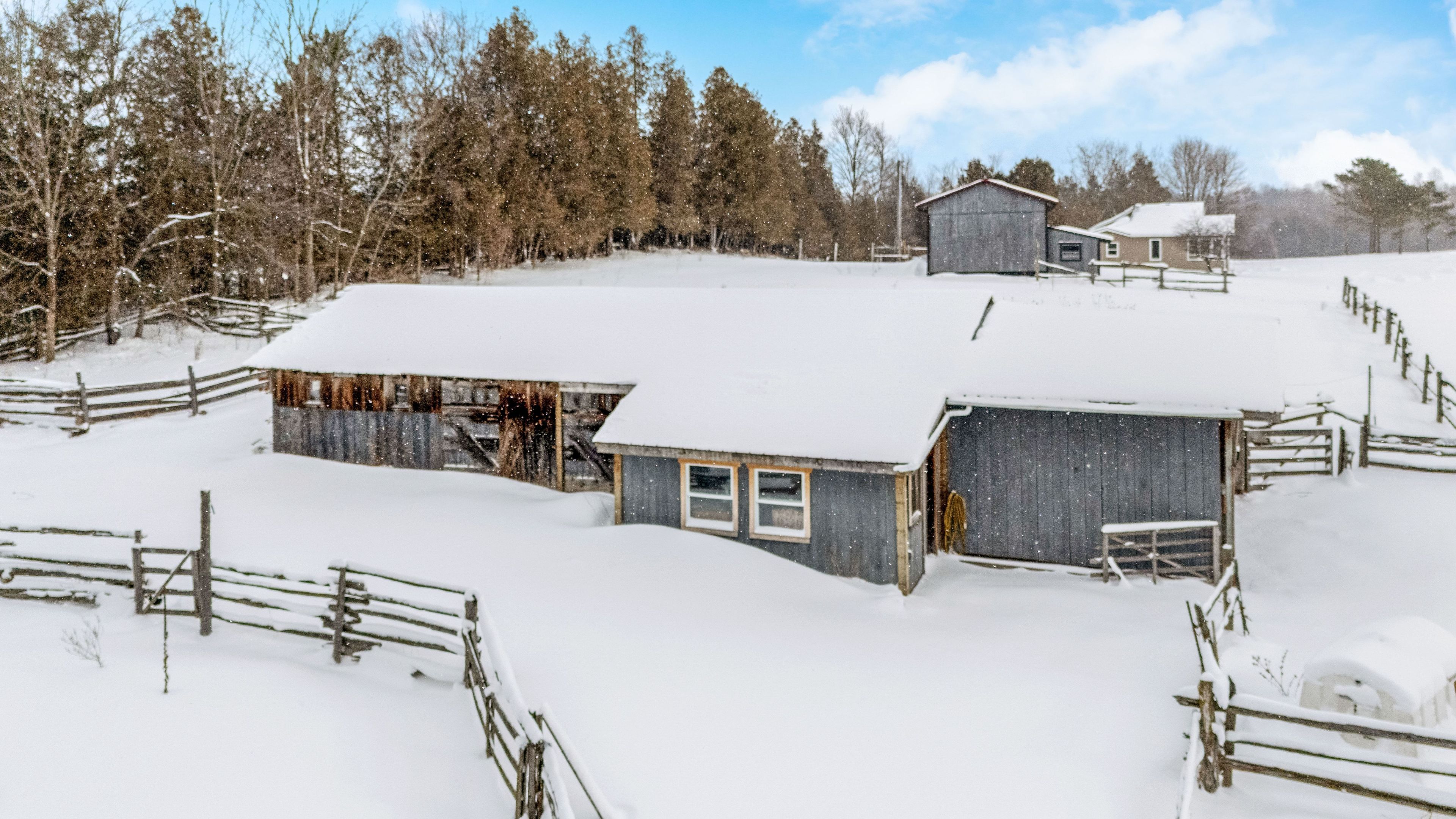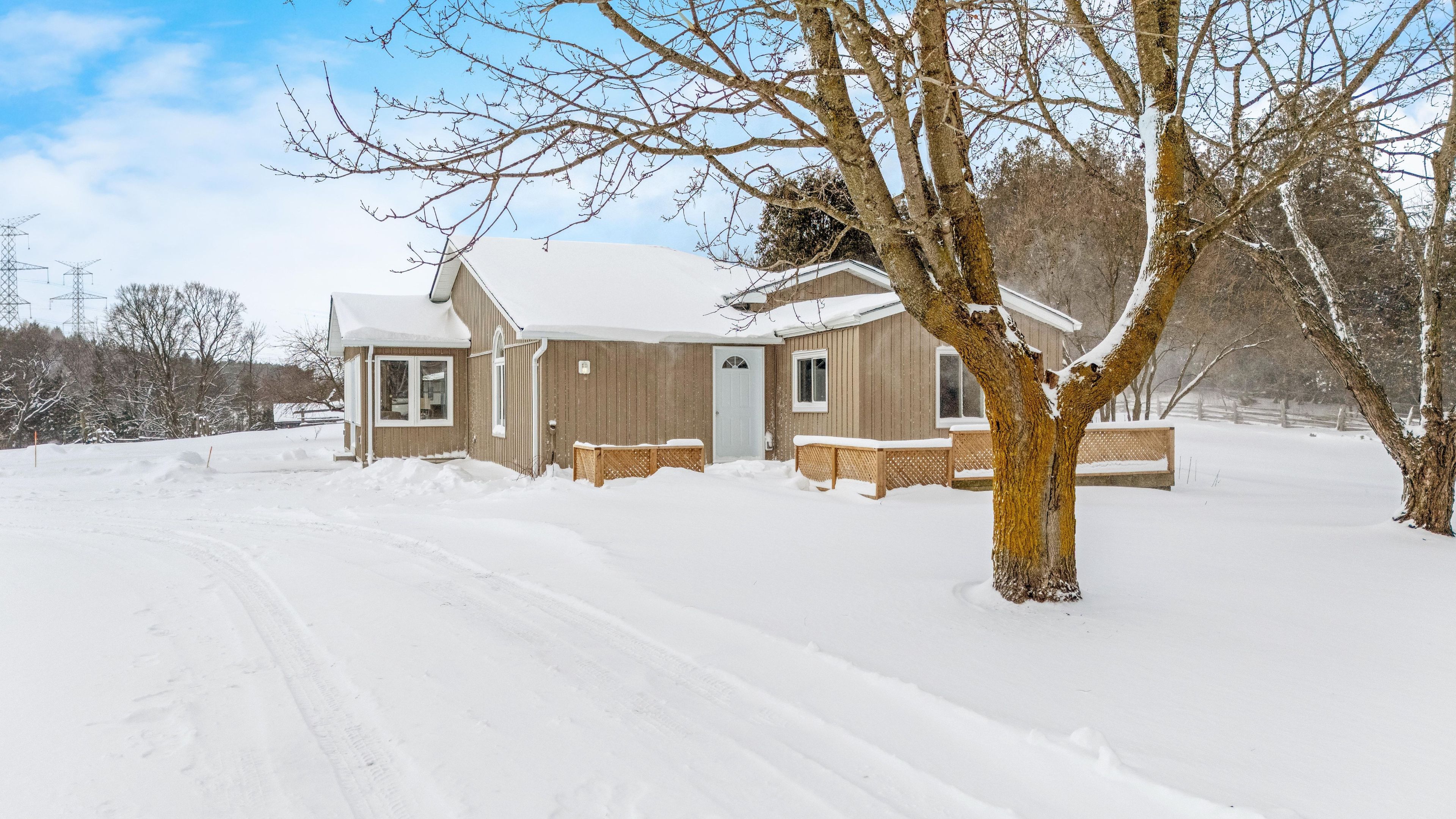 Welcome to 262700 varney road, a special rural property set on approximately 45 acres in the heart of west grey. Offering a mix of workable land, open pasture & wooded areas, this is a place where space, nature & opportunity come together. The bungalow welcomes you with a bright front entrance featuring new vinyl flooring & five windows overlooking the front yard. The living room offers new vinyl flooring, a semi flush mount ceiling fan, & side facing windows that bring in plenty of natural light. The dining room features new vinyl flooring, a semi flush mount fan & light, and a charming arched window overlooking the front of the home. The kitchen is both functional & inviting with new vinyl flooring, pendant lighting, shaker style cabinets with glass inserts, soft close slides & hinges, & a window overlooking the backyard. Appliances include a white whirlpool stove, samsung range hood & microwave, & white amana fridge & dishwasher. Three main floor bedrooms provide comfortable living space. The primary bedroom features two single closets & one double closet, with windows overlooking the front & side yards. The second bedroom includes a double closet & side facing window, while the third bedroom also offers a side facing window. The 3 piece main floor bathroom is finished with ceramic tile flooring, pot lights, a wall sconces, a freestanding single sink vanity, & a standing shower with glass surround & brass hardware. Outside, the property shines. A gravel driveway leads to a large barn with workshop style space, along with multiple farm outbuildings. The backyard offers a poured concrete patio, electric fencing & an exterior round pen. Camp creek flows through the land & is known to support trout, adding to the peaceful natural setting. Apple trees are scattered throughout & the harrison loam soil is well suited for agricultural use. The property has historically supported horses, grass fed beef, sheep, donkey & cash cropping.