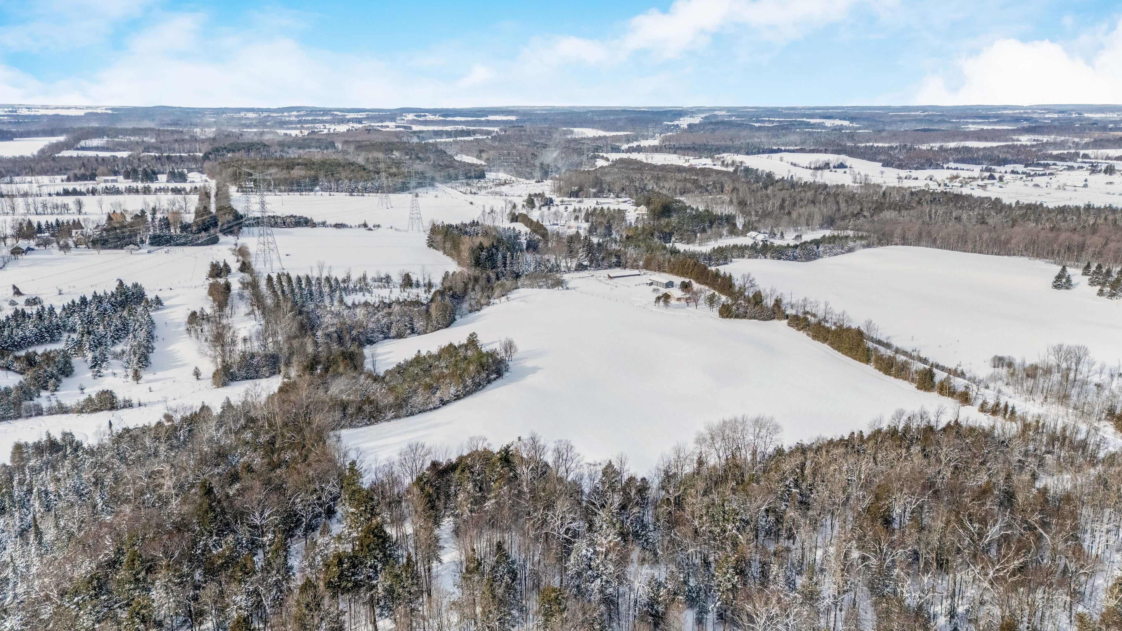 • Sprawling 45 acres of mixed land with pastures and wooded areas.