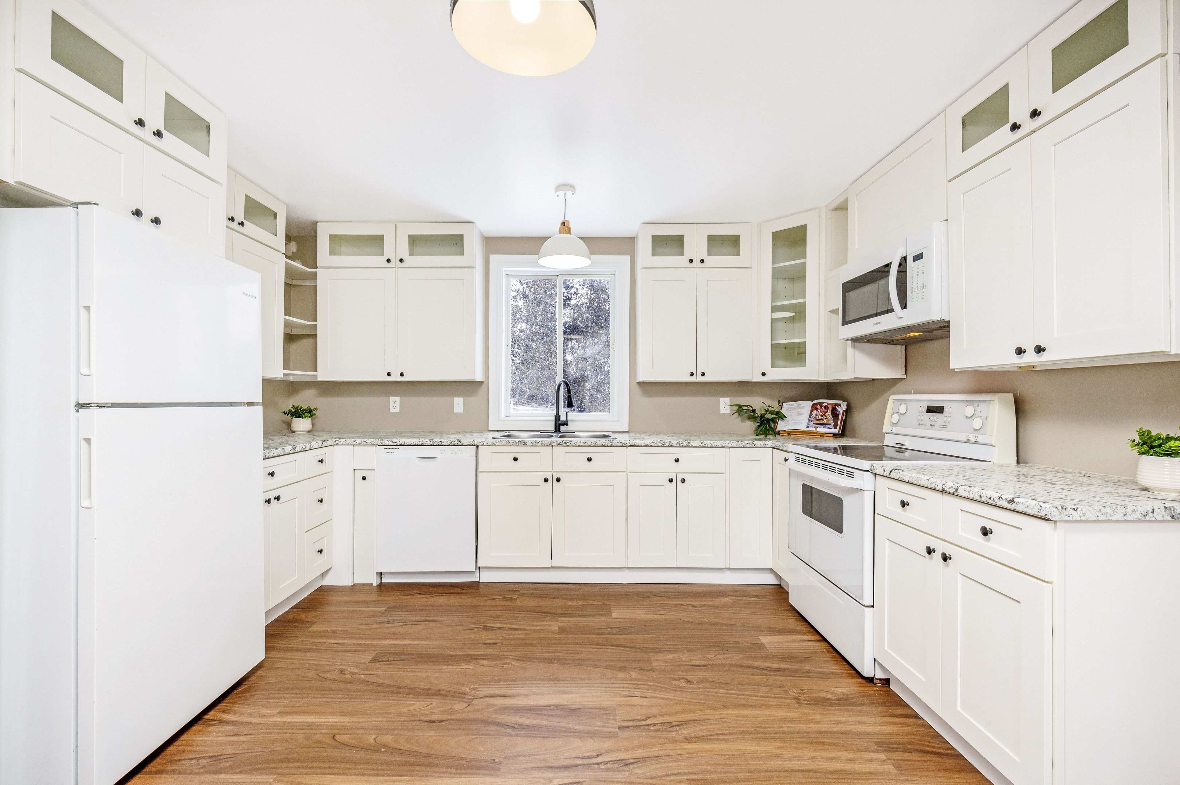 • Functional kitchen featuring modern appliances and stylish shaker cabinets.