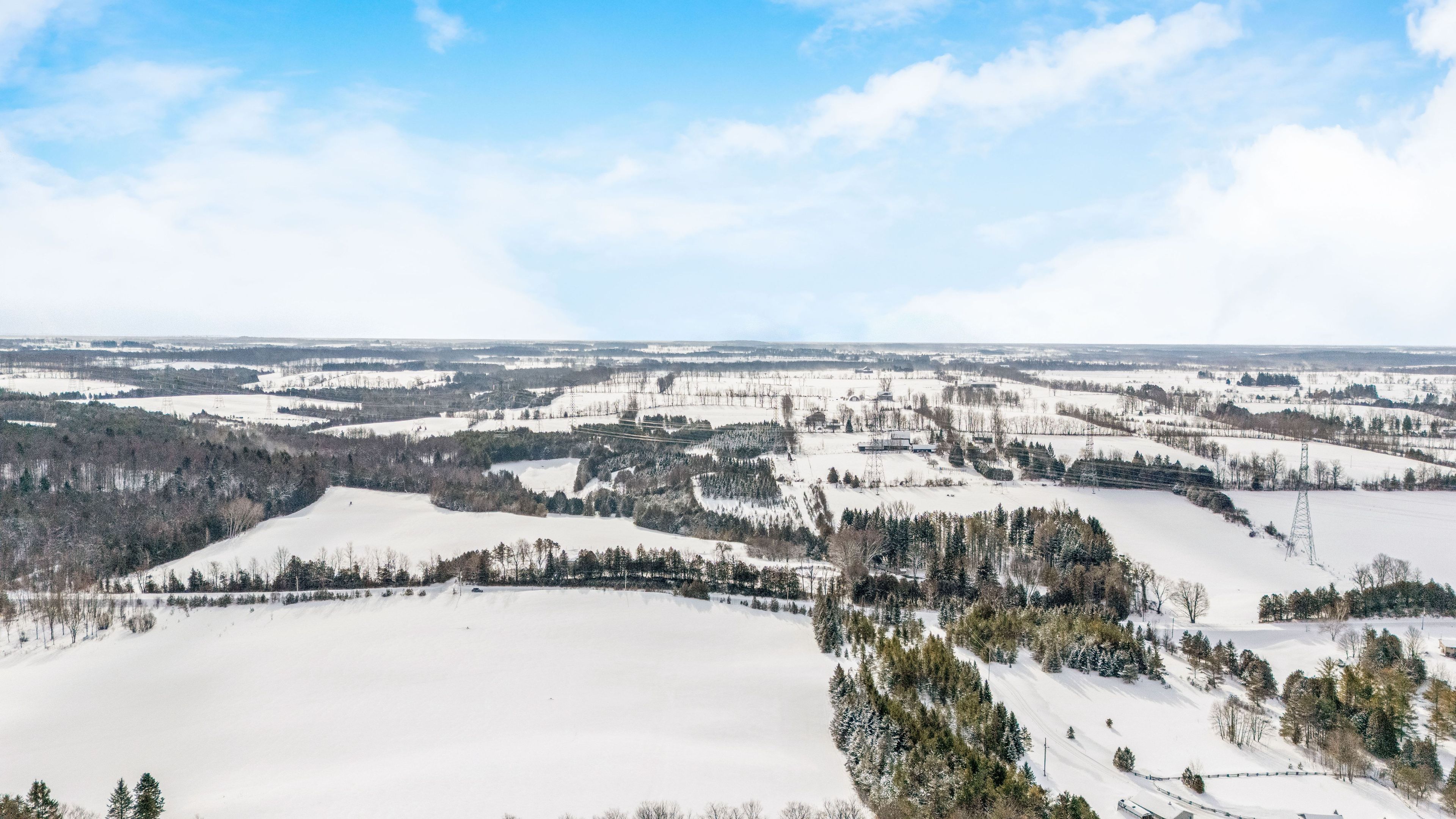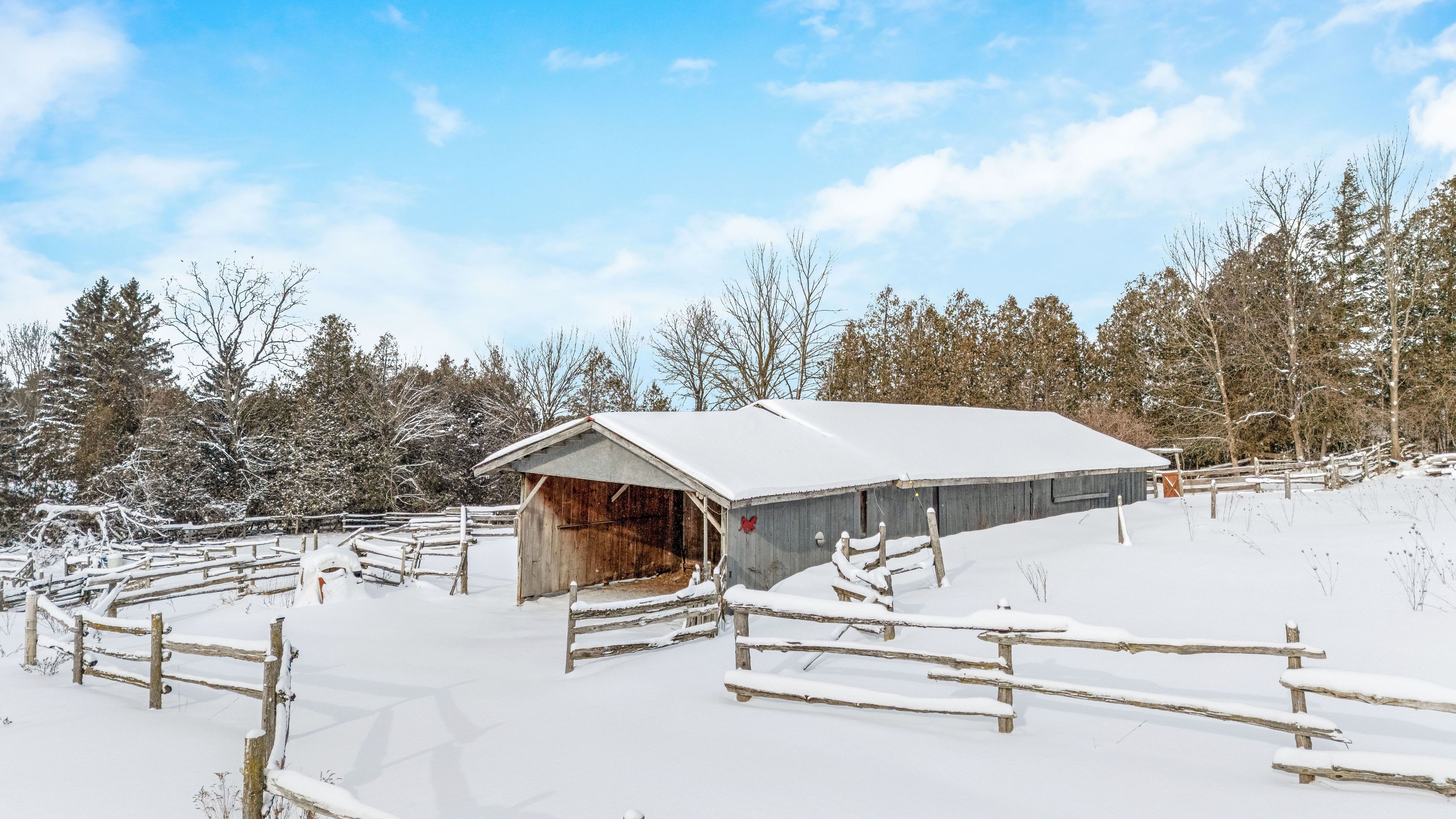 Welcome to 262700 varney road, a special rural property set on approximately 45 acres in the heart of west grey. Offering a mix of workable land, open pasture & wooded areas, this is a place where space, nature & opportunity come together. The bungalow welcomes you with a bright front entrance featuring new vinyl flooring & five windows overlooking the front yard. The living room offers new vinyl flooring, a semi flush mount ceiling fan, & side facing windows that bring in plenty of natural light. The dining room features new vinyl flooring, a semi flush mount fan & light, and a charming arched window overlooking the front of the home. The kitchen is both functional & inviting with new vinyl flooring, pendant lighting, shaker style cabinets with glass inserts, soft close slides & hinges, & a window overlooking the backyard. Appliances include a white whirlpool stove, samsung range hood & microwave, & white amana fridge & dishwasher. Three main floor bedrooms provide comfortable living space. The primary bedroom features two single closets & one double closet, with windows overlooking the front & side yards. The second bedroom includes a double closet & side facing window, while the third bedroom also offers a side facing window. The 3 piece main floor bathroom is finished with ceramic tile flooring, pot lights, a wall sconces, a freestanding single sink vanity, & a standing shower with glass surround & brass hardware. Outside, the property shines. A gravel driveway leads to a large barn with workshop style space, along with multiple farm outbuildings. The backyard offers a poured concrete patio, electric fencing & an exterior round pen. Camp creek flows through the land & is known to support trout, adding to the peaceful natural setting. Apple trees are scattered throughout & the harrison loam soil is well suited for agricultural use. The property has historically supported horses, grass fed beef, sheep, donkey & cash cropping.