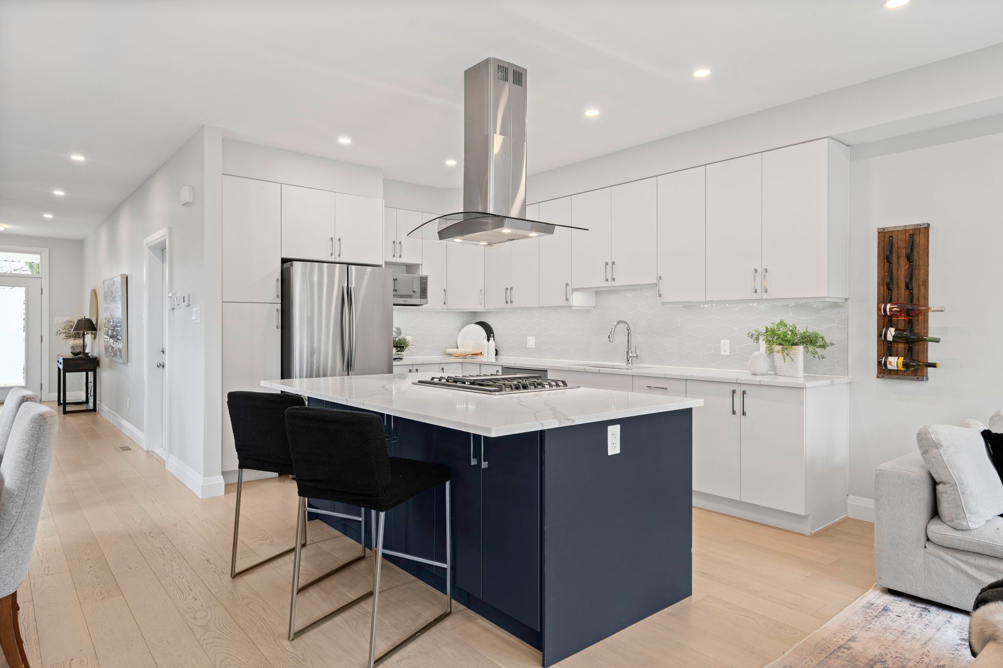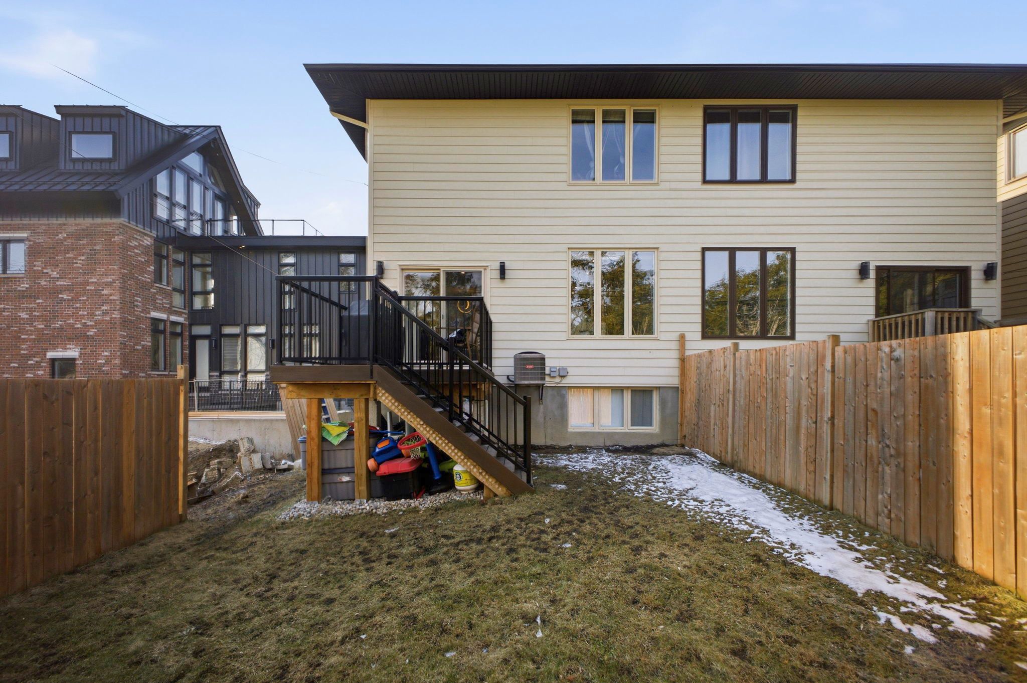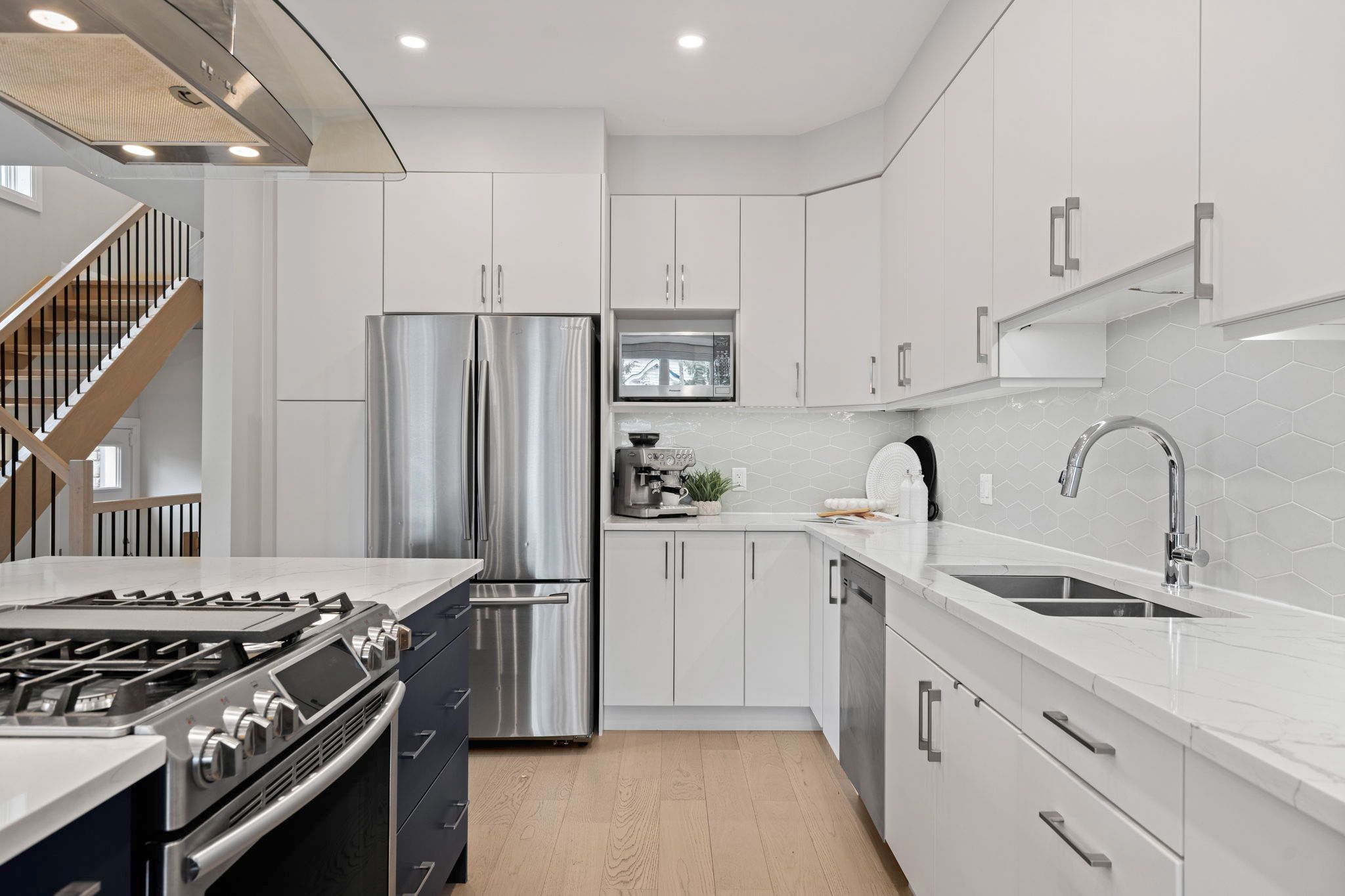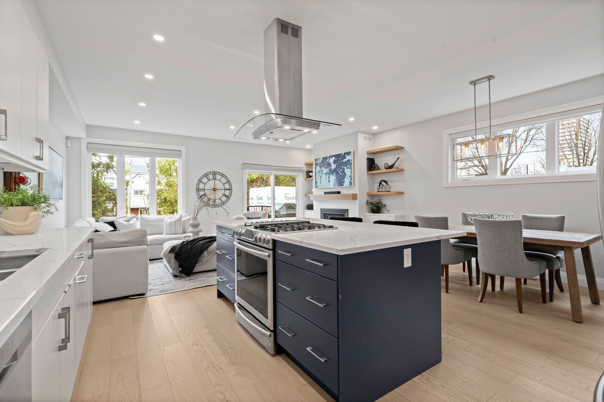 Discover refined living in this thoughtfully designed custom home surrounded by wonderful neighbours and ideally situated in the heart of westboro. The main level features a bright, open-concept design anchored by a spectacular kitchen with quartz countertops, a central island with a gas stove, and premium samsung stainless steel appliances, including a suspended broan elite stainless steel range hood. The adjoining dining area is ideal for gatherings, while the living room, with a new gas fireplace surrounded by custom-built-ins, is filled with natural light thanks to large windows and recessed lighting throughout. Upstairs, the large primary bedroom features custom his & hers walk-in closets and an ensuite with a freestanding tub and glass shower. Two more well-sized bedrooms, a full bathroom, and a dedicated laundry room offer comfort and convenience for the entire family. On the lower level, a large recreation room, a 4th bedroom with a large window, and a 4-piece bathroom make it a great space for both a cozy family room and a guest space. Outside, the fenced backyard has an elevated trex deck and a lawn area that is ideal for a play area or a future gardening space. Located in one of ottawa's most desirable neighbourhoods, this home places you steps from westboro's vibrant shops, cafés, and restaurants, as well as reputable schools, multiple transit stops, westboro beach, and the ottawa river pathways. Whether you're a growing family or a working professional, the lifestyle this location offers is second to none!