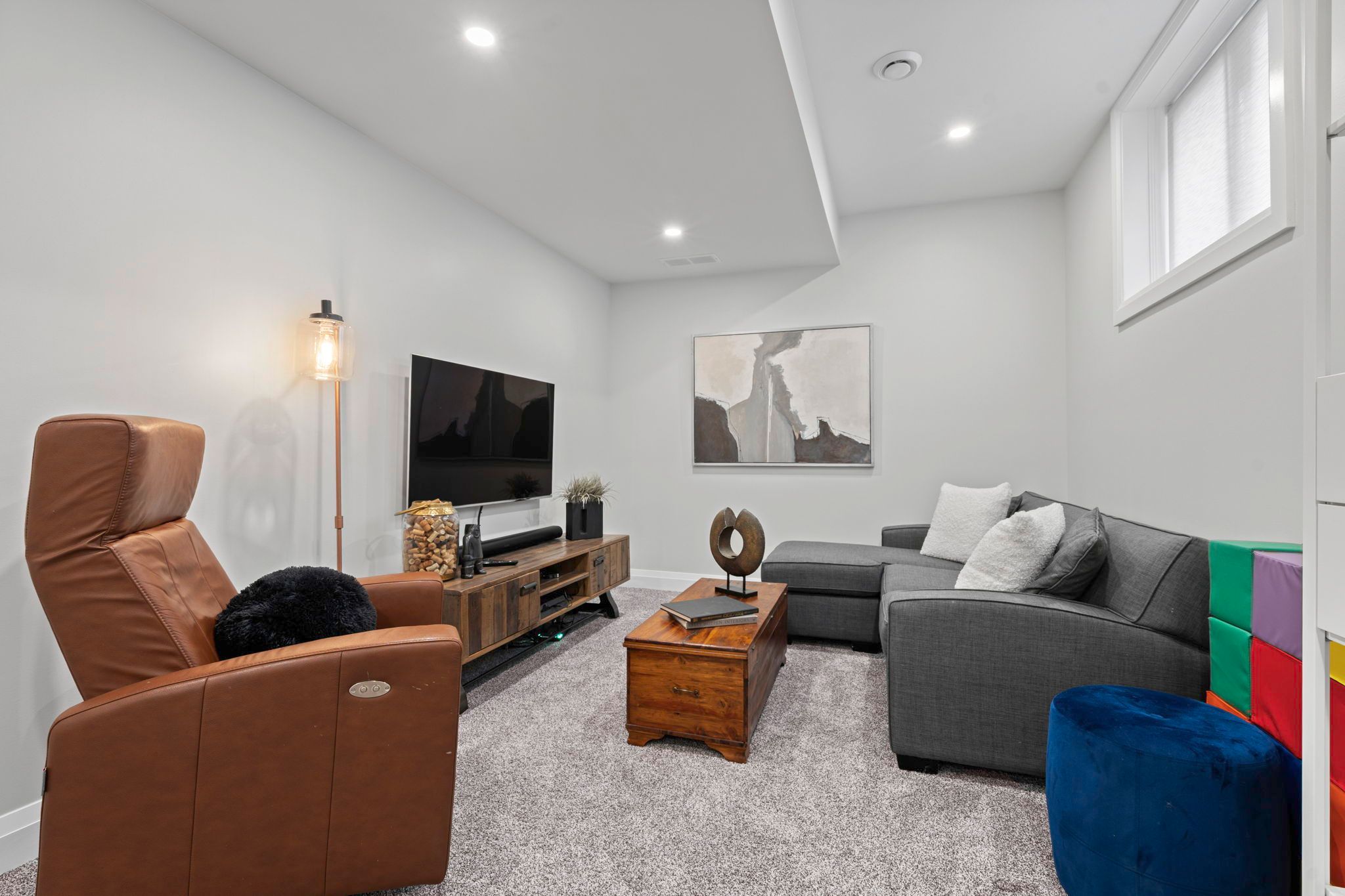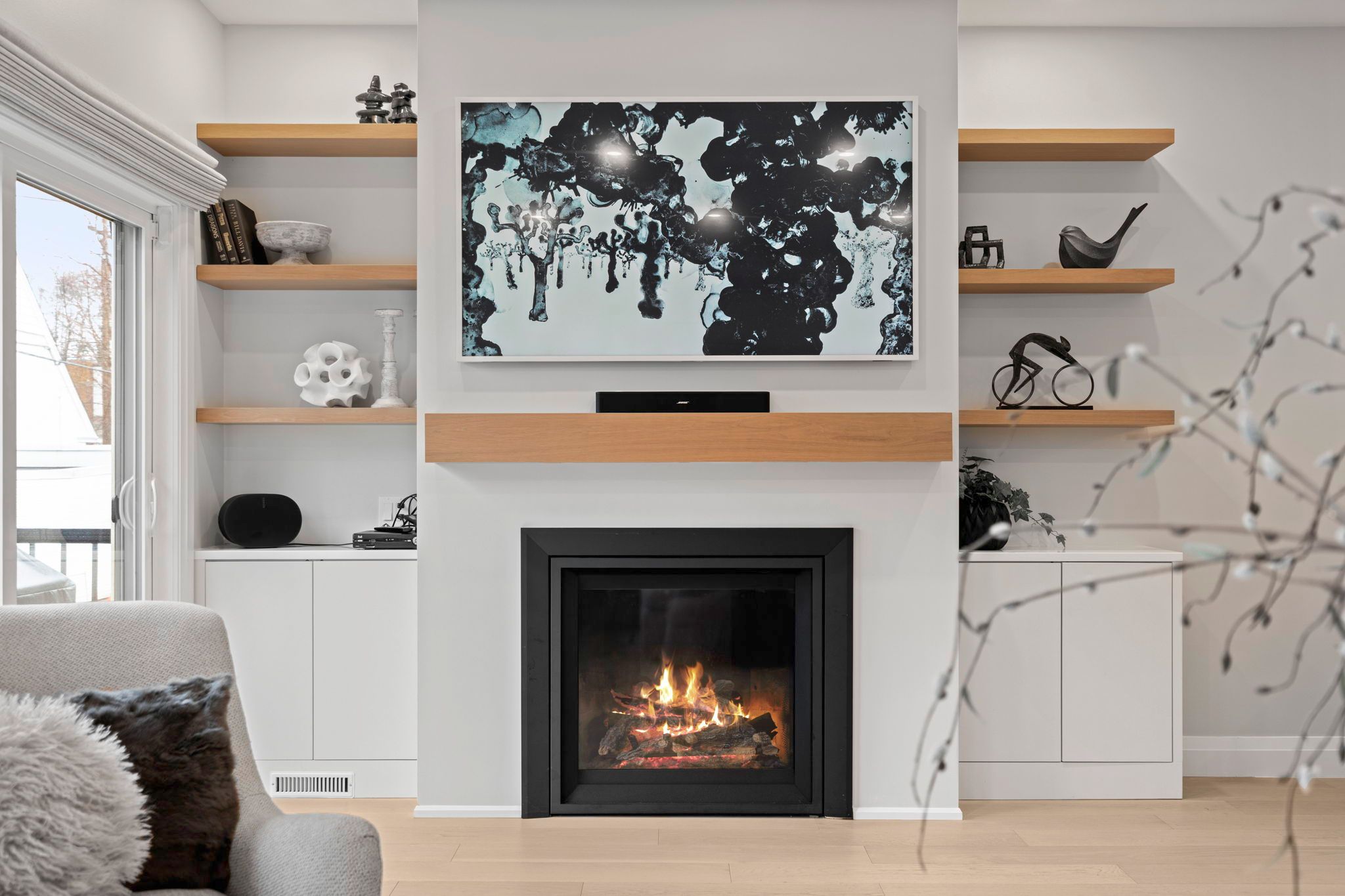 • Cozy living room with a new gas fireplace and custom built-ins.